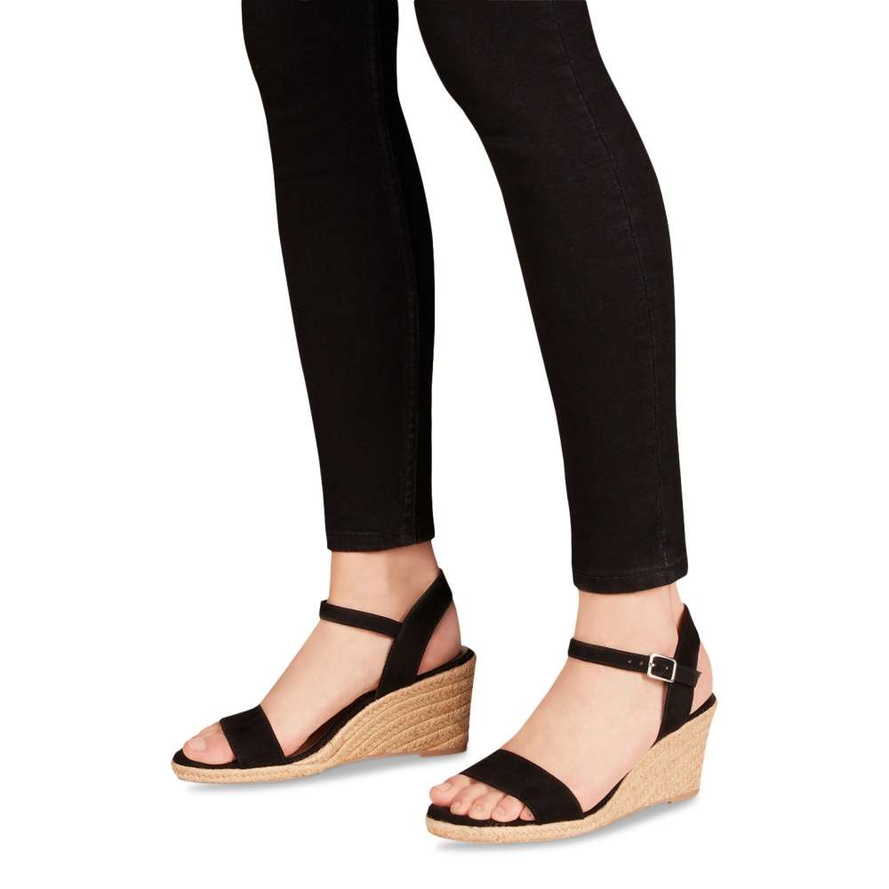 Tyto letní sandálky značky Tamaris Vám nejen díky svému textilnímu svršku budou perfektním doplňkem do prosluněných dní. Zvolit si můžete v černé anebo nadčasové starorůžové barvě. Tvořeny jsou širokým páskem přes prsty, a tenkými pásky kolem kotníku, které udrží nohu v botě pevně na svém místě, takže Vám nebude klouzat. Uzavíratelné jsou na malou přezku, díky které se lépe přizpůsobí Vaší noze. Vyšší módní klínek je zdoben splétaným sisalovým vláknem, jenž v sandálech evokuje jejich prázdninový vzhled. Vhodné jsou na nošení například k šatům. Vyrazit v nich můžete na rande, procházku, anebo třeba do města na zmrzlinu.