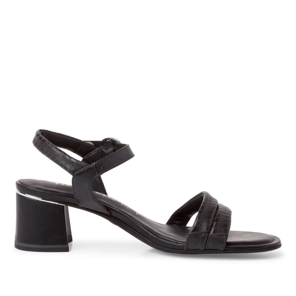 Tyto kožené sandálky na nízkém podpatku značky Tamaris nesmí chybět v žádném dámském botníku. Klasický střih této obuvi je originálně ozvláštněn tenkým pruhem z kůže, který je omotán kolem pásků přes prsty a kolem paty. Upínání na zdobnou přezku na vnější straně kotníku zajistí, že Vám tyto botky sednou jako ulité. Kvalitní podešev doplněná o stélku z kůže v kombinaci se syntetikou zaručí pohodlí při jejich nošení. Široký podpatek je v jeho horní části doplněn o stříbrný detail, který dále ozvláštní jejich vzhled. Stačí nazout, a můžete vyrazit například na oběd s kamarádkami, na nákupy, anebo na procházku do města.
