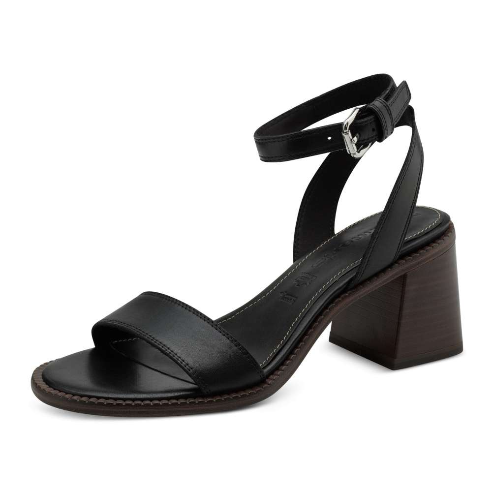 Jednoduché ale zároveň elegantní sandály na širokém podpatku od značky TAMARIS. Svrchní materiál je vyroben z pravé přírodní usně černé barvy a je dozdoben decentním obšitím. Obuv je vybavena páskem s přezkou, díky němuž si můžete boty upravit přesně podle Vašich představ. Se stélkou vyrobenou z paměťové pěny a stabilní podešví se můžete těšit na pohodlnou a komfortní chůzi po celý den nošení. Ideální model na městské pochůzky. Technologie: Touch-it – měkká stélka, která se dokonale přizpůsobí tvaru nohy, a díky tomu při nošení zajišťuje optimální pohodlí. ANTISHOKK – speciální odpružující prvek v podpatku, který tlumí nárazy a otřesy způsobené chůzí o cca 50 % a tím šetří páteř, meziobratlové ploténky a klouby. Dlouhodobě tedy ulevuje celé partii zad. - Díky tomu můžete nosit své oblíbené boty na vysokých podpatcích po celý den i v kanceláři, aniž by Vás bolely nohy.
