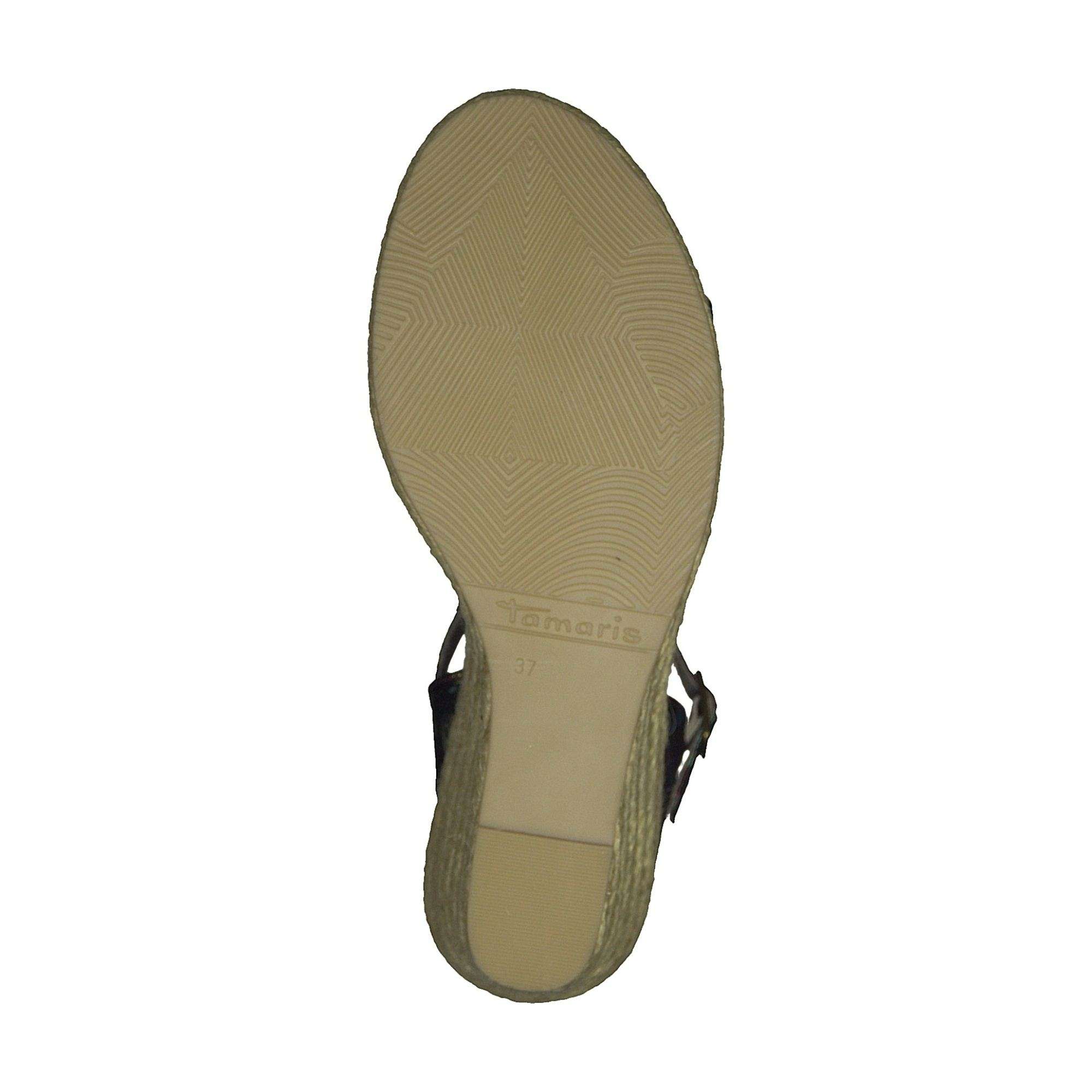 Dámské elegantní sandály nás na první pohled zaujmou svým jemným vzorem a zlatavou sponou. Vysoký klínový podpatek opticky prodlouží nohy a sandály jsou tak vhodným doplňkem na večerní party, stejně jako na společenské akce.