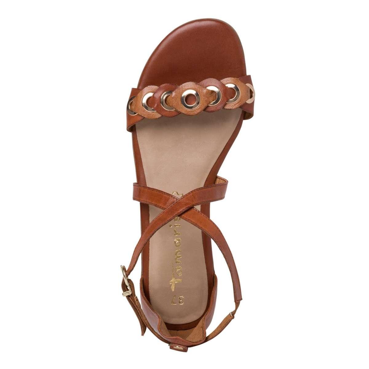 Dámské kožené sandály s plnou patou hnědé barvy, značky TAMARIS.