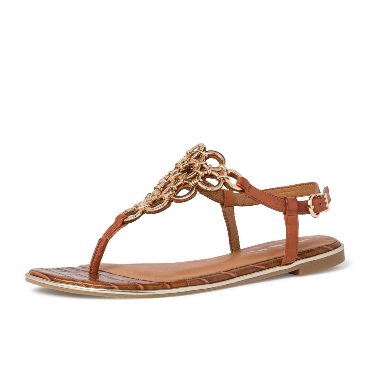 Dámské letní sandálky žabkového stylu zdobené kovovými kroužky, značky TAMARIS.