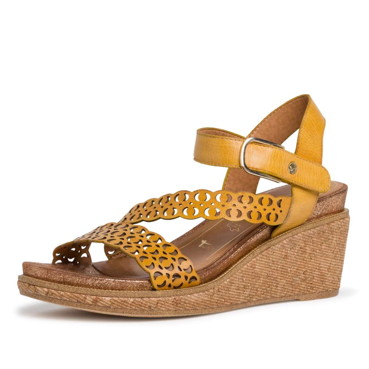Letní kožené sandálky s perforovanými pásky, značky TAMARIS.