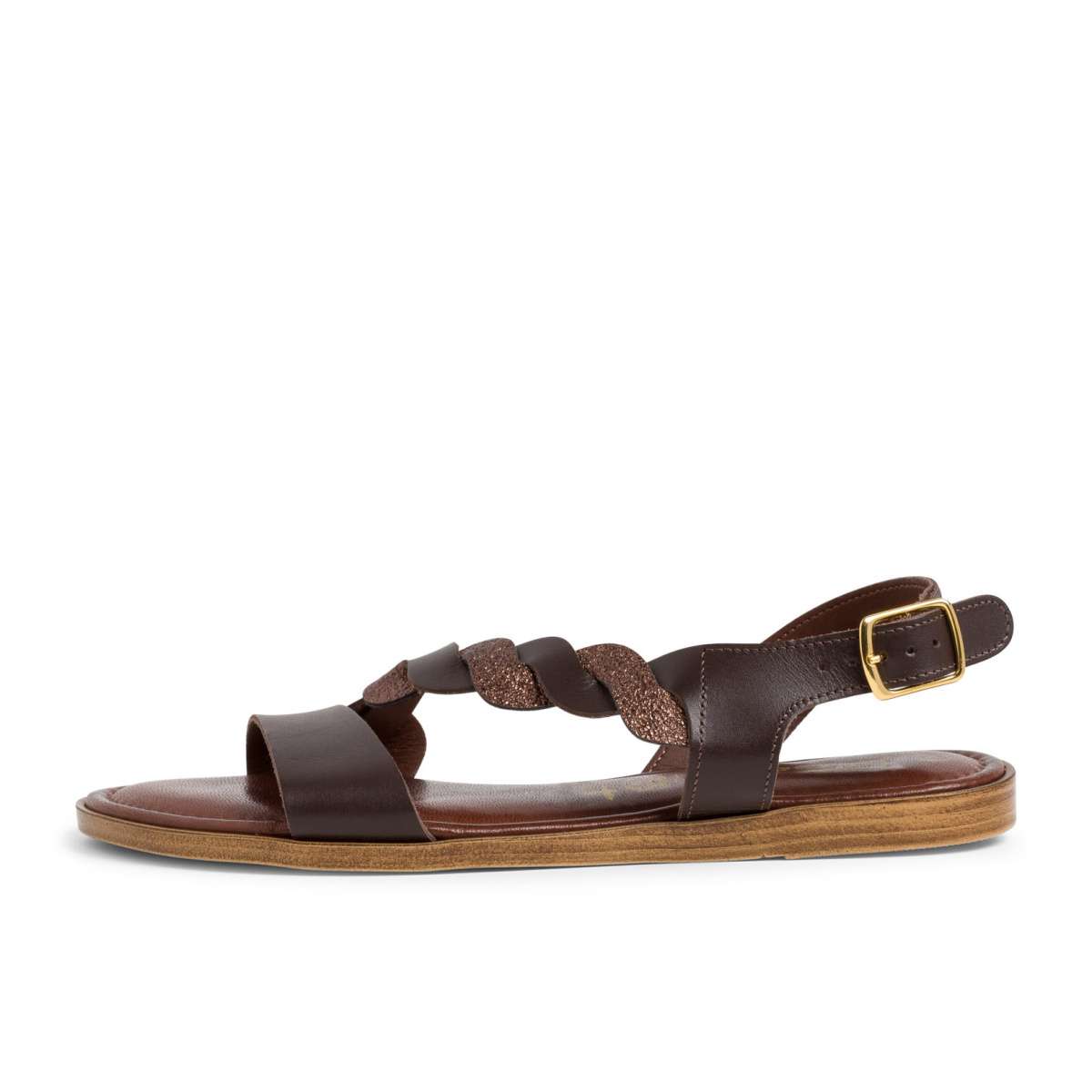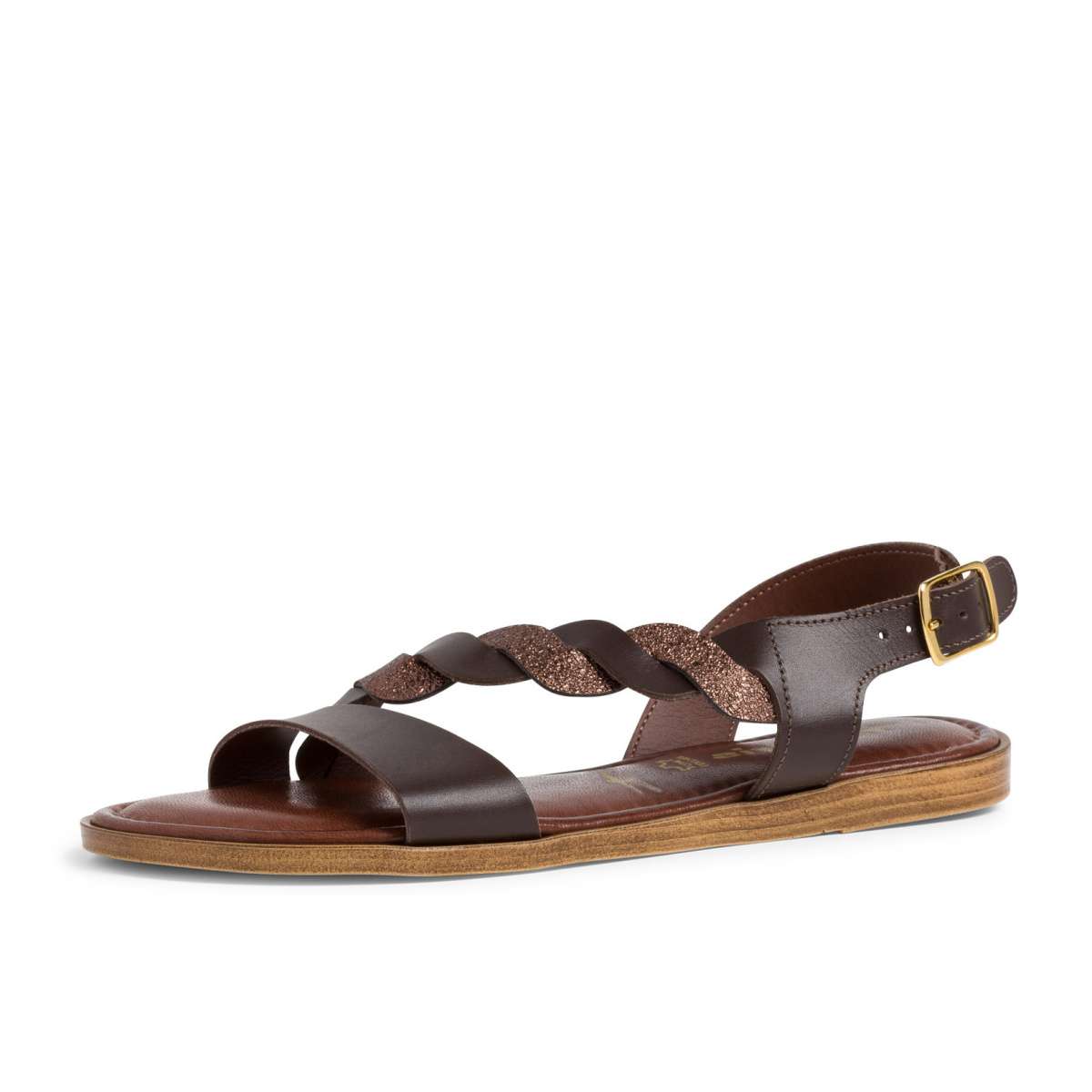 Dámské sandále šité z pravé kůže jsou zdobné propletením nártového pásku, kde se střídá kožený pásek s lesklým. To jim dodává elegantní a zajímavý vzhled. Na vnější paty je pak zapínání přezkou pro úpravu přímo k Vaší noze. Obuv se skvěle hodí do všedních letních dní jak k džínům, tak k šatům.