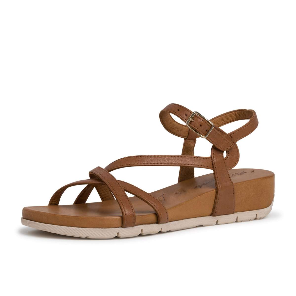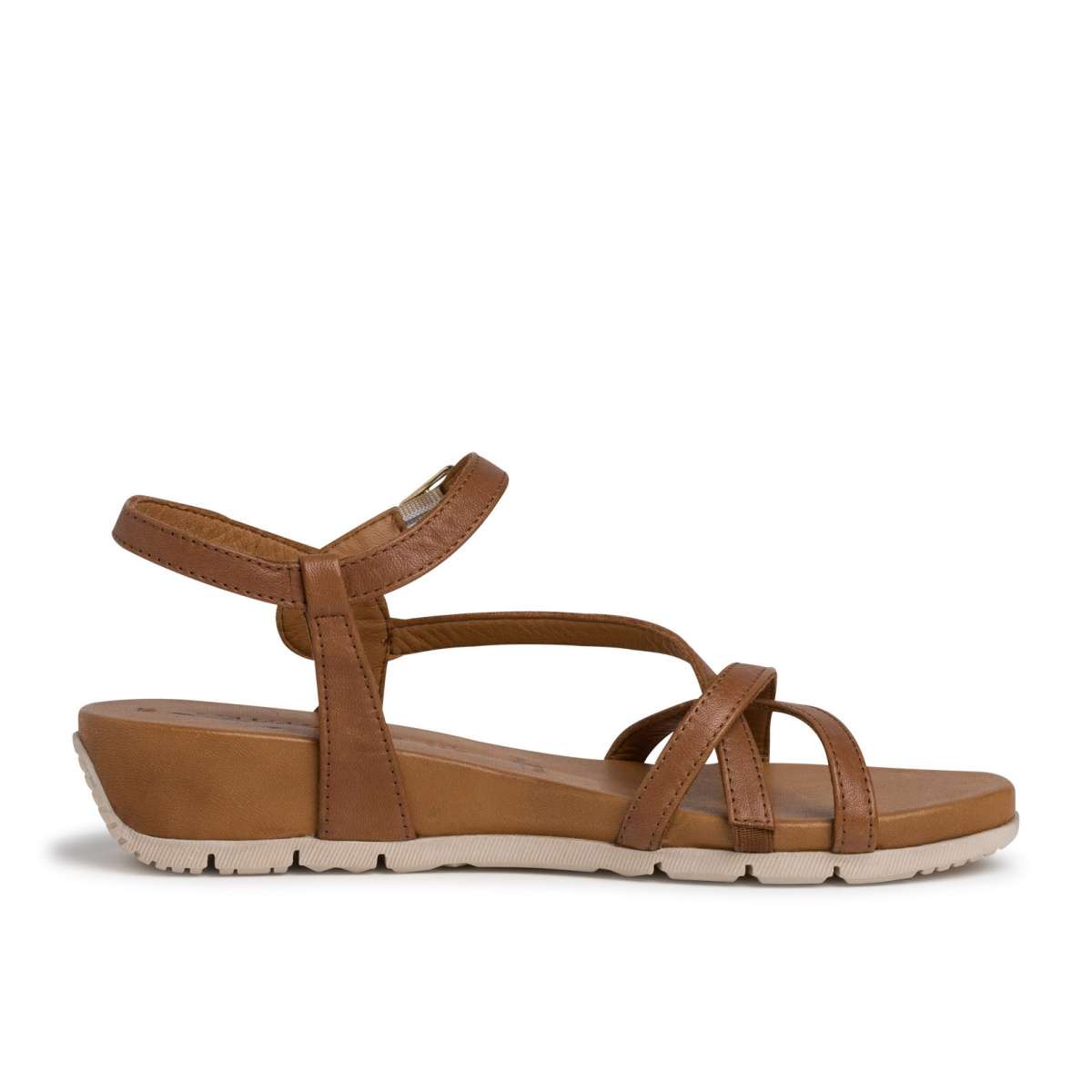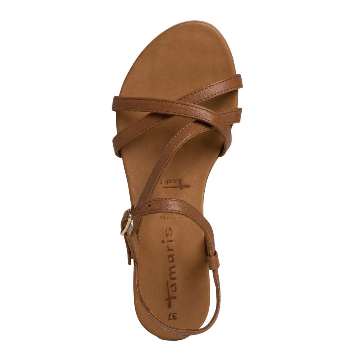 Dámské kožené sandály značky TAMARIS zdobené pásky přes nárt na vnitřní straně a sponou pro snadné obutí a přizpůsobení přímo k Vaší noze.