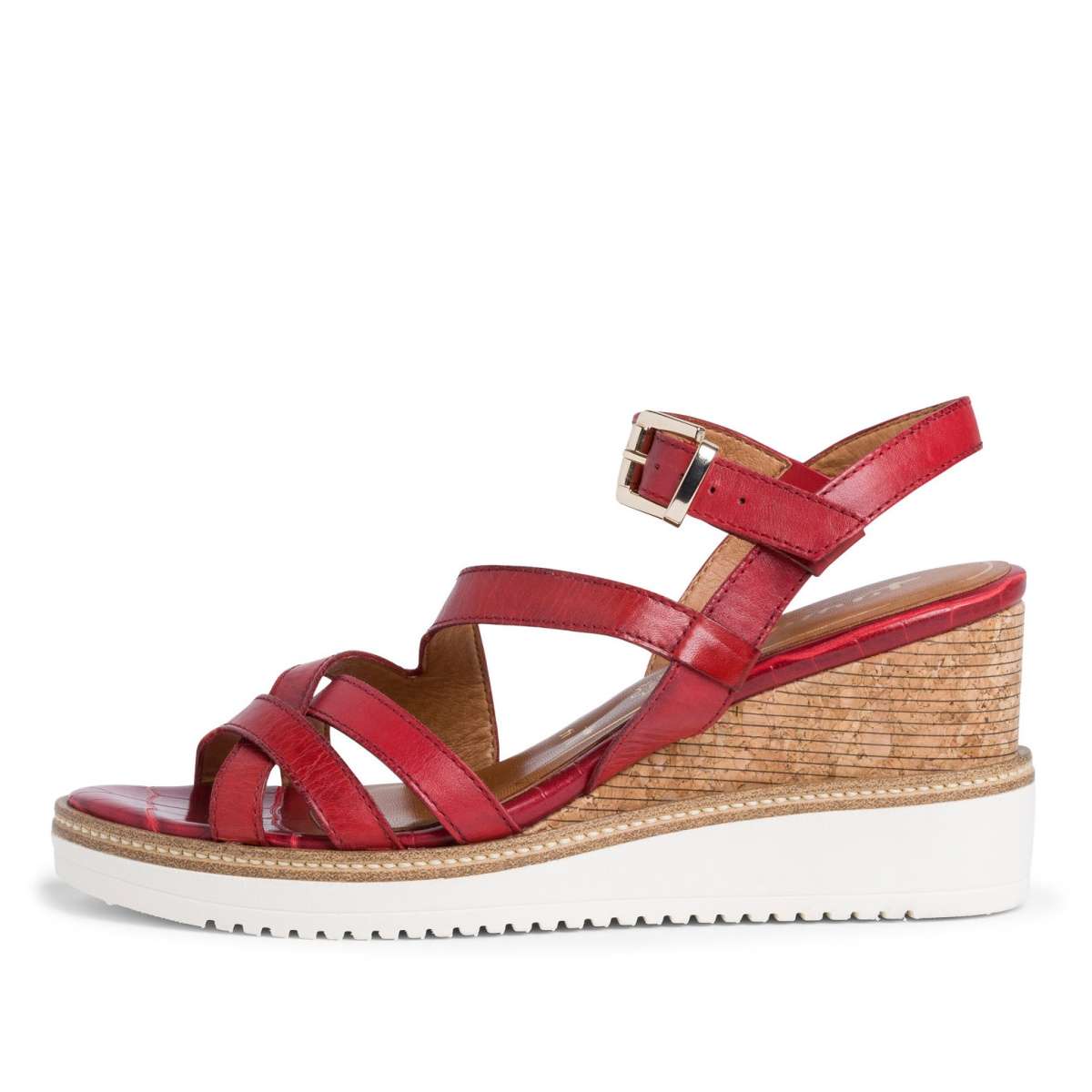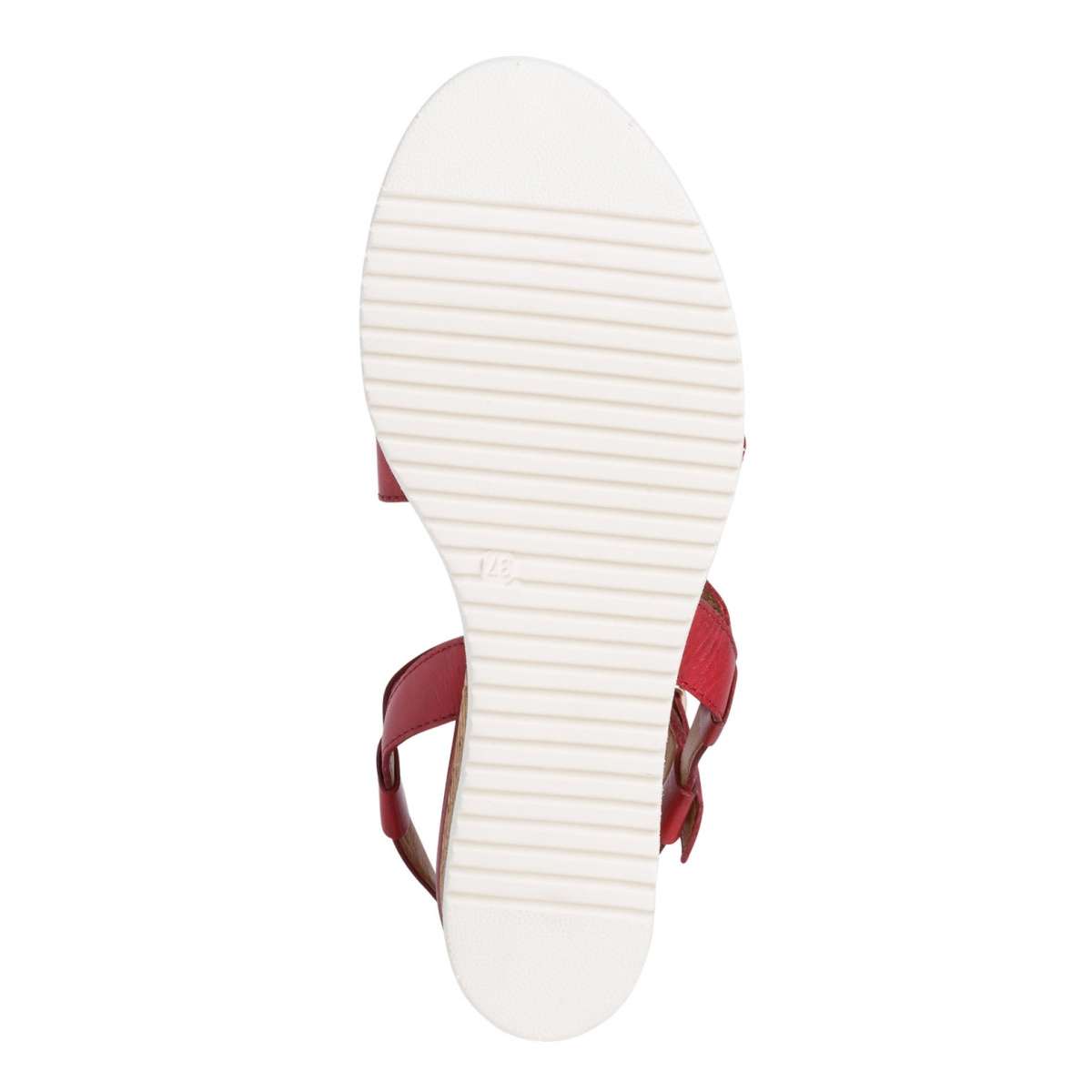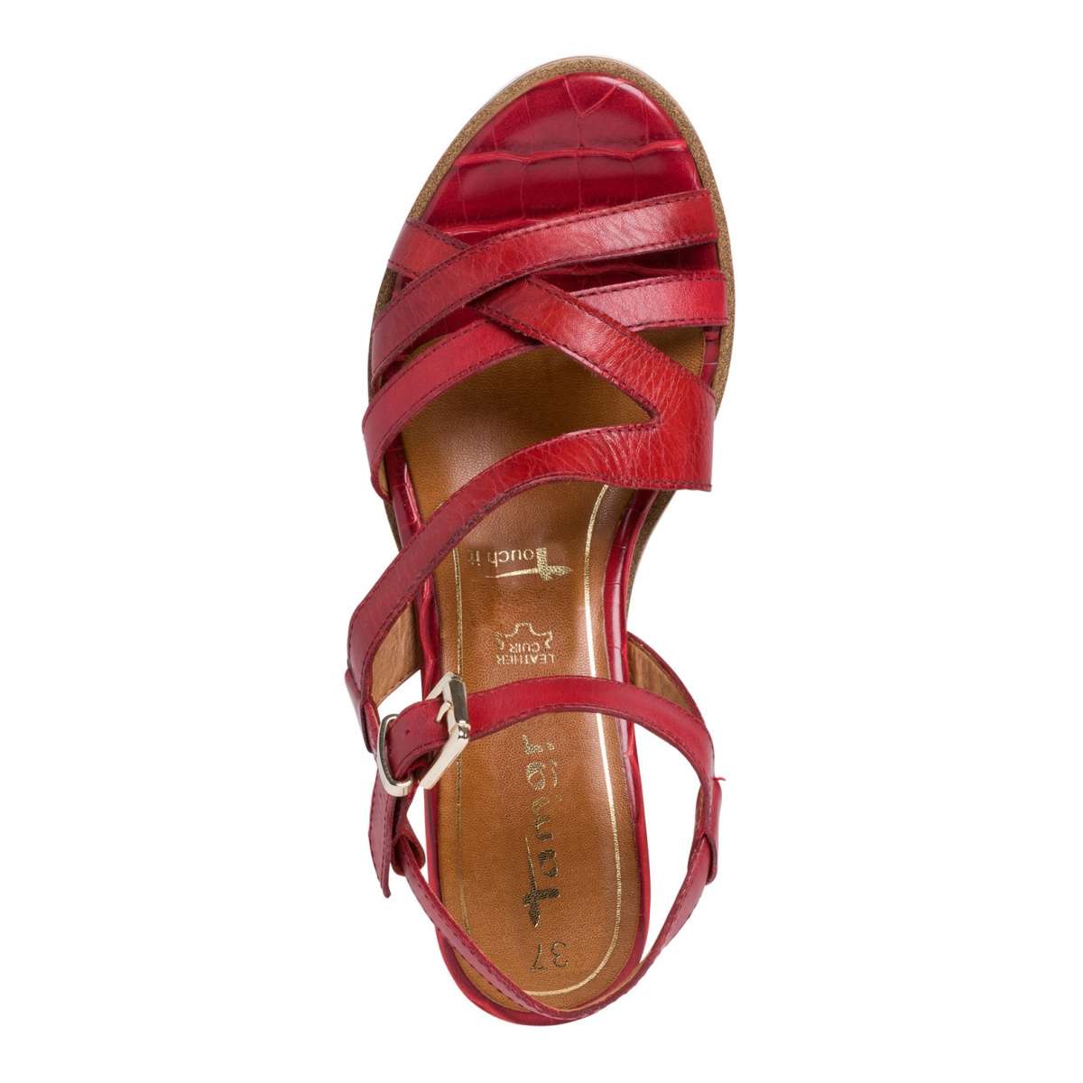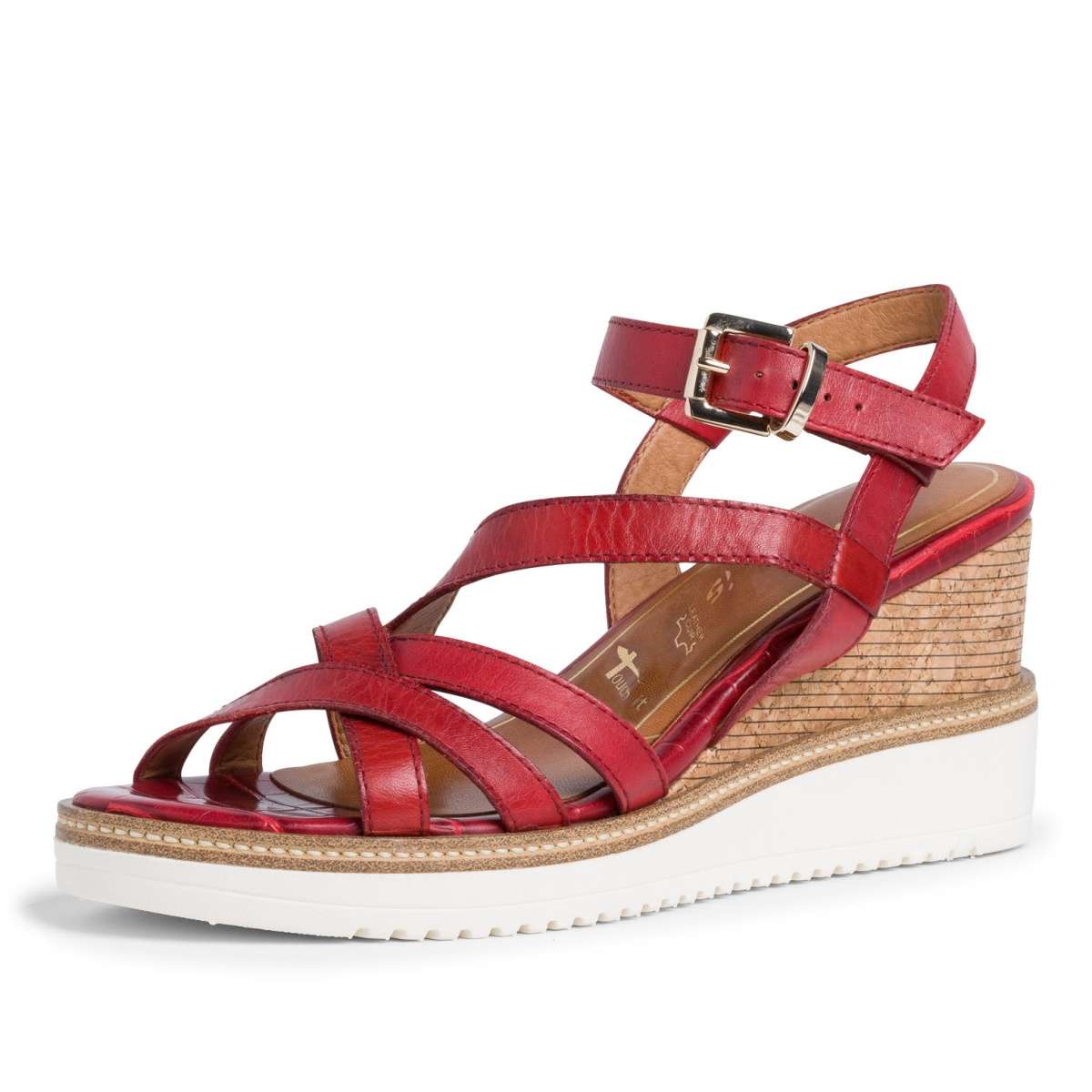 Dámské kožené sandály značky TAMARIS zdobené pásky, mají hladký povrch a kulatou špičku.