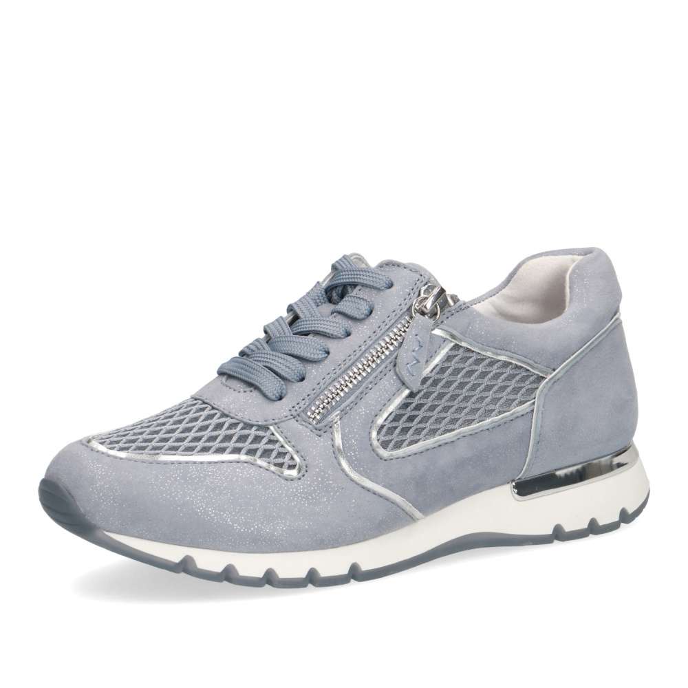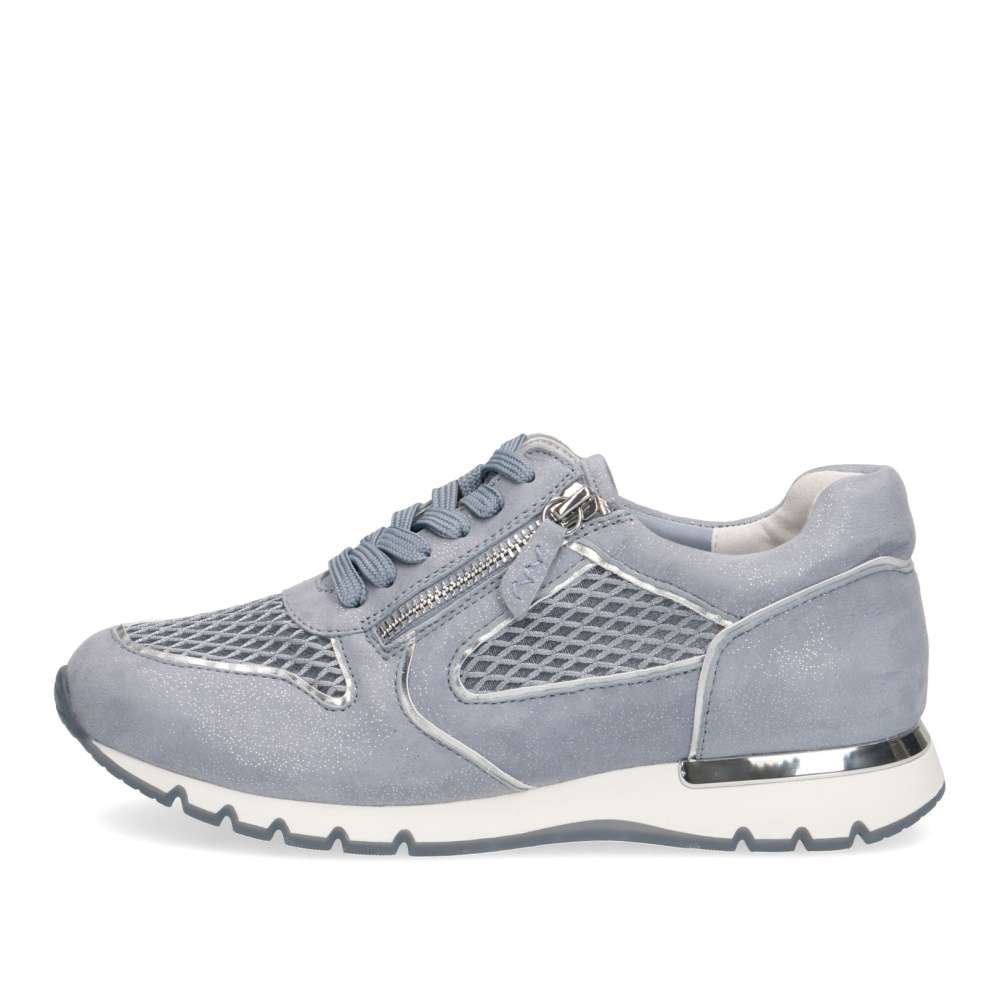 Kožený svršek je doplněn textilními prodyšnými částmi a dozdoben lesklým lemováním. Nazouvání Vám ulehčí šněrování a zip z vnější části, který je i hezkou ozdobou obuvi.