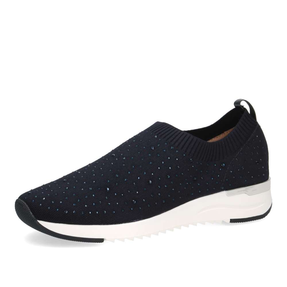 Nadčasová dámská teniska z pružného materiálu, značky CAPRICE. Svršek Tato bota vyniká nejen svým speciálním vzhledem s kamínky posázenými po celém svršku, ale také funkčností. Zaručeně oceníte elastický materiál, který ulehčí obouvání a dokonale přilne k noze. Stélka Pohodlí na každém kroku Vám zajistí měkká kožená stélka. Podešev Úžasně měkká a pružná bílá podešev s lesklým pruhem na patě je vyrobena z kvalitního syntetického materiálu. Tato nadčasová dámská teniska pro každou sportovně založenou ženu Vám dodá pocit lehkosti a budete se cítit skvěle na každém kroku.
