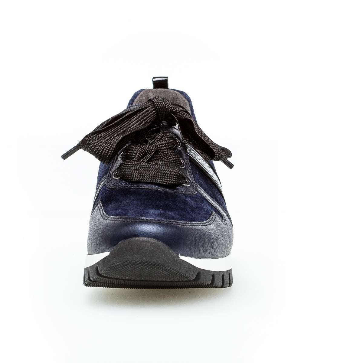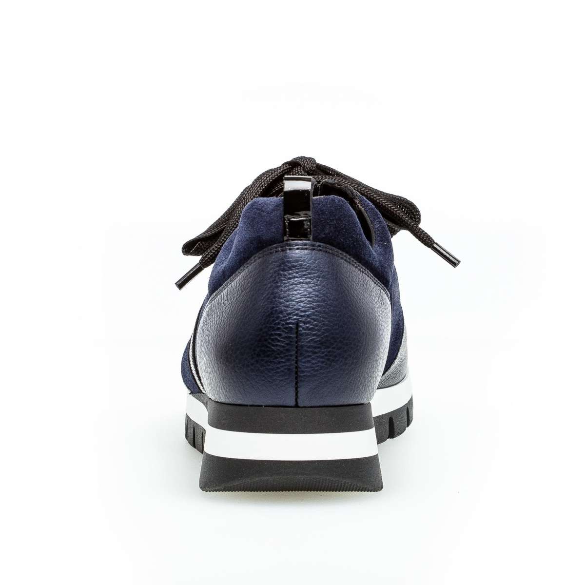 Kombinaci tmavě modré v semišovém a hladkém vzhledu krásně doplňuje stříbrný pruh přes nárt, který odlišuje tuto botu od jiných.