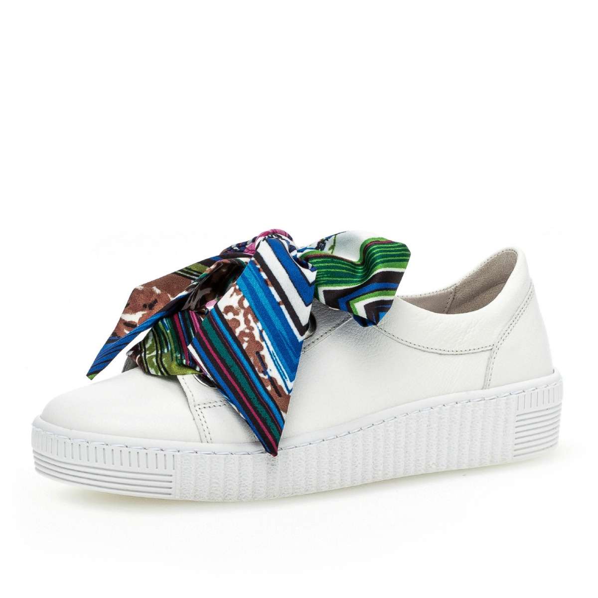 Tuto elegantní dámskou tenisku značky Gabor oceníte díky koženému svršku, šněrování na širokou stuhu a výrazným stříbrným kroužkům pro tkaničky. To jsou zdobné prvky této tenisky na vyšší podešvi. Díky technologii Best Fitting budete mít více prostoru v oblasti bříška a větší plochu došlapu. Stélka u této obuvi je vyjímatelná. Gáborky krásně doplní Vaše outfity na procházky městem.