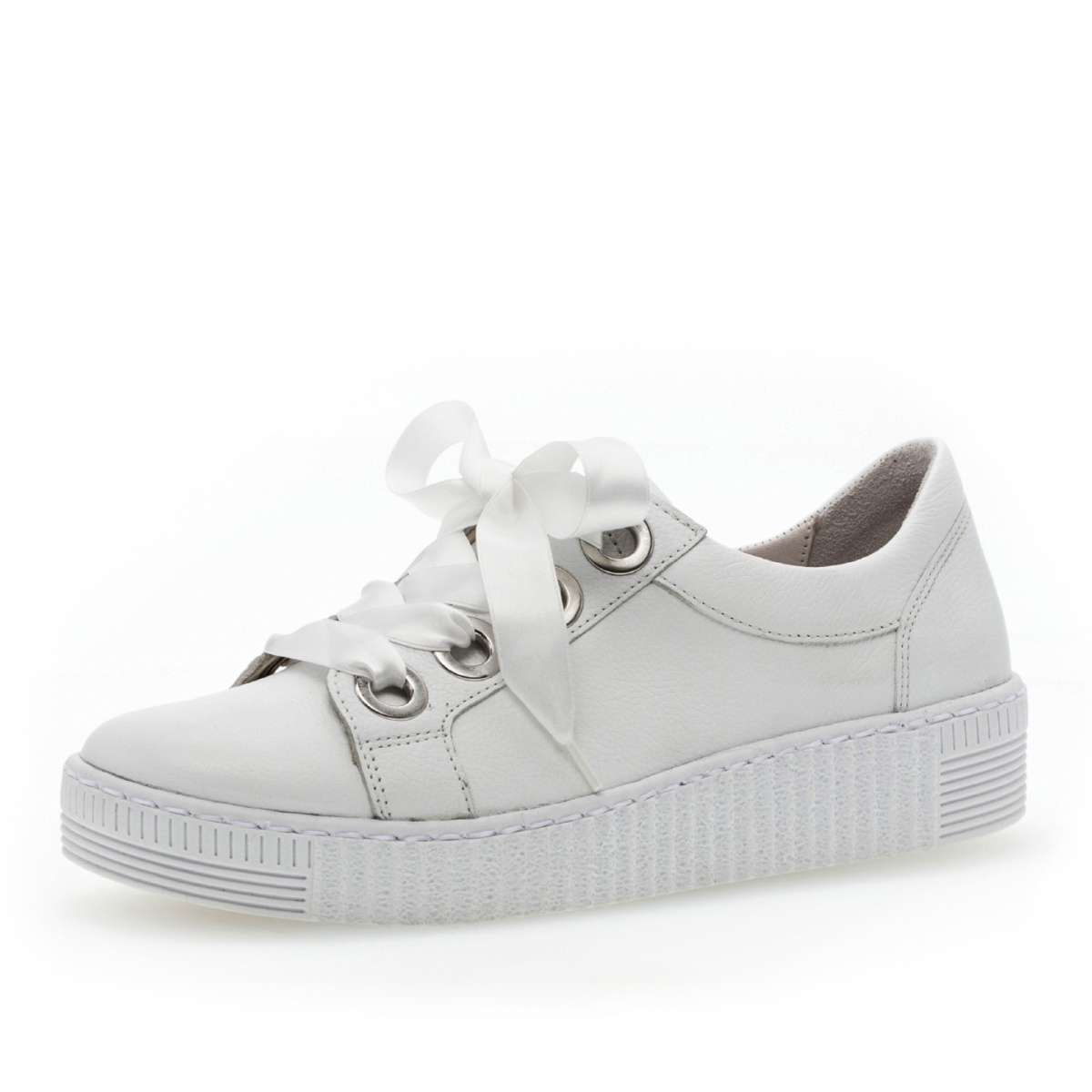 Tuto elegantní dámskou tenisku značky Gabor oceníte díky koženému svršku, šněrování na širokou stuhu a výrazným stříbrným kroužkům pro tkaničky. To jsou zdobné prvky této tenisky na vyšší podešvi. Díky technologii Best Fitting budete mít více prostoru v oblasti bříška a větší plochu došlapu. Stélka u této obuvi je vyjímatelná. Gáborky krásně doplní Vaše outfity na procházky městem.