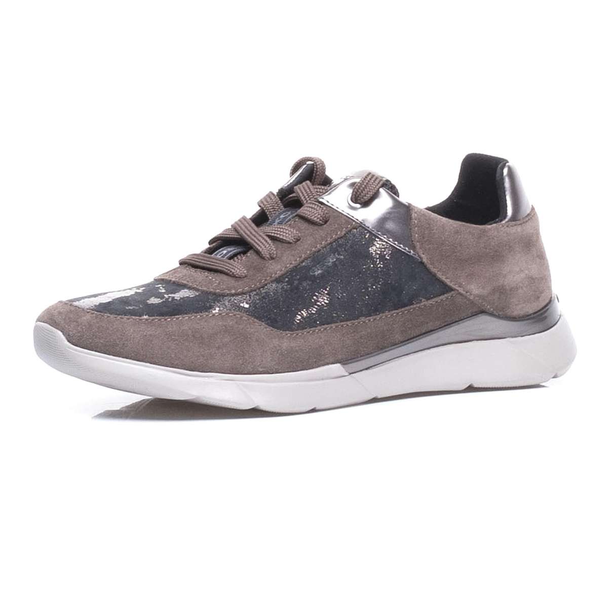 Dámské polobotky sportovního stylu dokonale kloubí semišový vzhled, lesklé části i díly s metalickými odlesky. Šněrováním si pak obuv upravíte dle svých představ. Tento model unosíte na procházky s pejskem, na zmrzlinu s dětmi, tak do práce.