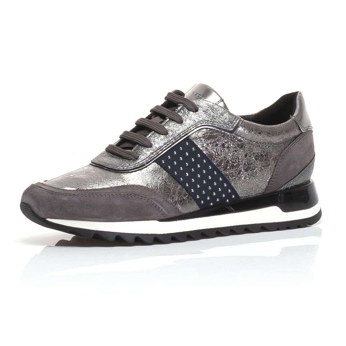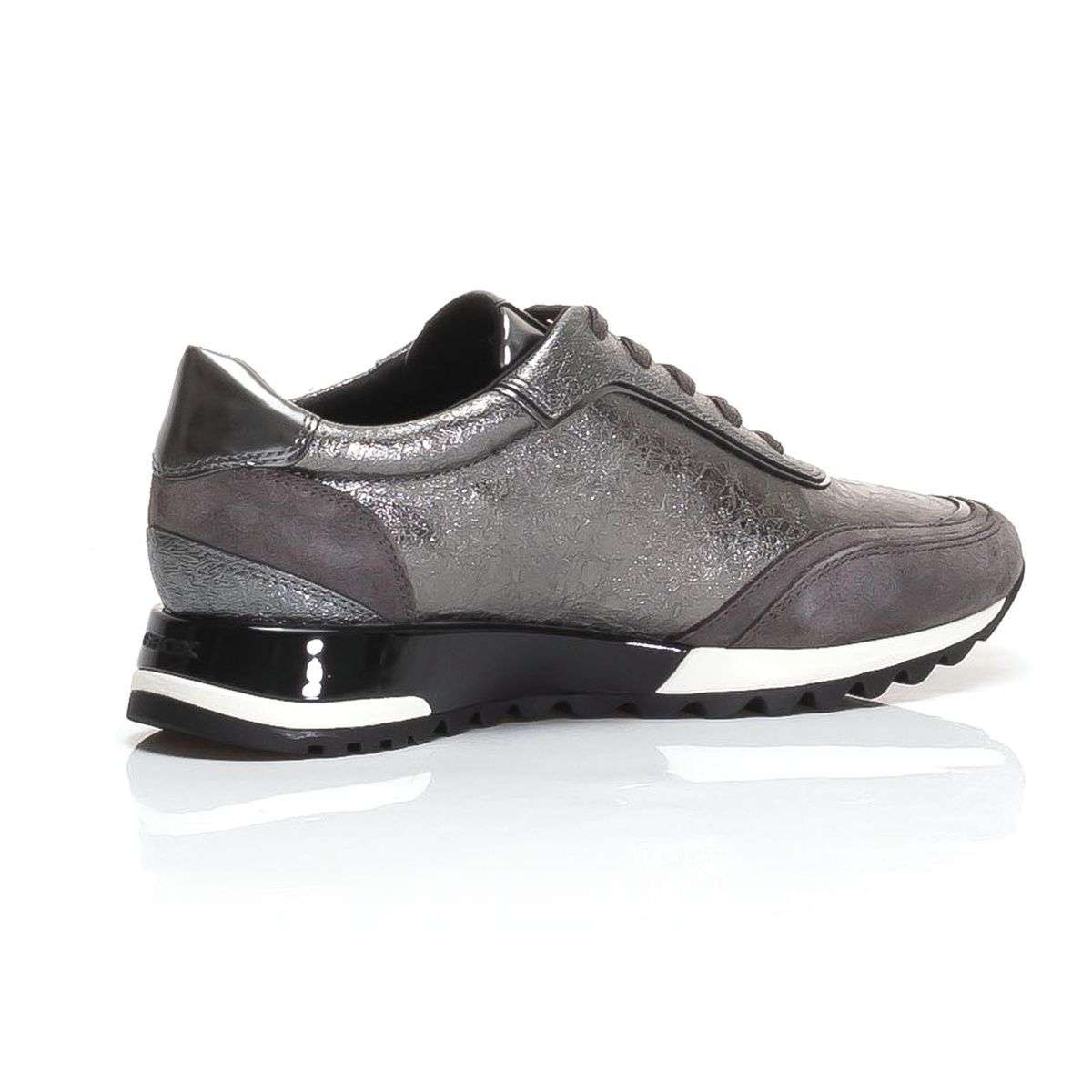 Tato dámská teniska značky Geox Vás na první pohled upoutá svým zpracováním. Svršek s metalickými odlesky je doplněn o syntetické a textilní prvky, které obuv zdobí. Například lesklá část na patě, či kontrastní pruh s cvočky na vnější straně obuvi. Obuv si krásně přizpůsobíte dle svých požadavků díky šněrování. Tato teniska bude skvěle vypadat nejen s kalhotami, ale také se sukní či k podzimnímu kabátku.