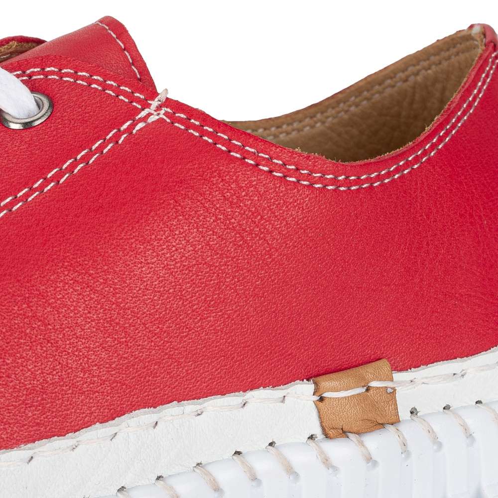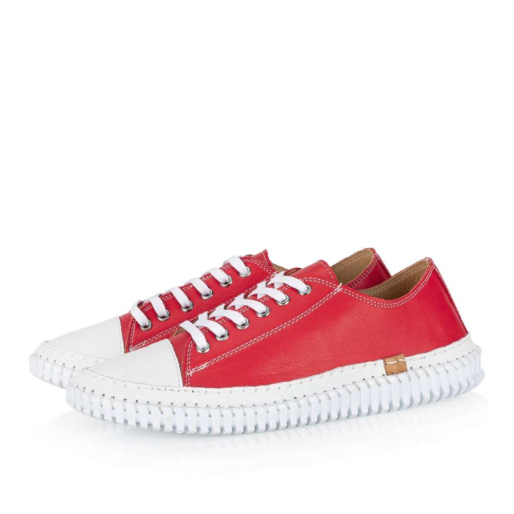 Detailní informace Klasické, ale také nápadité jsou tyto kožené tenisky IBERIUS, celkovému vzhledu dominuje originální podešev a s výrazně červeným svrškem tvoří dokonalý celek. Šněrování ulehčí obutí a přizpůsobíte si je přímo k Vašim potřebám. Po nazutí si můžete užívat pohodlí kožené měkké stélky, která Vás bude doprovázet na cestě do práce nebo na nákupy s kamarádkami.