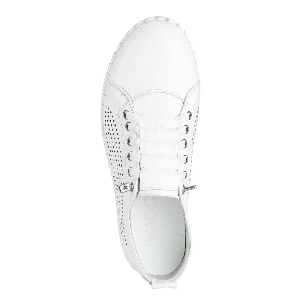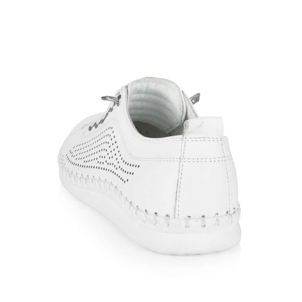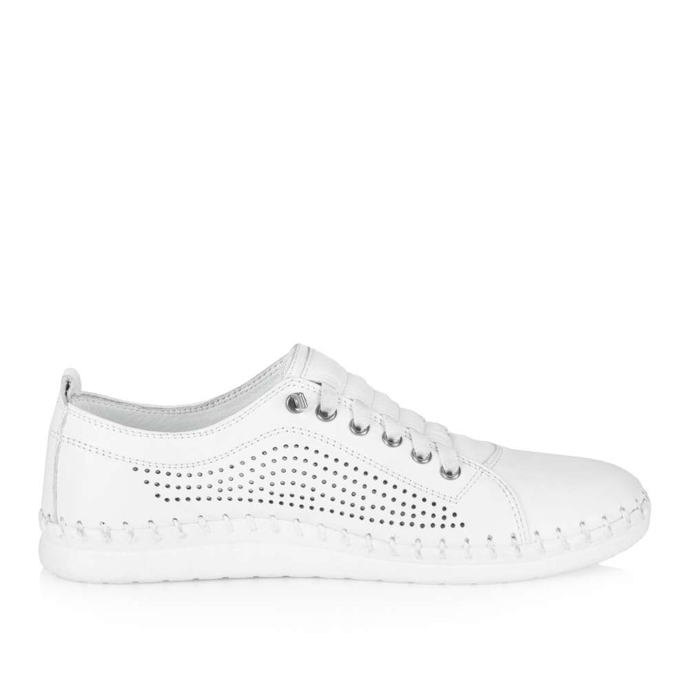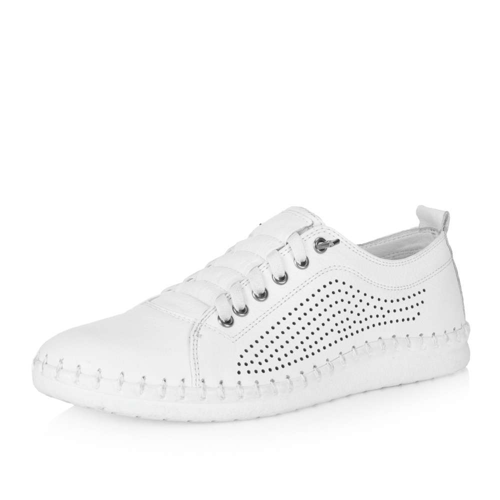 Detailní informace Dámské tenisky značky Iberius Vás okouzlí, bílá barva koženého svršku je zdobená jemným prošíváním a designovou perforací po stranách která zajistí prodyšnost obuvi. Pro snadné obutí poslouží šněrování pružnou gumičkou. Vyjímatelná stélka a pohodlná podešev zajistí maximální komfort při chůzi. S tímto jedinečným kouskem doladíte každý outfit do města i do práce.