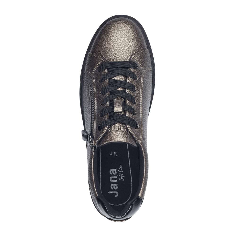 Vychutnejte si styl a pohodlí s teniskami JANA. Tyto tenisky mají šedý lesklý svršek, který přidává moderní a elegantní vzhled. Pro maximální praktičnost jsou vybaveny zipem na nártu a šněrováním, což umožňuje snadné a rychlé obouvání. Vyšší podešev poskytuje dodatečný komfort a stabilitu při chůzi, zatímco příjemná stélka zajišťuje pohodlí po celý den. Tyto tenisky jsou ideální volbou pro každodenní nošení, kdy chcete vypadat stylově a zároveň se cítit pohodlně. Technologie: SoftLine – boty s touto technologií mají lehké, měkké a současně mimořádně flexibilní podešve, použitím speciálních materiálu a jedinečného složení podešve byl vyvinut nový druh flexibility.