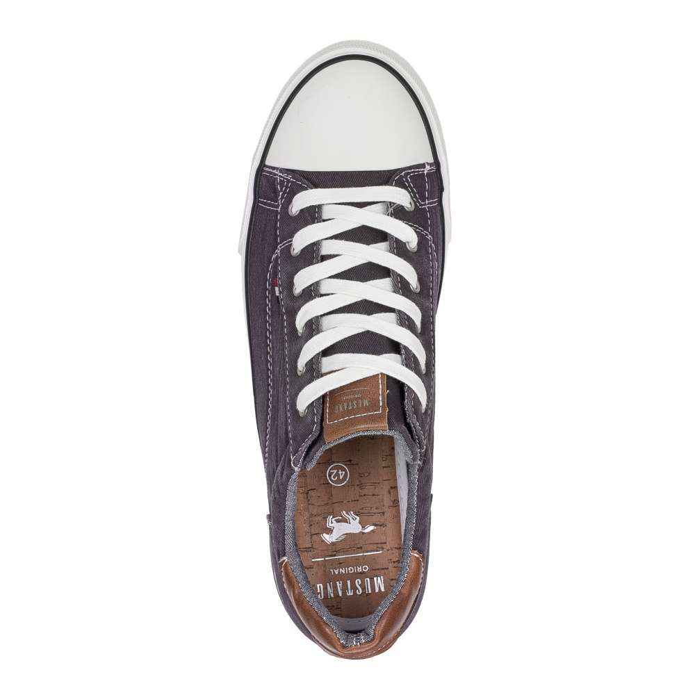 Dámské tenisky značky MUSTANG, které si budete s oblibou nazouvat každý den. Zdobené jsou kontrastním prvkem v patě, na nártu a logem značky na vnější straně. Šněrováním si obuv upravíte dle Vašich požadavků. Tento jednoduchý model unosíte jak do práce, tak na procházky městem.
