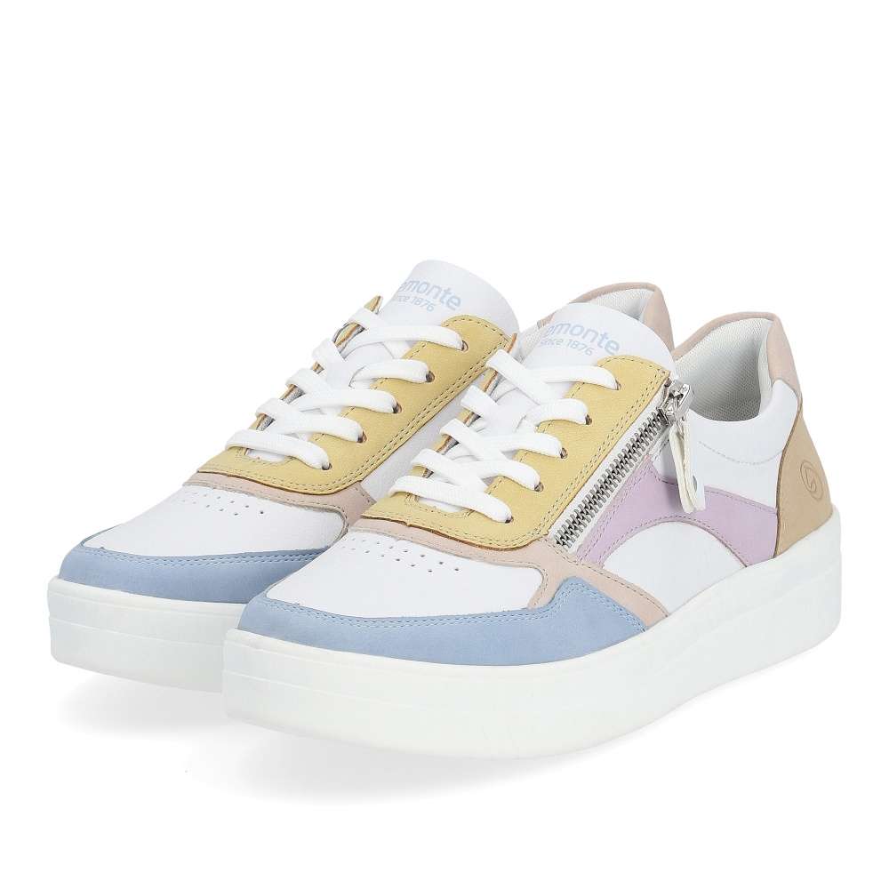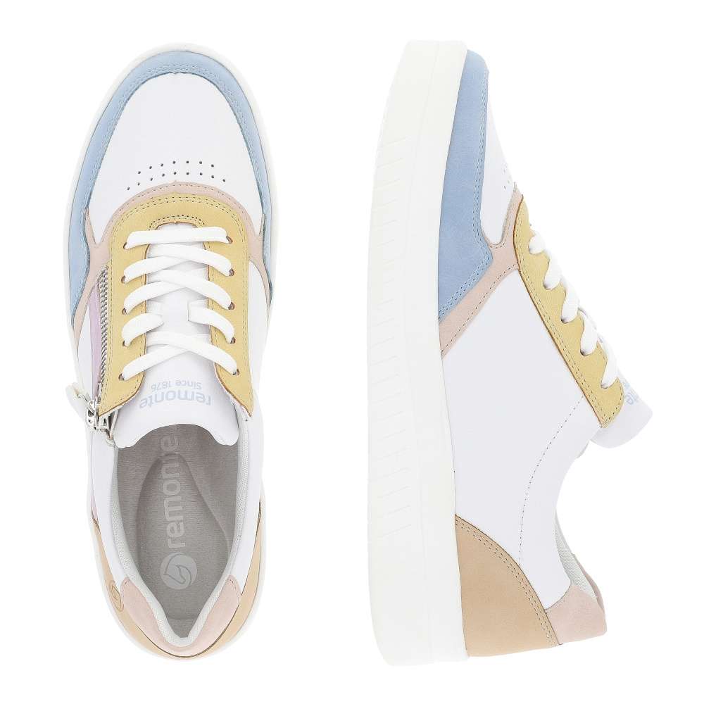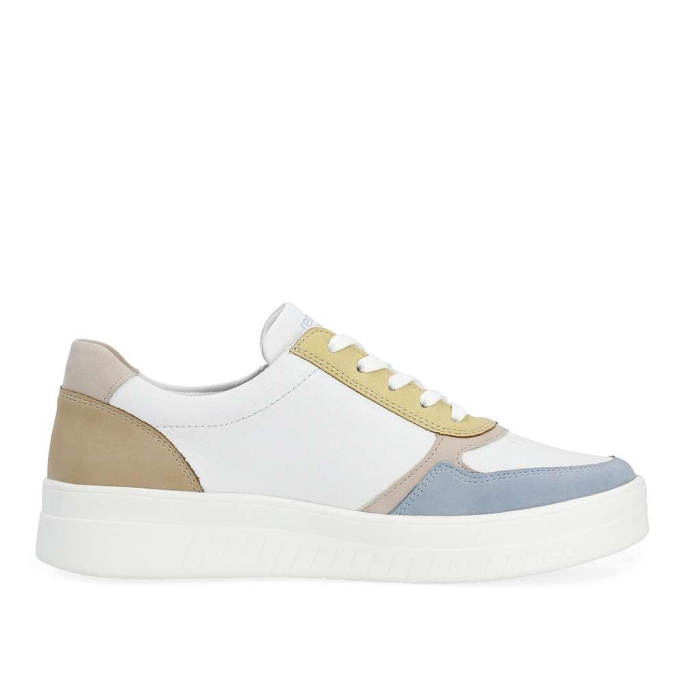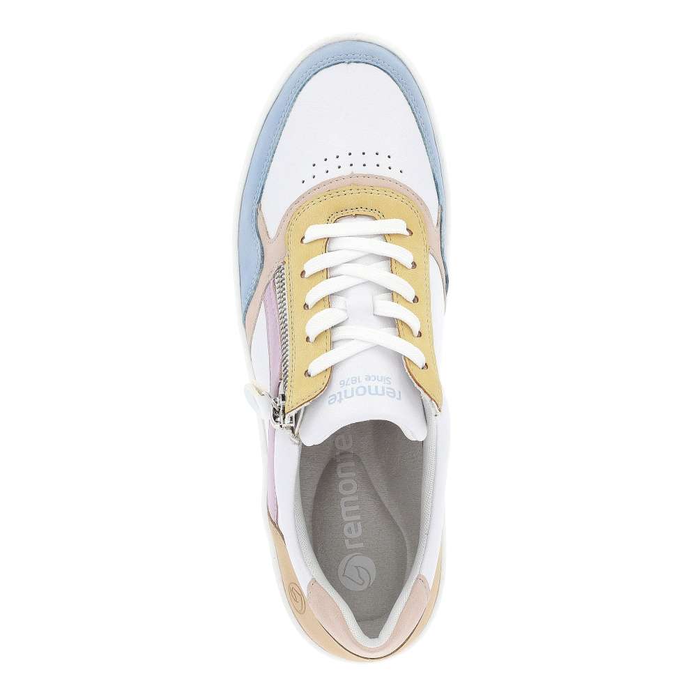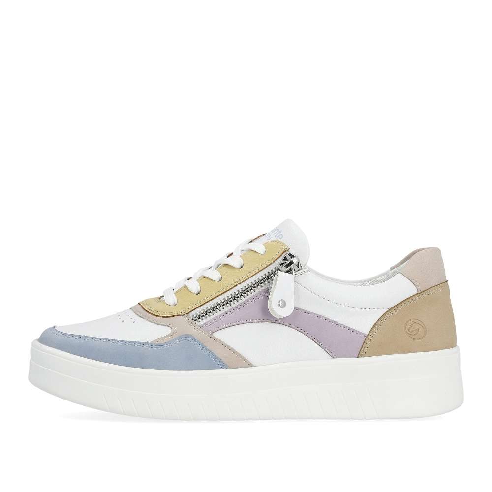 Detailní informace Obuv REMONTE je vyšší řadou značky RIEKER, obuv se vyznačuje kvalitou použitých materiálů. Dámské tenisky s výraznou barevnou kombinací Vás zaujmou hned na první pohled. K obouvání Vám skvěle napomůže funkční zip na vnější straně a šněrováním si tenisky utáhnete přesně podle Vašich představ. Pohodlí na každém kroku budete mít díky měkké vyjímatelné stélce. S tímto modelem můžete snadno zkombinovat například batoh z naší široké nabídky.