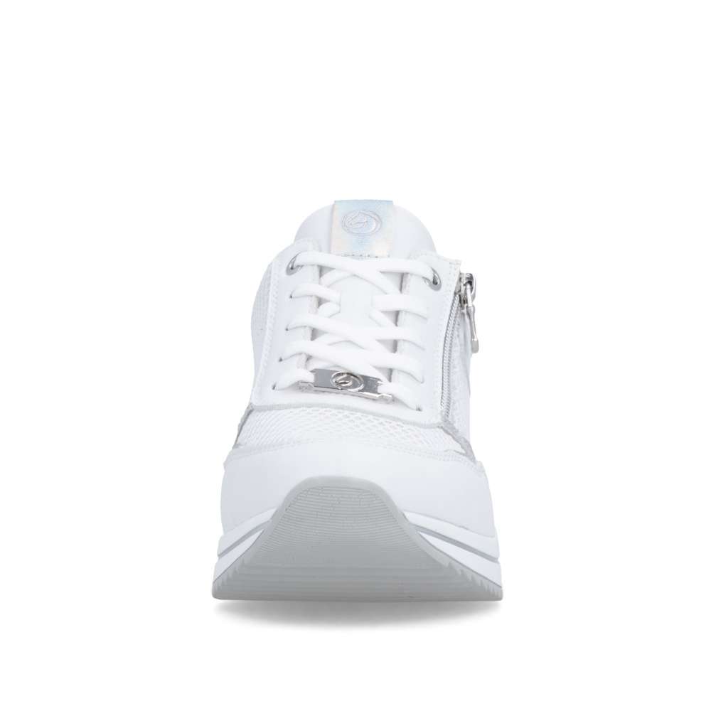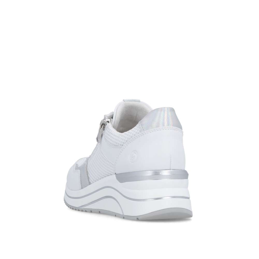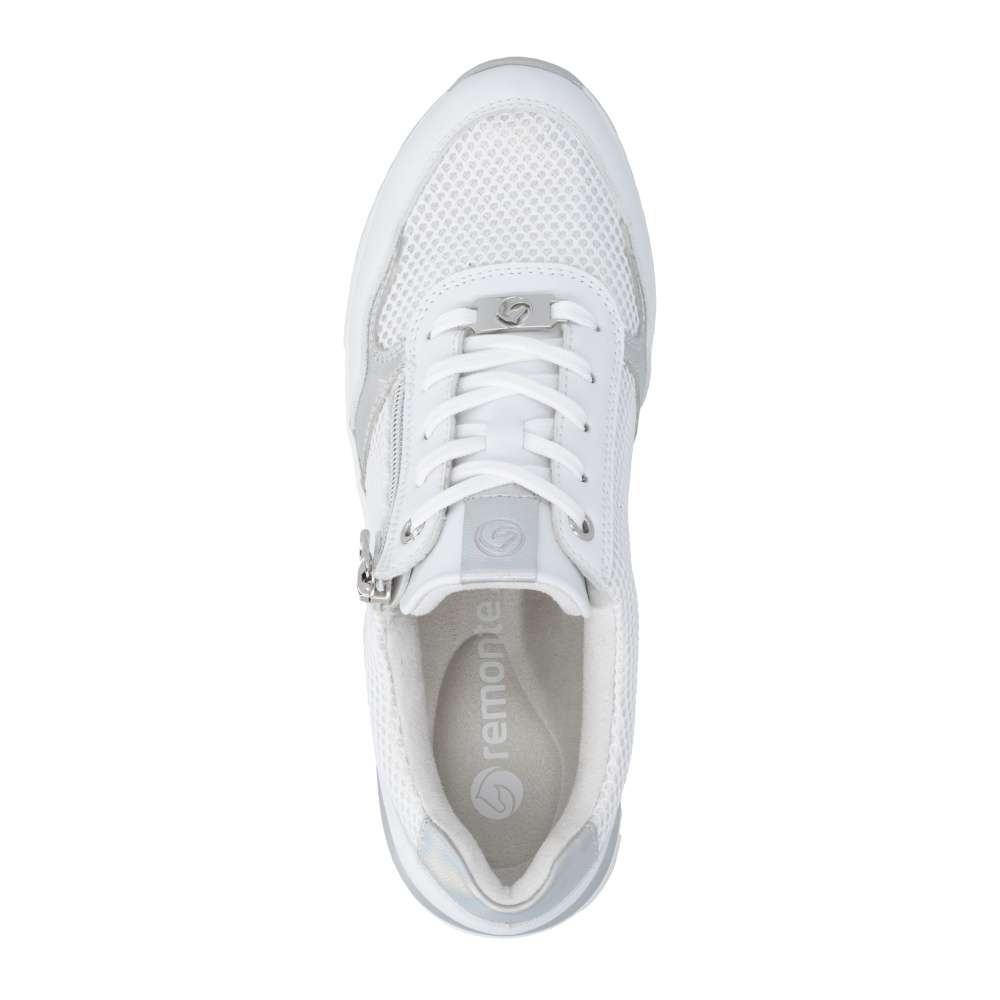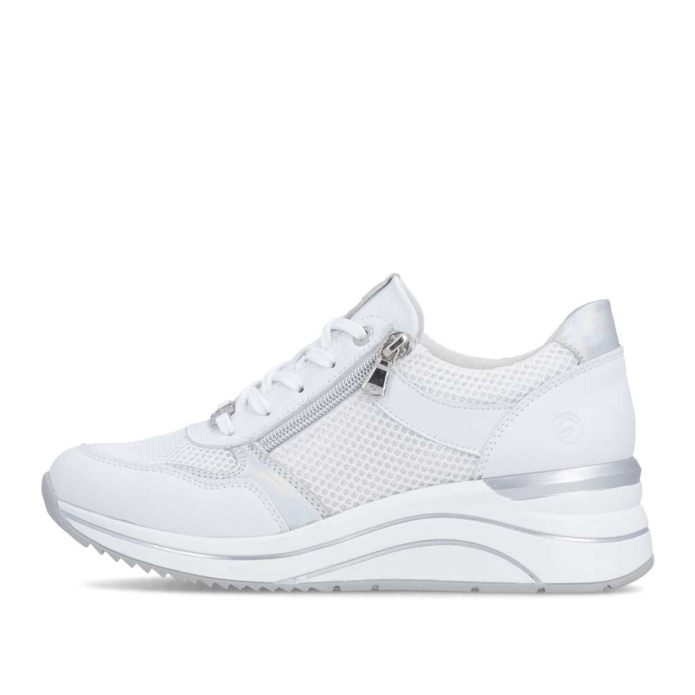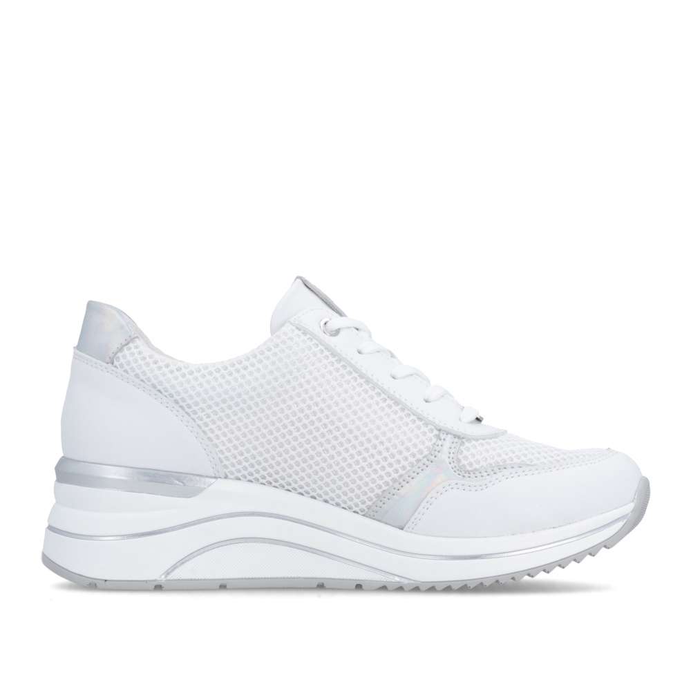 Obuv REMONTE představuje prémiovou řadu značky RIEKER, která se vyznačuje vysokou kvalitou použitých materiálů a precizním zpracováním. Tyto tenisky jsou ideální volbou pro moderní ženy, které milují kombinaci komfortu a trendového designu. Jejich svršek je vytvořen z kombinace kvalitních materiálů s různými texturami, včetně jemného lesku a vizuálně atraktivních detailů, což vytváří zajímavou hloubku. Praktičnost je u těchto tenisek stejně důležitá jako jejich styl. Šněrování a zip na nártu umožňují snadné a rychlé nazutí, přesné přizpůsobení boty tvaru nohy a pohodlné uchycení. Vyjímatelná stélka je měkká, tvarovaná a přizpůsobí se chodidlu, čímž poskytuje maximální pohodlí. Podešev je vyšší a poskytuje stabilitu při chůzi, její originální zpracování a vizuální detaily zároveň doplňují celkový design tenisek. Tyto tenisky jsou navrženy pro ženy, které nechtějí dělat kompromisy mezi komfortem a módním vzhledem, budou ideálním doplňkem pro každodenní nošení, procházky, cestování či volný čas, přičemž zachovává stylový vzhled a vizuální atraktivitu při každé příležitosti.