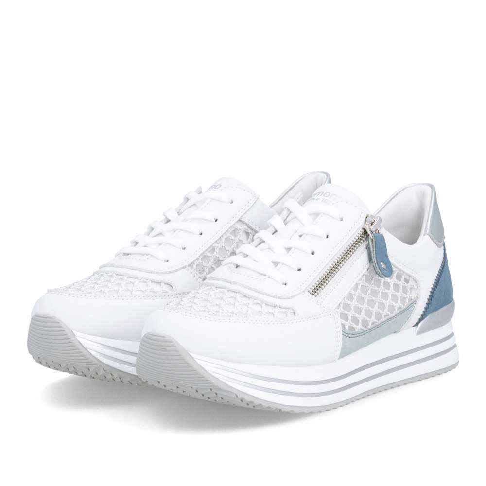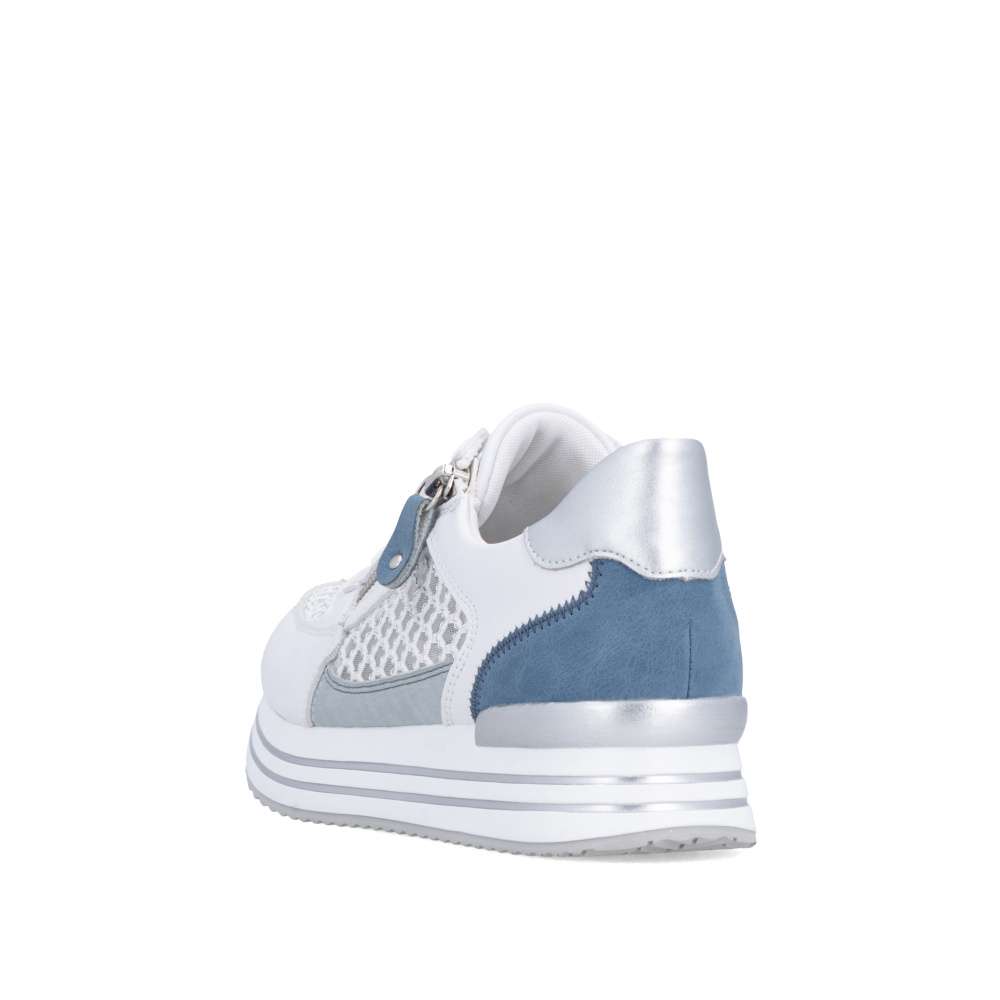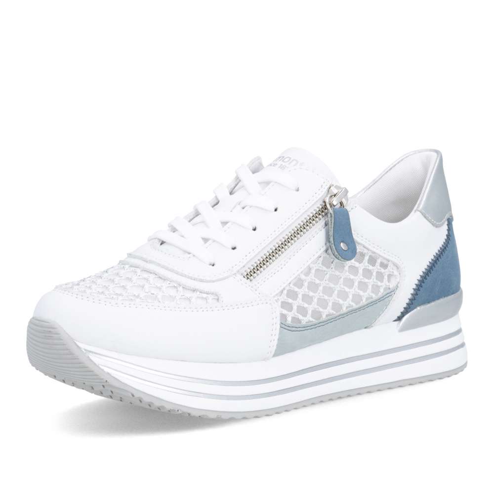 Obuv REMONTE představuje prémiovou řadu značky RIEKER, která se vyznačuje vysokou kvalitou použitých materiálů a precizním zpracováním. Tyto tenisky jsou skutečným módním unikátem, který kombinuje stylový design s prvotřídním komfortem. Svršek je vytvořen z efektně kombinovaných materiálů a textur, hladké části doplněné perforovaným textilem dodávají modelu vzdušný a dynamický vzhled. Kontrastní prvky a jemné detaily zvyšují vizuální atraktivitu a podtrhují originalitu tenisek, čímž se stávají výrazným doplňkem každého outfitu. Každý detail designu je pečlivě propracovaný – kombinace šněrování a praktického zipu na nártu umožňuje snadné obouvání a zároveň přesné přizpůsobení noze podle individuálních potřeb. Vyšší podešev se stabilní konstrukcí a stylovým lemováním v metalických barvách zajišťuje jistotu při každém kroku, zatímco tvarovaná a vyjímatelná stélka poskytuje maximální podporu chodidlu. Tyto tenisky RIEKER jsou ideální volbou pro každodenní nošení, volnočasové aktivity, procházky po městě či cestování.
