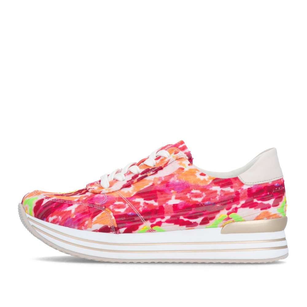 Obuv REMONTE představuje prémiovou řadu značky RIEKER, která se vyznačuje vysokou kvalitou použitých materiálů a precizním zpracováním. Tyto tenisky představují skutečný módní unikát, který okamžitě přitáhne pozornost svojí výraznou barevností a vkusně zakomponovanými metalickými aplikacemi. Design tenisek je promyšlen do posledního detailu. Šněrování poskytuje spolehlivé uchycení chodidla, díky čemuž si můžete obuv dokonale přizpůsobit svým potřebám. Vyjímatelná měkká stélka je navržena tak, aby poskytovala maximální pohodlí při každém kroku. Její snadná údržba a možnost výměny představují praktický bonus, který prodlužuje životnost a hygienu obuvi. Podrážka tenisek je konstruována s důrazem na podporu chodidla a stabilitu, navíc linie lemování s odlesky zvýrazňuje moderní charakter modelu. Tyto tenisky RIEKER jsou určeny ženám, které od obuvi vyžadují víc než jen pěkný vzhled. Jsou dokonalým spojením stylu, komfortu a kvalitního zpracování.
