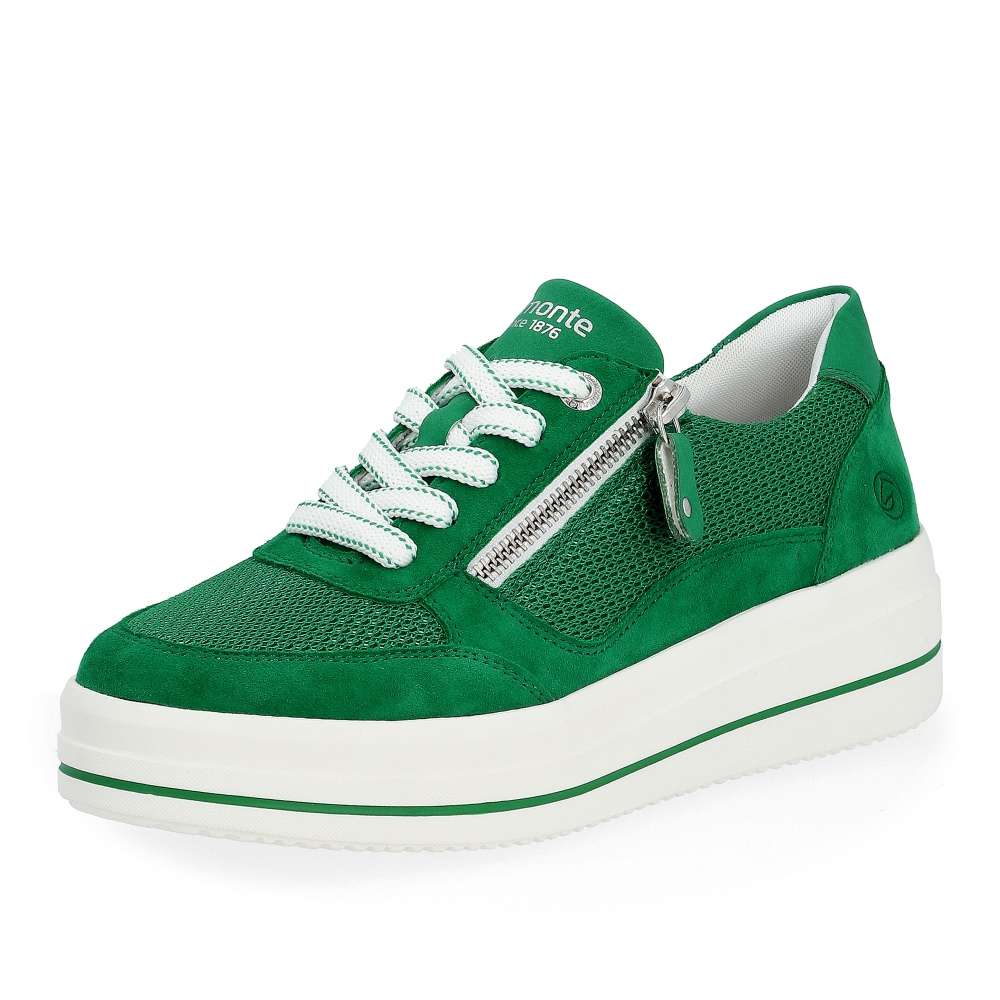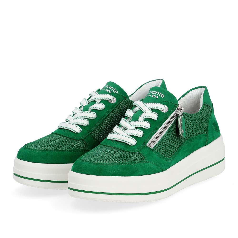 Obuv REMONTE – jedná se o vyšší řadu značky RIEKER, tato obuv se vyznačuje vynikající kombinací svrchních materiálů. Tyto tenisky nabízejí výrazný design svojí zelenou barvou, kombinací materiálů a vyšší podešví, to jsou prvky dodávající obuvi moderní a stylový vzhled. Jednoduché nazutí zajistí zip na nártu a šněrování zdobené logem značky. Komfortním bonusem je vyjímatelná stélka pro dokonalé přizpůsobení tvaru chodidla. Tyto tenisky přinášejí originální design a pohodlí do vašeho každodenního stylu. Technologie: Remonte Soft – unikátní stélka vyrobená z prodyšného materiálu, která svým tvarem a materiálem zajistí pocit pohodlí při celodenním nošení. Lite'n Soft – kombinace lehké podešve a měkké stélky zajistí pocit chůze po oblacích. Tato bota je vybavena vyjímatelnou stélkou.