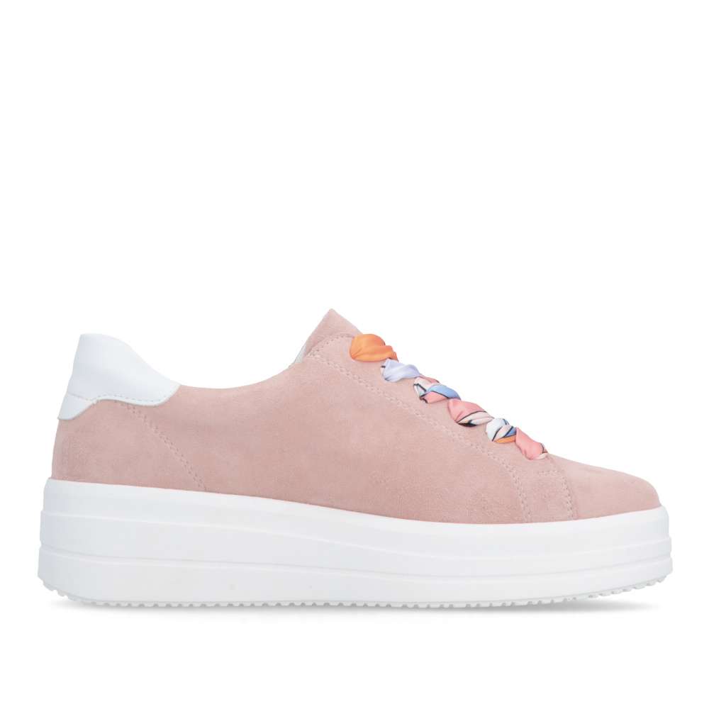 Obuv REMONTE představuje prémiovou řadu značky RIEKER, která se vyznačuje vysokou kvalitou použitých materiálů a precizním zpracováním. Tyto pastelově růžové kožené tenisky okamžitě zaujmou svěžím a mladistvým vzhledem, který oživí každý outfit. Styl šněrování těchto tenisek si můžete libovolně přizpůsobit podle svých preferencí, šňůrky můžete jednoduše vyměnit za dekorativní stuhu, která dodá botám jedinečný charakter. Kombinace zipu a šněrování navíc umožňuje přesné přizpůsobení tvaru boty a snadné nazutí, čímž se zajistí optimální pohodlí při každém kroku. Vyjímatelná stélka je měkká, tvarovaná a přizpůsobí se chodidlu, čímž poskytuje maximální pohodlí. Vyšší stabilní podešev s kontrastní bílou barvou nejen dotváří moderní vzhled, ale také zajišťuje bezpečný krok a podporu při každém pohybu. Tyto tenisky jsou univerzálním doplňkem vašeho šatníku - hodí se do práce, na nákupy, procházky městem i volnočasové aktivity.