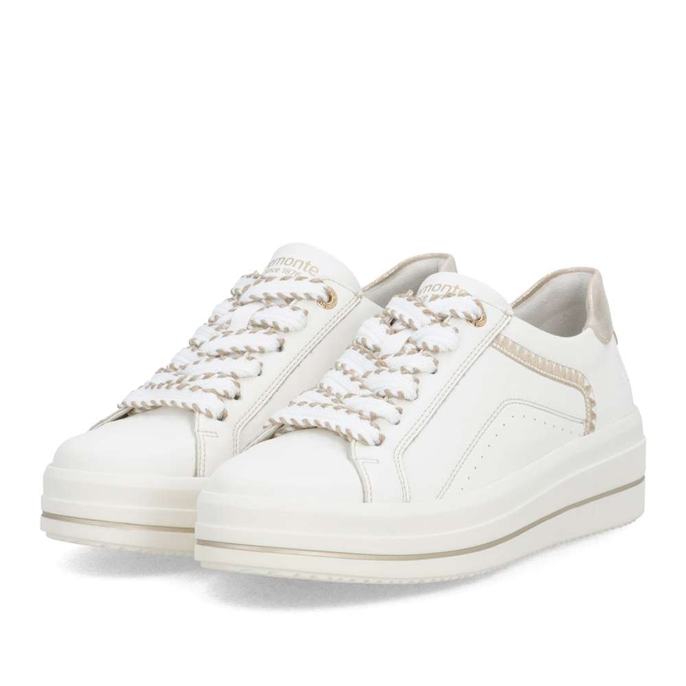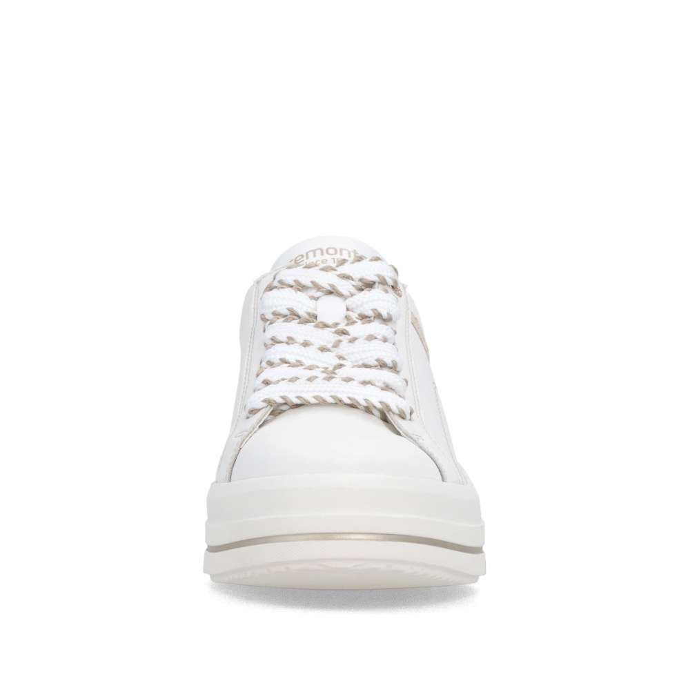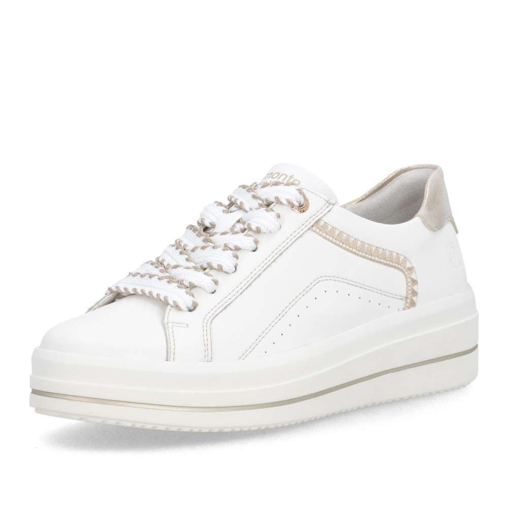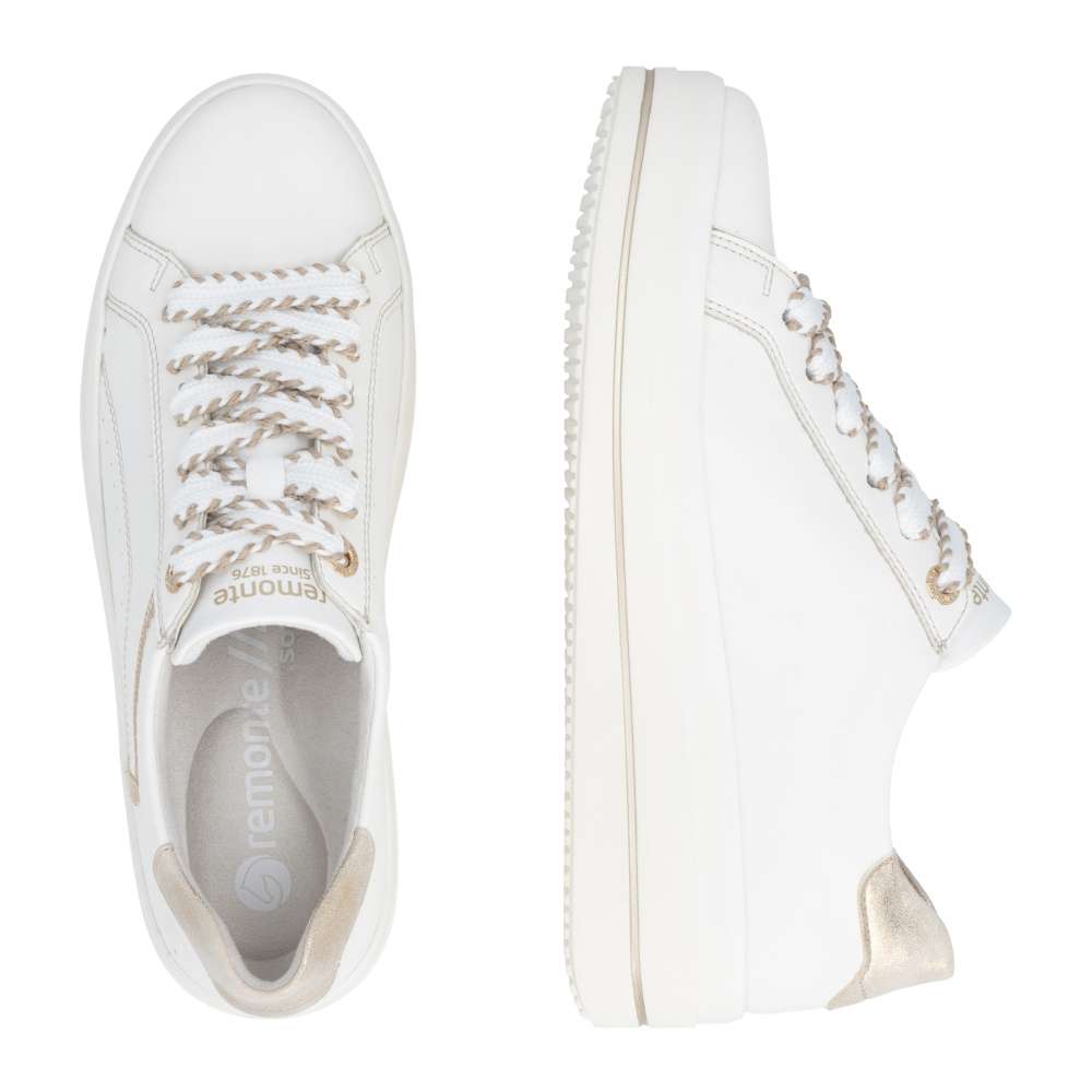 Obuv REMONTE představuje prémiovou řadu značky RIEKER, která se vyznačuje vysokou kvalitou použitých materiálů a precizním zpracováním. Tyto bílé tenisky jsou dokonalým vyjádřením nadčasového designu v módním stylu značky RIEKER. Jejich kožený svršek působí čistě, přičemž jej oživuje atraktivní šitý vzor a metalický detail v oblasti paty, který dodává modelu nádech luxusu. Díky praktickému šněrování s vizuálně působivou šňůrkou si tenisky snadno přizpůsobíte přesně podle tvaru svého chodidla, což zaručí pohodlné nošení během celého dne. Měkká, vyjímatelná stélka se přizpůsobí vašim potřebám – poskytne dokonalé pohodlí a v případě potřeby ji můžete nahradit vlastními stélkami. Vyšší podešev s decentním lesklým lemováním nejen zvýrazní celkový vzhled obuvi, ale také přispívá ke stabilitě při chůzi. Tenisky tak nejen skvěle vypadají, ale zároveň nabízí i vysoký komfort. Pokud hledáte obuv, která kombinuje styl, kvalitu a pohodlí, tyto tenisky jsou ideální volbou, díky které budete vypadat skvěle a cítit se ještě lépe.