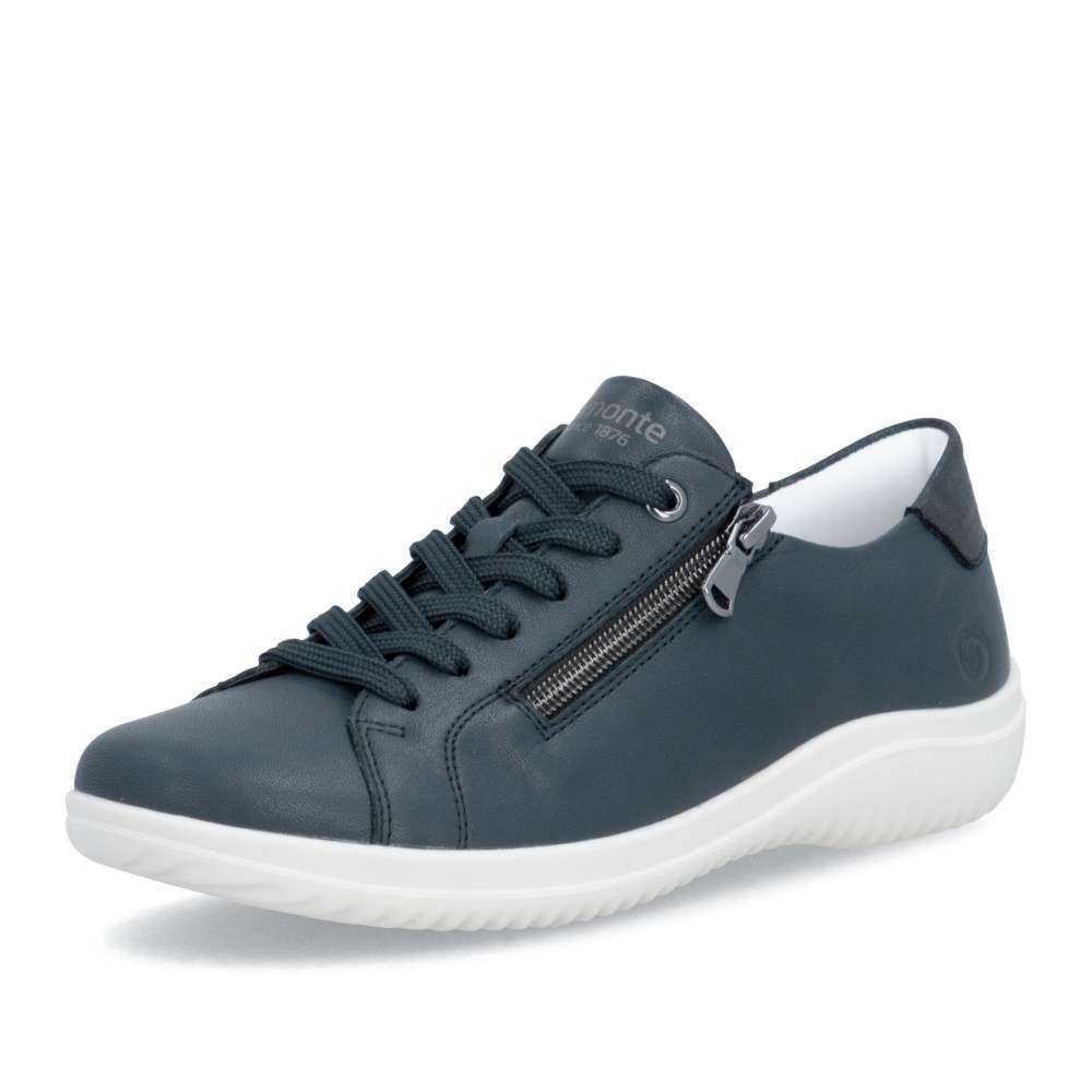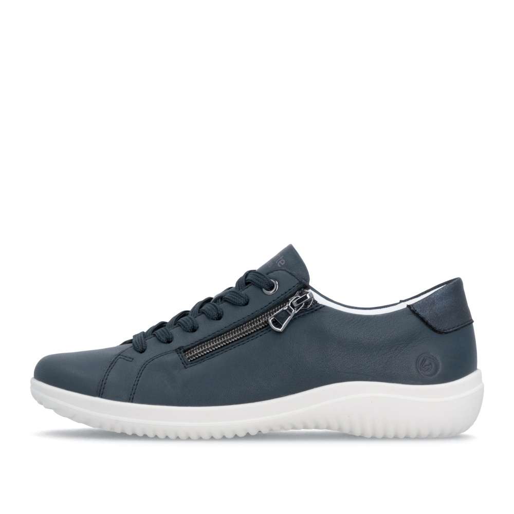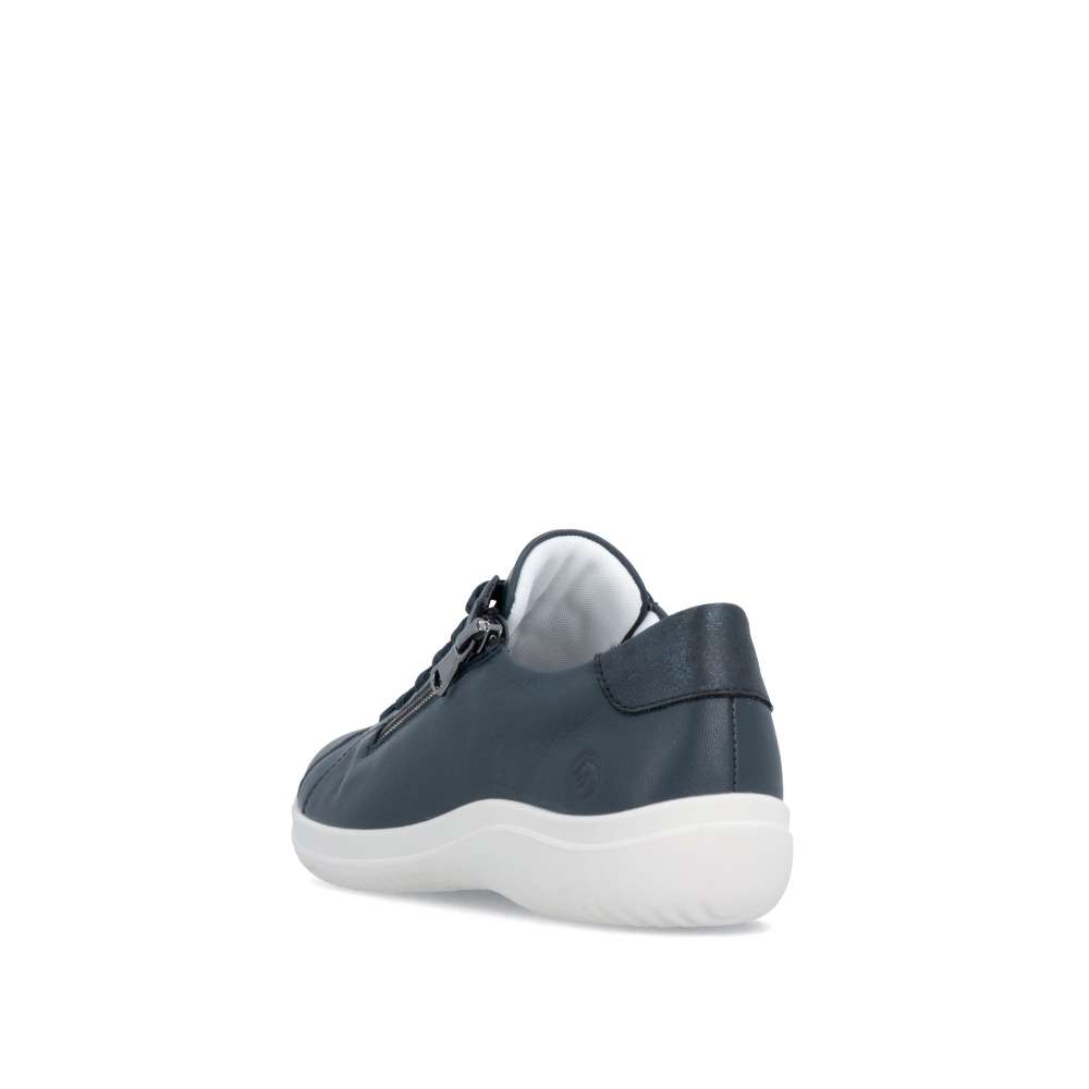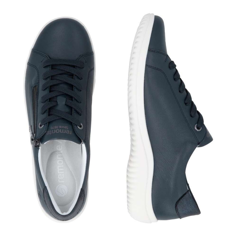 Obuv REMONTE představuje prémiovou řadu značky RIEKER, která se vyznačuje vysokou kvalitou použitých materiálů a precizním zpracováním. Kožený tmavě modrý svršek těchto tenisek působí nadčasově a jemný detail mu přidávají odlesky na aplikaci v části paty. Svým decentním vzhledem se stanou dokonalým doplňkem vašeho outfitu, ať už se chystáte do práce, na nákupy nebo volnočasové aktivity. Praktický zip na nártu umožňuje rychlé a pohodlné obouvání, zatímco klasické šněrování vám poskytuje možnost přesného přizpůsobení bot tvaru vaší nohy. Maximální pohodlí během celého dne zajistí vyjímatelná měkká stélka, která se dokonale přizpůsobí chodidlu a umožňuje i snadnou údržbu nebo výměnu. Stabilní podešev nejen podtrhuje moderní vzhled tenisek, ale poskytuje také stabilitu při každém kroku. Tyto tenisky spojují nadčasový design, vysokou kvalitu zpracování a praktické detaily, díky čemuž se stávají univerzální obuví pro každodenní nošení i pro aktivní životní styl.