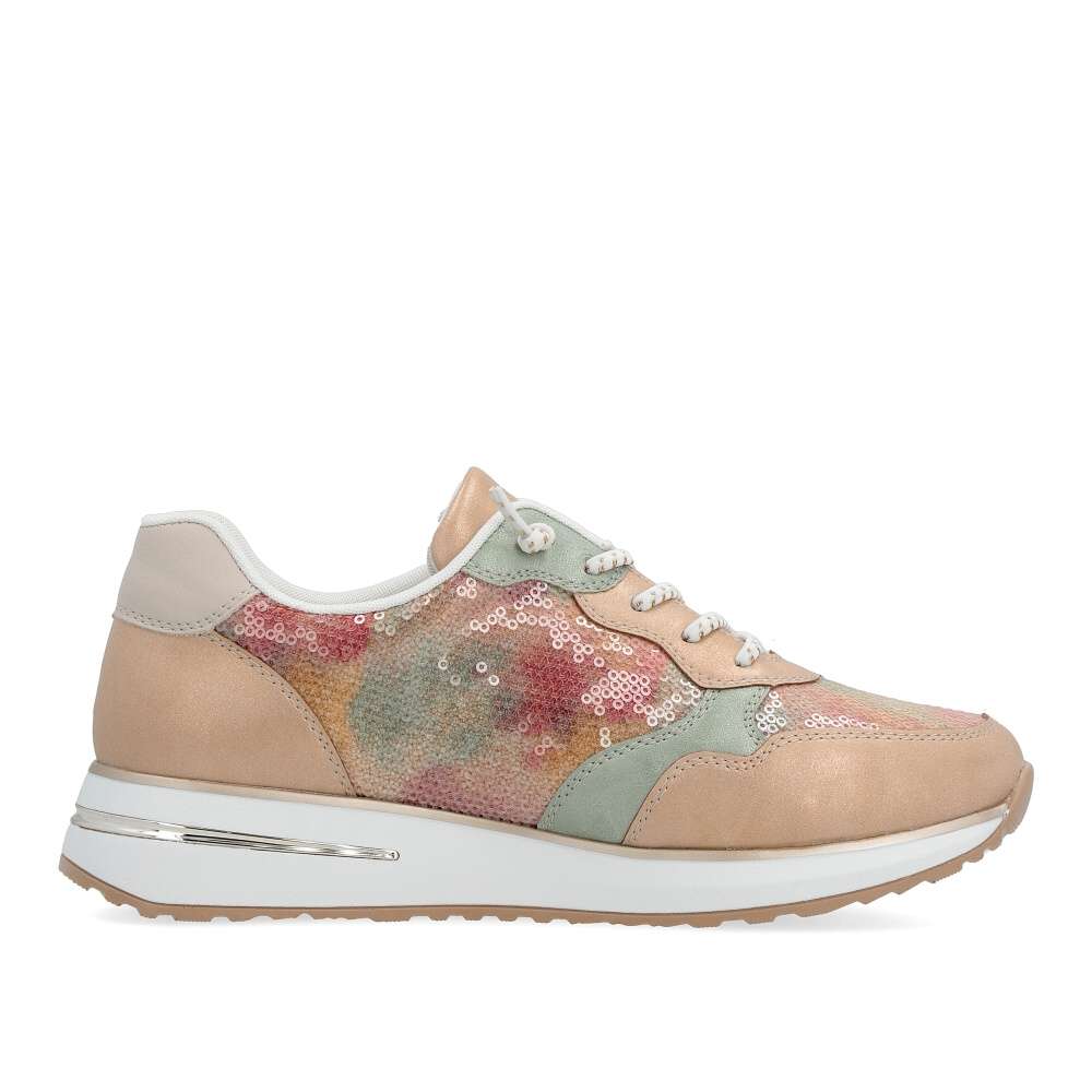 Obuv REMONTE – jedná se o vyšší řadu značky RIEKER, tato obuv se vyznačuje vynikající kombinací svrchních materiálů. Tyto unikátní tenisky RIEKER nabízejí nejen působivou kombinaci barev, ale také drobné zdobení s odlesky, které přidává do obuvi nádech elegance a originality. S možností sáhnout po šněrování šňůrkou nebo gumičkou si můžete vybrat styl, který vám nejlépe vyhovuje. Měkká vyjímatelná stélka a flexibilní podešev poskytují maximální pohodlí a podporu během celého dne. Tyto tenisky jsou nejen stylové, ale také praktické pro každodenní nošení. Technologie: Remonte Soft – unikátní stélka vyrobená z prodyšného materiálu, která svým tvarem a materiálem zajistí pocit pohodlí při celodenním nošení. Tato bota je vybavena vyjímatelnou stélkou. Lite’n Soft – kombinace lehké podešve a měkké stélky zajistí pocit chůze po oblacích.