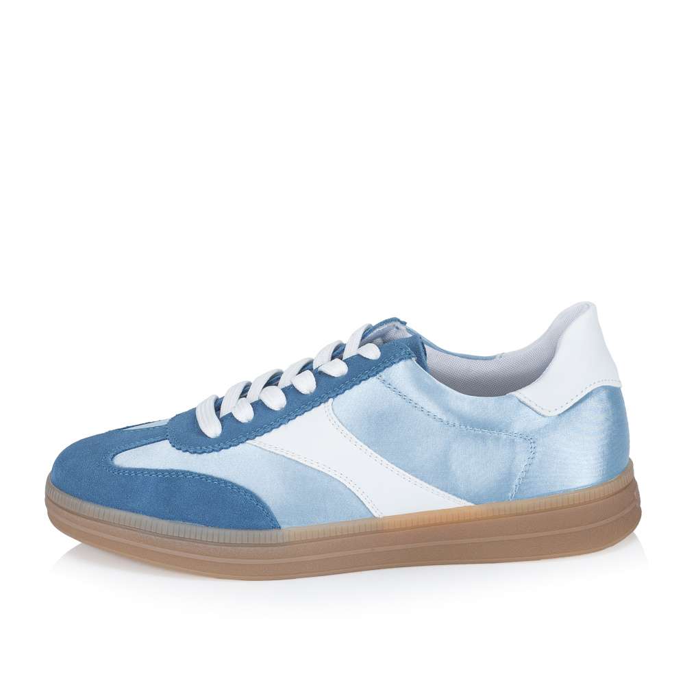 Obuv REMONTE představuje prémiovou řadu značky RIEKER, která se vyznačuje vysokou kvalitou použitých materiálů a precizním zpracováním. Moderní design a komfort při nošení se dokonale pojí v těchto teniskách, které vnesou do vašeho šatníku svěží nádech. Efektně zvolené barevné a materiálové kontrasty dodávají modelu svěžest, díky čemuž tenisky působí mimořádně stylově. Klasické šněrování umožňuje pohodlné obouvání i přesné přizpůsobení tvaru chodidla, čímž se zajistí přirozený pohyb při každém kroku. Vyjímatelná měkká stélka přináší výjimečné pohodlí během celého dne a přispívá k celkové pohodě při chůzi. Její praktická vyjímatelnost umožňuje snadné čištění či rychlou výměnu, což zvyšuje hygienu obuvi a prodlužuje její životnost. Podešev poskytuje optimální oporu, flexibilitu a stabilitu při chůzi, což oceníte zejména během delších dnů plných pohybu. Harmonický design tenisek, propracované detaily a praktické funkční prvky je činí univerzálním kouskem – vhodným pro každodenní nošení, volnočasové aktivity, městské procházky i cestování.
