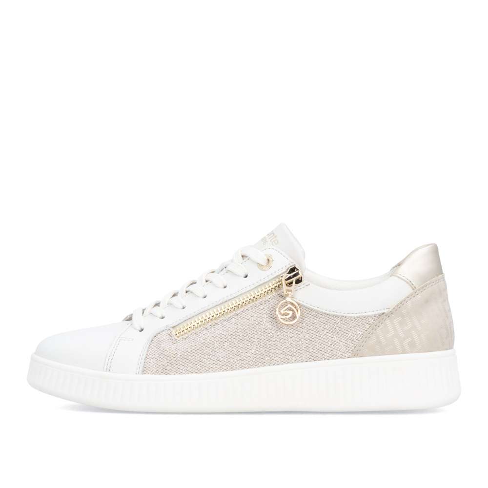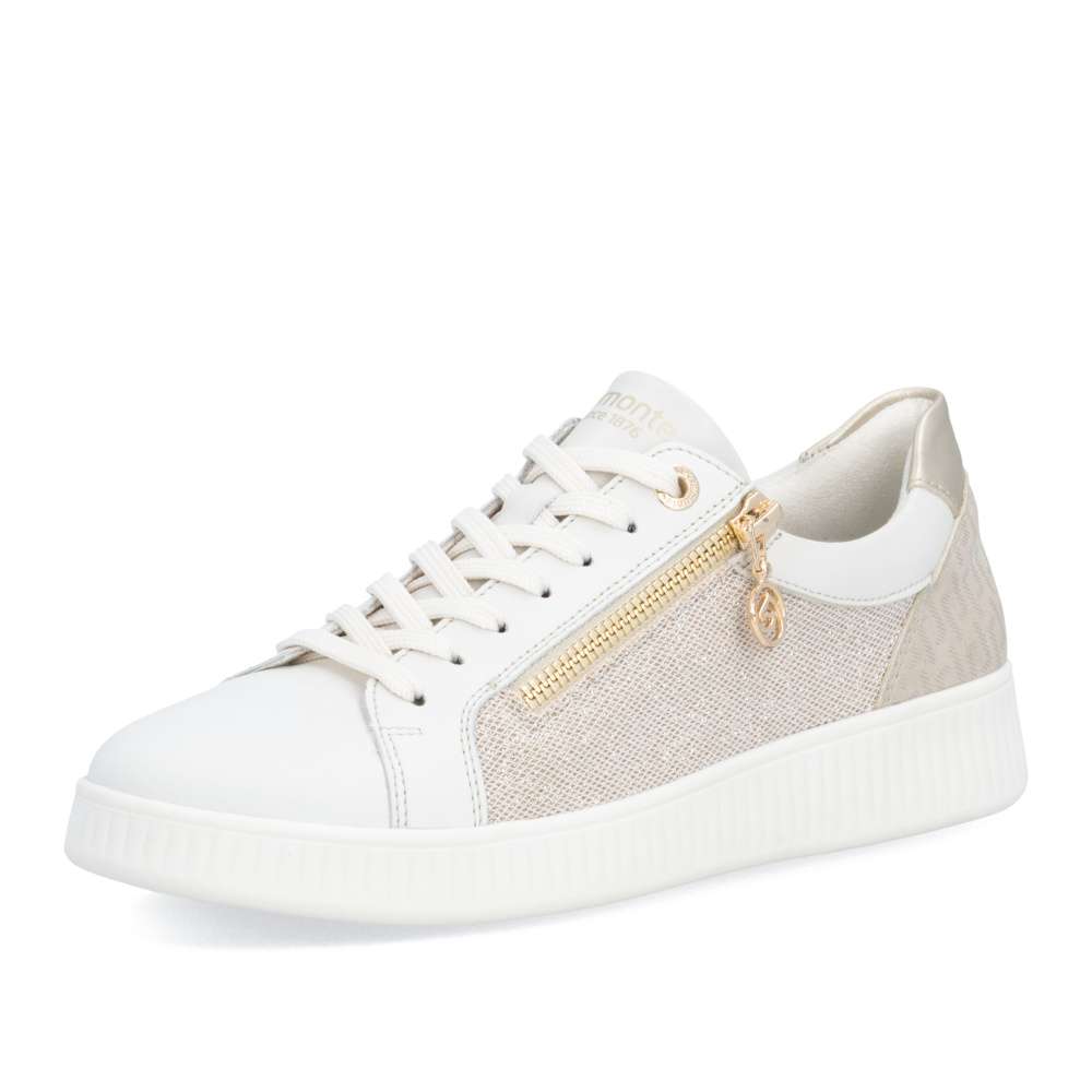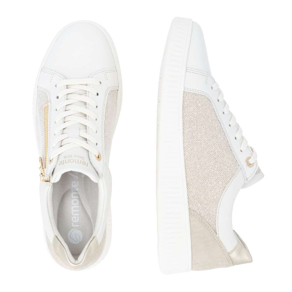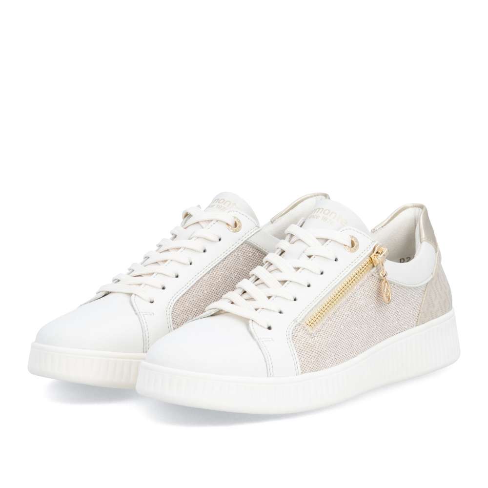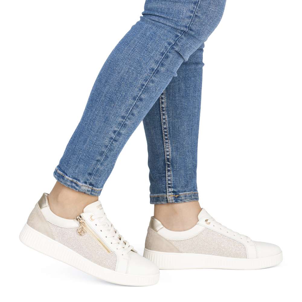 Obuv REMONTE představuje prémiovou řadu značky RIEKER, která se vyznačuje vysokou kvalitou použitých materiálů a precizním zpracováním. Neodolatelný půvab těchto tenisek vychází z propracované kombinace různých textur, jemných odlesků a originálního vzoru, která zaručuje jedinečný vizuální efekt. Tento harmonický mix materiálů nejen upoutá pozornost, ale zároveň dodává teniskám dynamický charakter, který působí stylově. Praktické šněrování v kombinaci se zipem na nártu umožňuje snadné a rychlé obouvání a zároveň přesné přizpůsobení tvaru chodidla. Vyjímatelná měkká stélka se dokonale přizpůsobí tvaru chodidla, poskytuje výjimečný komfort během celého dne a účinně tlumí došlap. Její praktická vyjímatelnost umožňuje snadné čištění či výměnu, čímž se prodlužuje životnost tenisek. Podešev je navržena tak, aby se přizpůsobila přirozenému pohybu chodidla a poskytovala flexibilitu a stabilitu na různých površích, což zvyšuje celkový komfort při dlouhodobém nošení. Tyto tenisky RIEKER představují ideální volbu pro ženy, které hledají spojení stylového designu, kvalitního zpracování a vysokého komfortu.