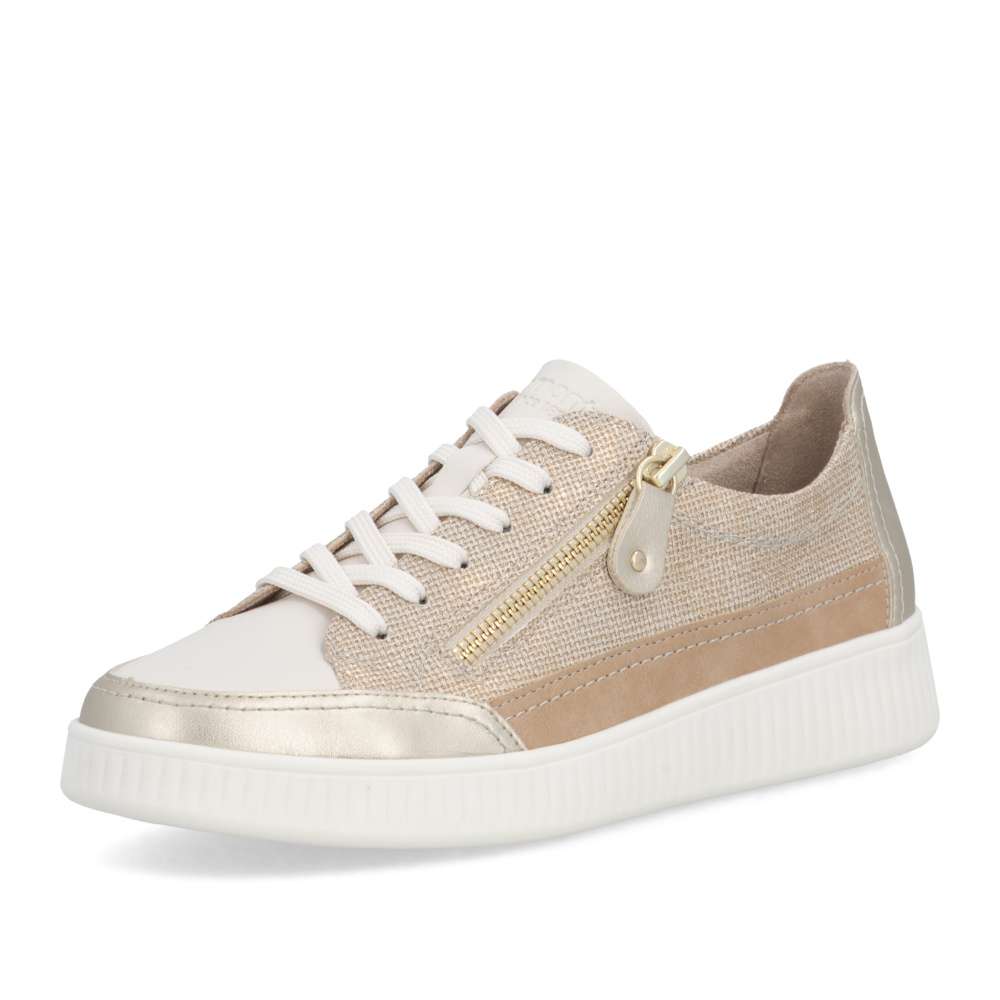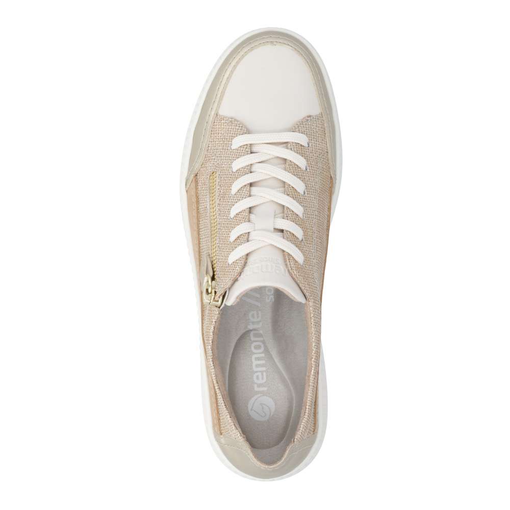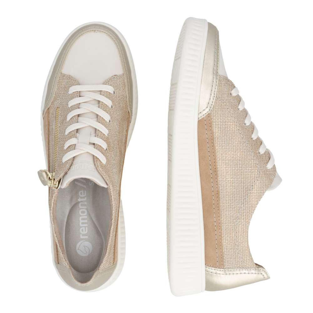 Obuv REMONTE představuje prémiovou řadu značky RIEKER, která se vyznačuje vysokou kvalitou použitých materiálů a precizním zpracováním. Tyto módní tenisky vynikají jedinečným designem, který vzniká kombinací různých struktur materiálů, jemnými barevnými kontrasty a působivými odlesky. Každý detail byl promyšlen tak, aby boty působily stylově a zároveň prakticky. Šněrování spolu se zipem na nártu umožňuje snadné a rychlé nazutí a zároveň přesné přizpůsobení tvaru nohy, což zaručuje optimální pohodlí během celého dne. Vyjímatelná měkká stélka se perfektně přizpůsobí chodidlu a poskytuje ergonomickou podporu, navíc ji můžete jednoduše vyjmout, vyčistit nebo vyměnit za jinou dle individuálních potřeb. Vyšší stabilní podešev dodává tenisek moderní a dynamický vzhled, zároveň zajišťuje bezpečný krok a komfort i při dlouhodobém nošení. Díky spojení inovativního designu, praktických řešení a pohodlí se tyto tenisky stanou vaším každodenním společníkem, který vám dodá sebedůvěru a stylový vzhled při každé příležitosti. Ať už jdete kamkoli, tyto tenisky vás budou provázet komfortem a jedinečným módním šarmem.