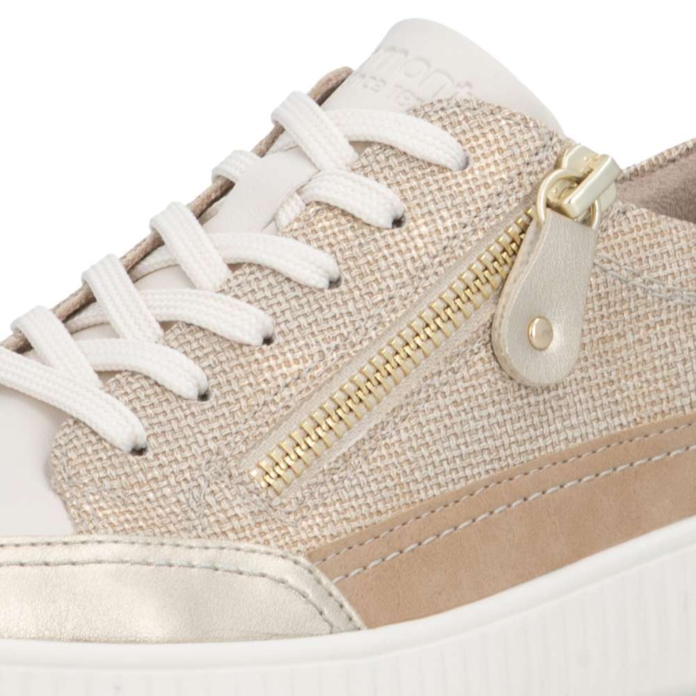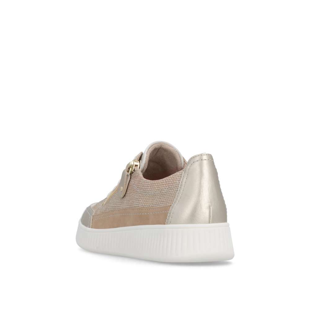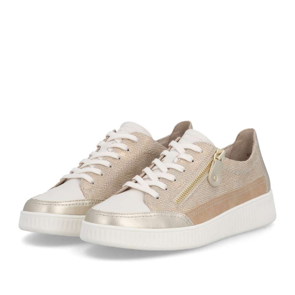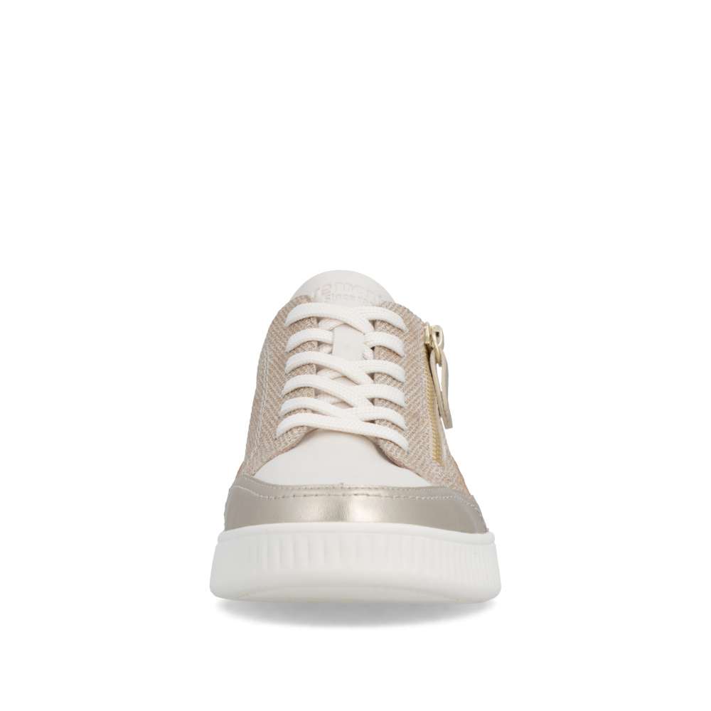 Obuv REMONTE představuje prémiovou řadu značky RIEKER, která se vyznačuje vysokou kvalitou použitých materiálů a precizním zpracováním. Tyto módní tenisky vynikají jedinečným designem, který vzniká kombinací různých struktur materiálů, jemnými barevnými kontrasty a působivými odlesky. Každý detail byl promyšlen tak, aby boty působily stylově a zároveň prakticky. Šněrování spolu se zipem na nártu umožňuje snadné a rychlé nazutí a zároveň přesné přizpůsobení tvaru nohy, což zaručuje optimální pohodlí během celého dne. Vyjímatelná měkká stélka se perfektně přizpůsobí chodidlu a poskytuje ergonomickou podporu, navíc ji můžete jednoduše vyjmout, vyčistit nebo vyměnit za jinou dle individuálních potřeb. Vyšší stabilní podešev dodává tenisek moderní a dynamický vzhled, zároveň zajišťuje bezpečný krok a komfort i při dlouhodobém nošení. Díky spojení inovativního designu, praktických řešení a pohodlí se tyto tenisky stanou vaším každodenním společníkem, který vám dodá sebedůvěru a stylový vzhled při každé příležitosti. Ať už jdete kamkoli, tyto tenisky vás budou provázet komfortem a jedinečným módním šarmem.