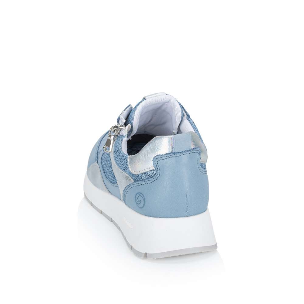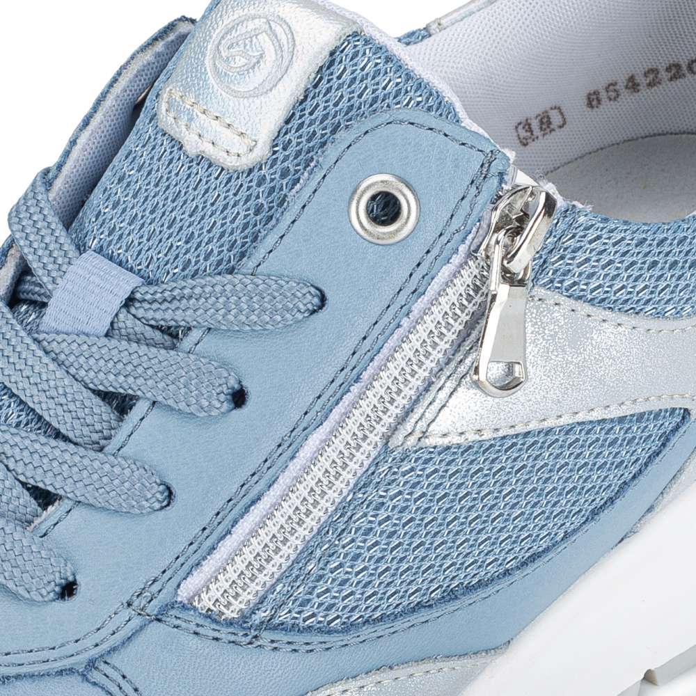 Obuv REMONTE představuje prémiovou řadu značky RIEKER, která se vyznačuje vysokou kvalitou použitých materiálů a precizním zpracováním. Obujte se do stylového designu těchto tenisek RIEKER, které spojují vizuální přitažlivost s mimořádným komfortem a kvalitou zpracování. Svršek tenisek v modrých odstínech z různých materiálových struktur vytváří dynamický vzhled a decentní lesklé odlesky aplikací zvyšují celkovou estetiku modelu. Kombinace klasického šněrování se zipem na nártu umožňuje snadné a rychlé obouvání, přičemž poskytuje přesné přizpůsobení tvaru chodidla podle individuálních potřeb. Tento praktický detail zaručuje stabilitu, podporuje přirozený pohyb a poskytuje jistotu při každém kroku, což oceníte zejména při celodenním nošení. Vyjímatelná měkká, prodyšná stélka přináší výjimečný komfort a přizpůsobí se tvaru chodidla, čímž podporuje přirozený pohyb. Praktická vyjímatelnost stélky umožňuje snadné čištění a rychlou výměnu, čímž se zvyšuje hygiena tenisek a prodlužuje jejich životnost. Stabilní podešev s precizně navrženou konstrukcí poskytuje optimální oporu při chůzi a její kontrastní barva dodává dynamický nádech. Tyto tenisky díky harmonickému designu, propracovaným detailům a praktickým funkcím jsou vhodné pro každodenní nošení, volnočasové aktivity, procházky po městě nebo cestování.