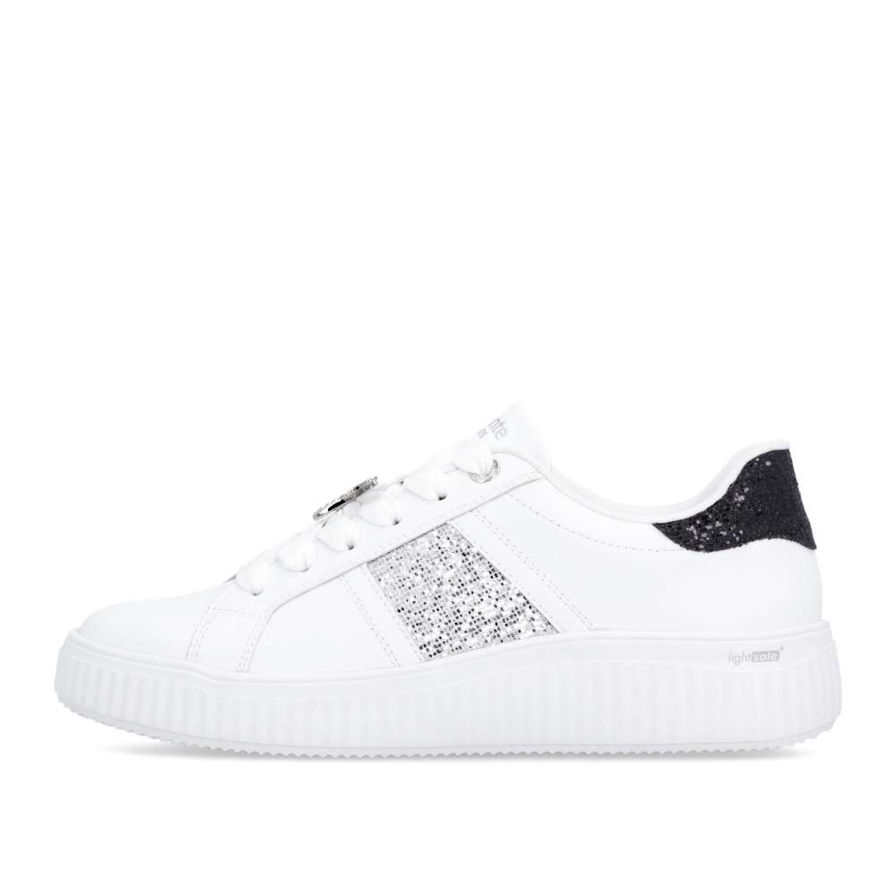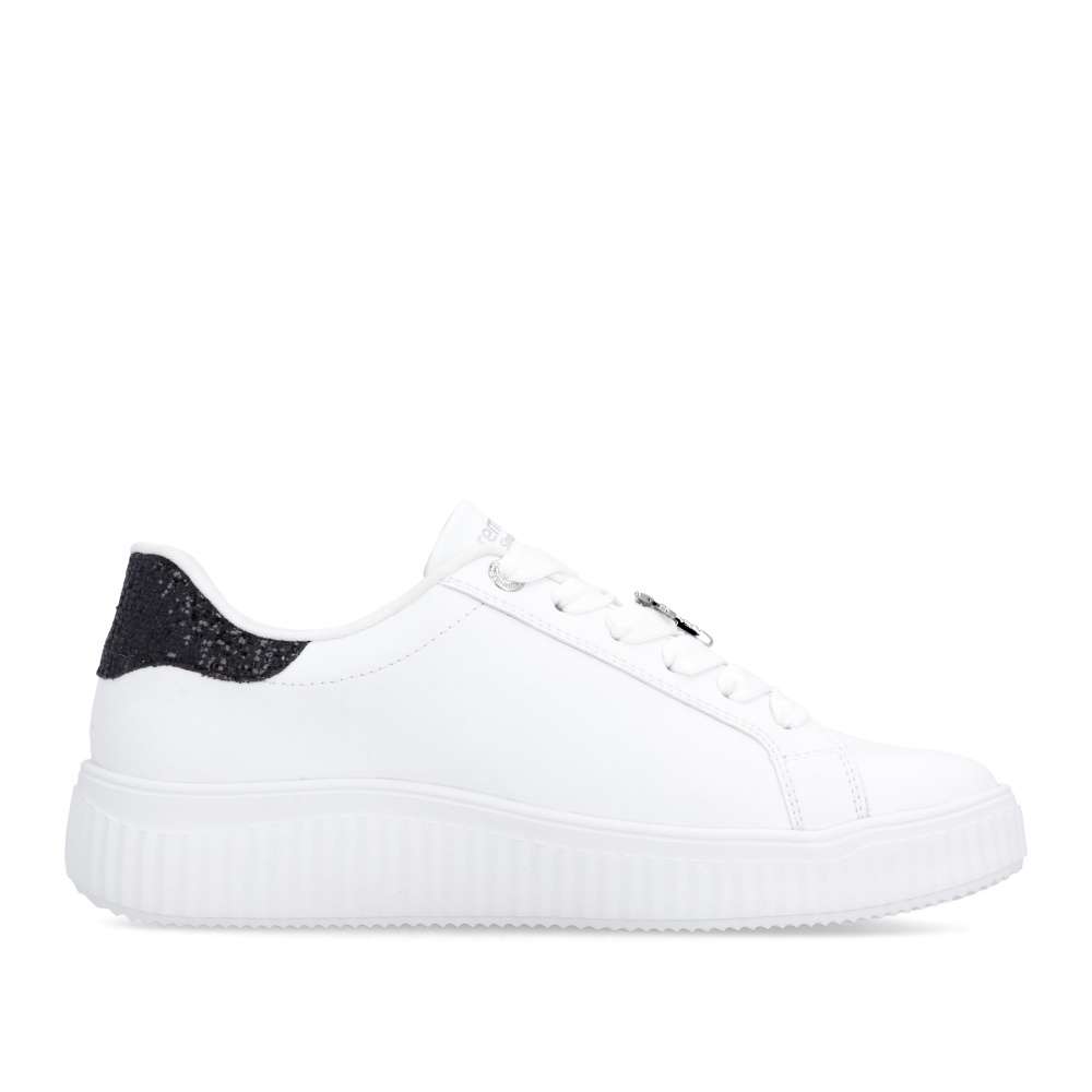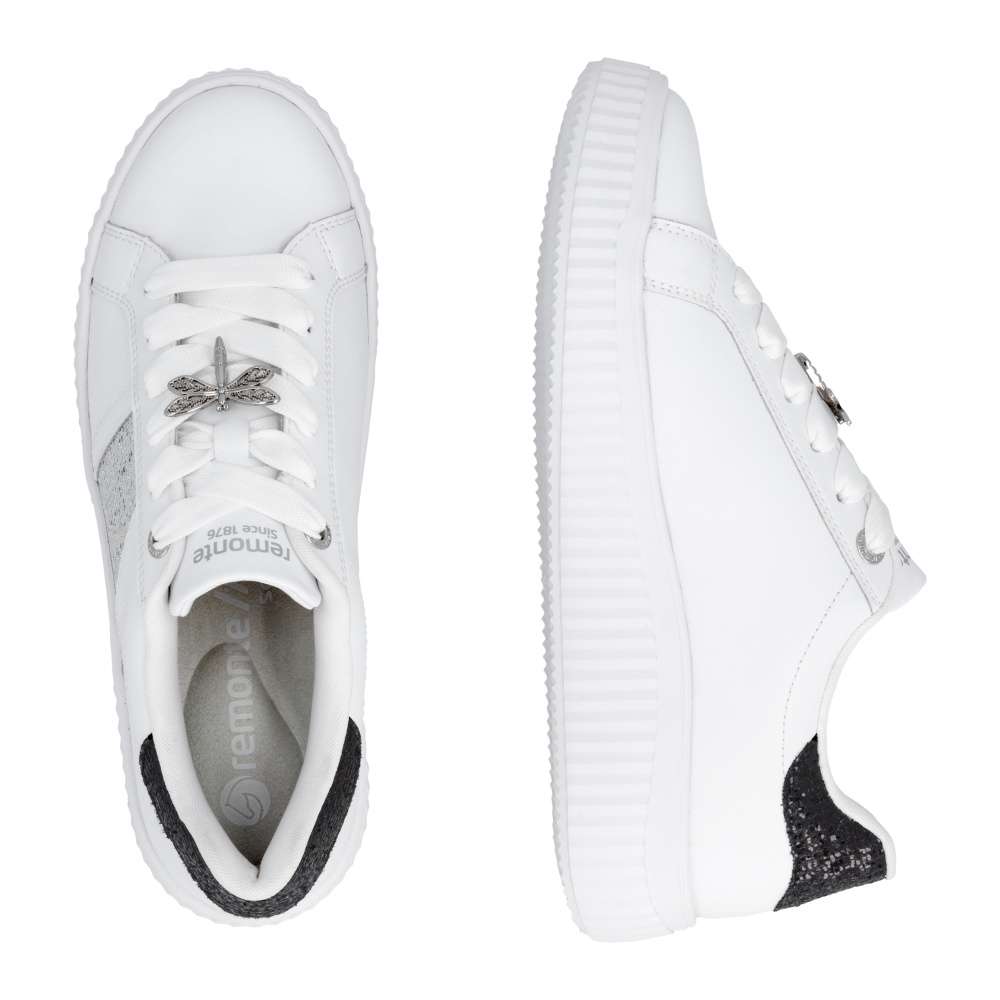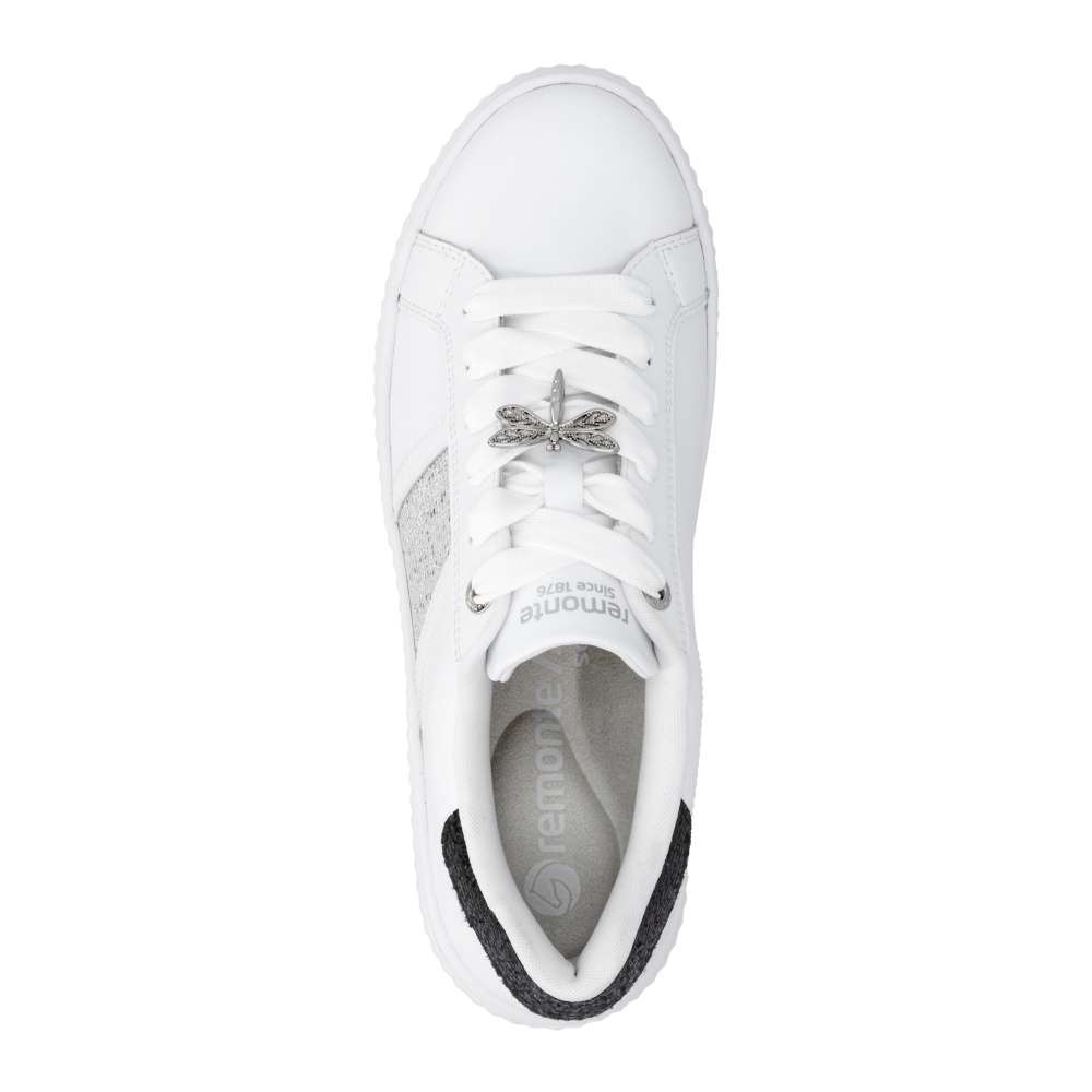 Obuv REMONTE představuje prémiovou řadu značky RIEKER, která se vyznačuje vysokou kvalitou použitých materiálů a precizním zpracováním. Tyto tenisky představují vyjímečný model, který spojuje nejnovější módní trendy s precizním zpracováním a důrazem na každý detail. Bílý svršek tenisek zdobí třpytivé aplikace, které jim dodávají zářivý akcent a povyšují jejich vzhled na opravdu výjimečný módní kousek. Šněrování dekorované půvabnou aplikací vážky dodává obuvi luxusní akcent, který okamžitě upoutá pozornost. Zároveň umožňuje přesné přizpůsobení tvaru nohy, díky čemuž poskytuje dokonalý pocit jistoty a pohodlí. Vyjímatelná stélka se jemně přizpůsobí chodidlu a svou prodyšností zajistí pocit svěžesti i při delším nošení – komfort, na který se můžete spolehnout každý den. Vyšší stabilní podešev dodává modelu atraktivní siluetu a zároveň poskytuje mimořádnou oporu při chůzi. Je navržena tak, aby podpořila přirozený pohyb chodidla a přinesla lehkost každého kroku. Tyto tenisky perfektně doplní moderní městský styl, ať už vyrážíte do práce, na procházku nebo za zábavou. Luxus v dokonalé rovnováze se stylem a pohodlím – přesně takový pocit vám dopřejí při každém kroku.