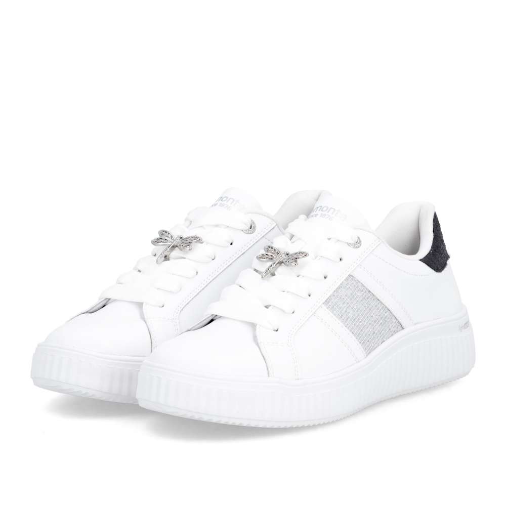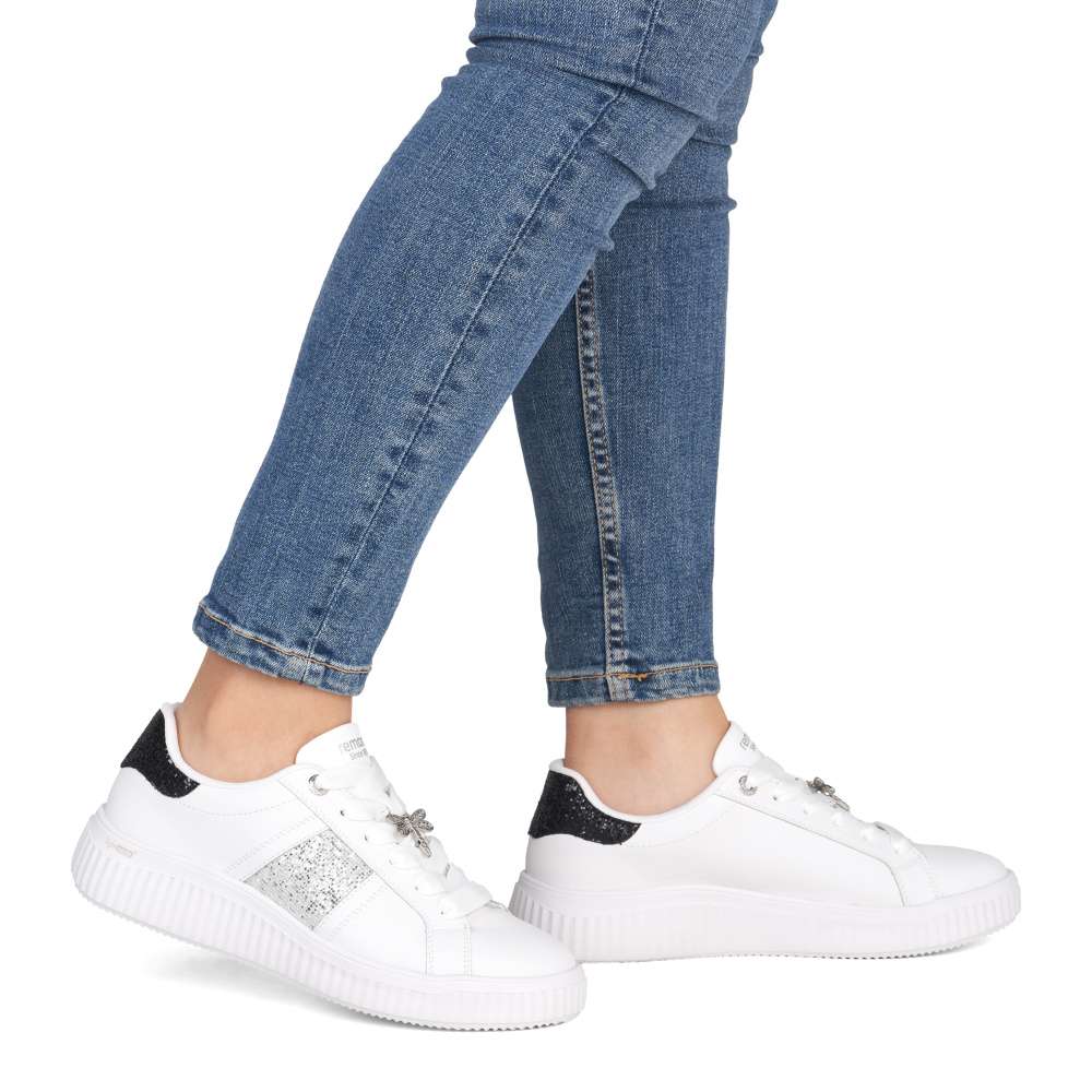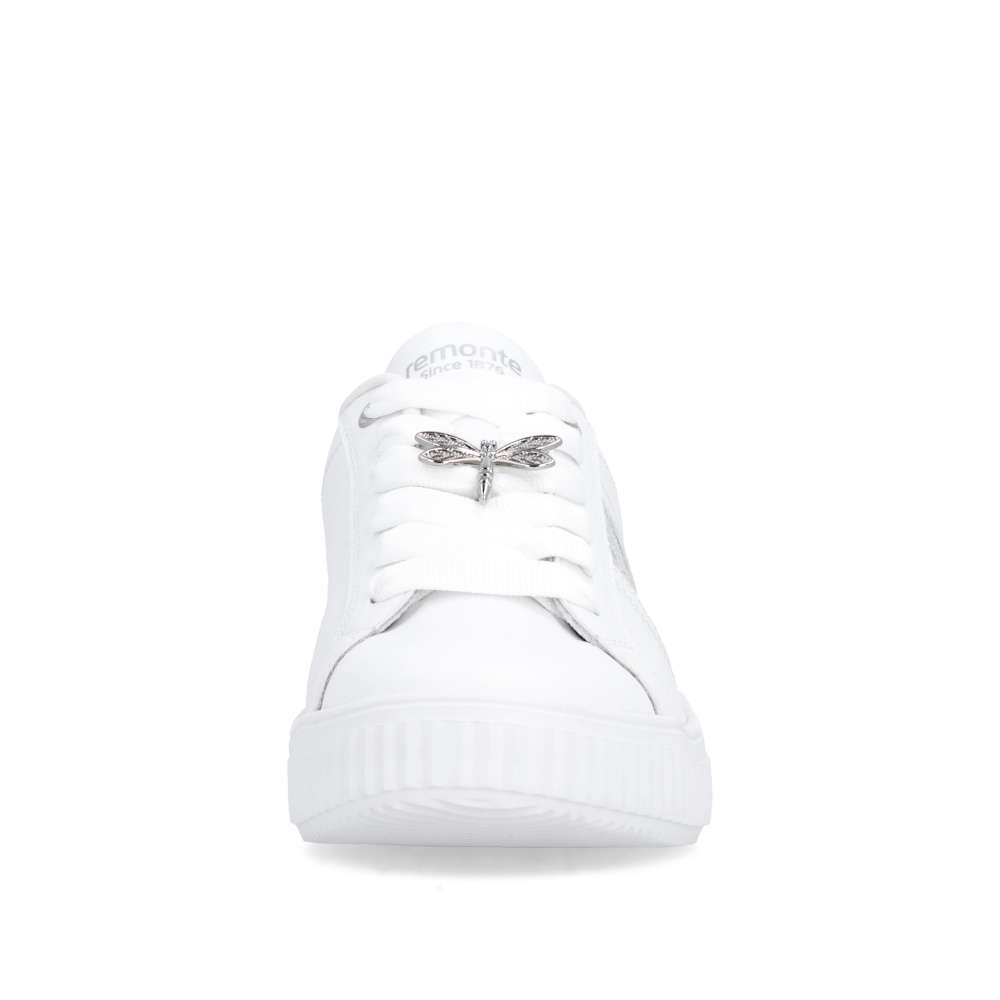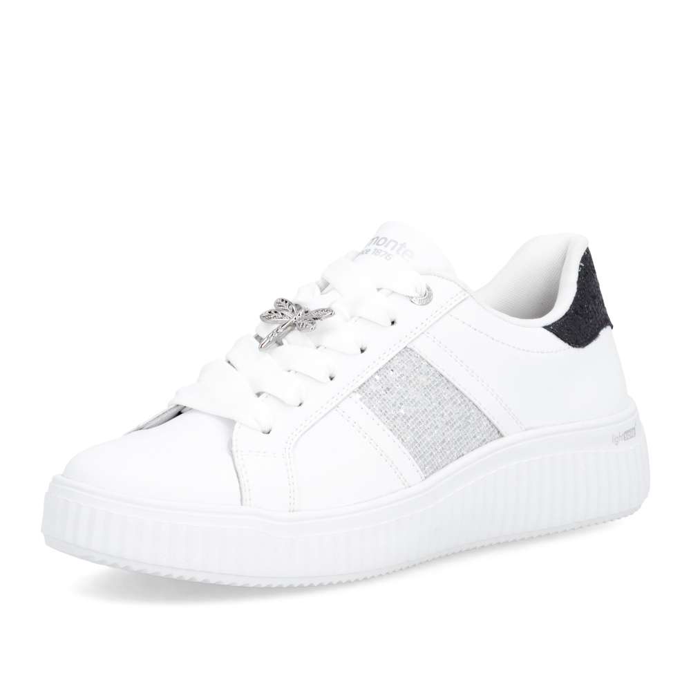 Obuv REMONTE představuje prémiovou řadu značky RIEKER, která se vyznačuje vysokou kvalitou použitých materiálů a precizním zpracováním. Tyto tenisky představují vyjímečný model, který spojuje nejnovější módní trendy s precizním zpracováním a důrazem na každý detail. Bílý svršek tenisek zdobí třpytivé aplikace, které jim dodávají zářivý akcent a povyšují jejich vzhled na opravdu výjimečný módní kousek. Šněrování dekorované půvabnou aplikací vážky dodává obuvi luxusní akcent, který okamžitě upoutá pozornost. Zároveň umožňuje přesné přizpůsobení tvaru nohy, díky čemuž poskytuje dokonalý pocit jistoty a pohodlí. Vyjímatelná stélka se jemně přizpůsobí chodidlu a svou prodyšností zajistí pocit svěžesti i při delším nošení – komfort, na který se můžete spolehnout každý den. Vyšší stabilní podešev dodává modelu atraktivní siluetu a zároveň poskytuje mimořádnou oporu při chůzi. Je navržena tak, aby podpořila přirozený pohyb chodidla a přinesla lehkost každého kroku. Tyto tenisky perfektně doplní moderní městský styl, ať už vyrážíte do práce, na procházku nebo za zábavou. Luxus v dokonalé rovnováze se stylem a pohodlím – přesně takový pocit vám dopřejí při každém kroku.