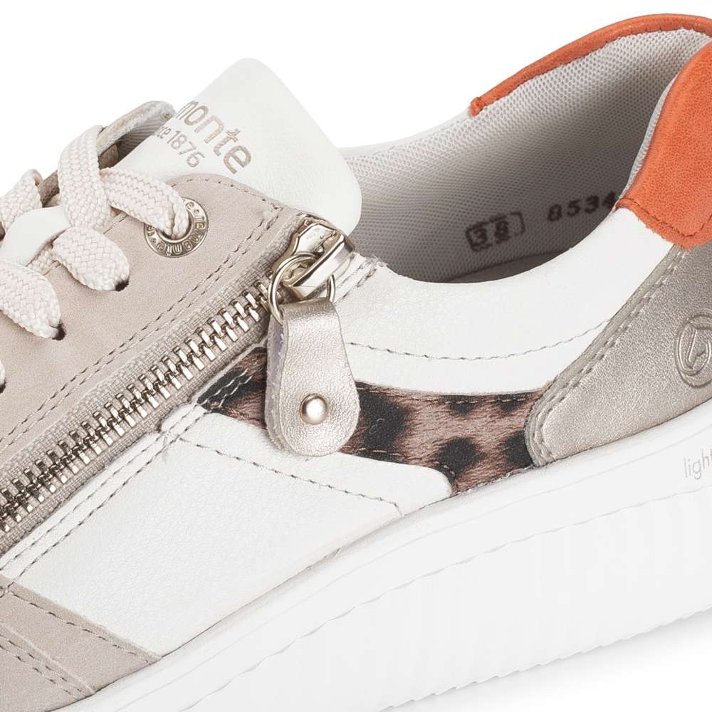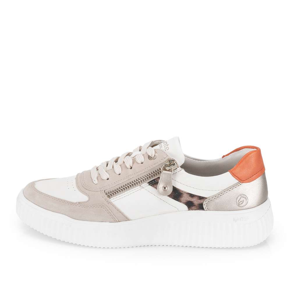 Obuv REMONTE představuje prémiovou řadu značky RIEKER, která se vyznačuje vysokou kvalitou použitých materiálů a precizním zpracováním. Tento model je navržen pro ženy očekávající od bot nejen moderní vzhled, ale také výjimečný komfort během celého dne. Svršek tvoří dokonale propracovaná kombinace materiálů, odlesků a zvířecího vzoru, které dohromady vytvářejí výrazný vizuální efekt. Šněrování umožňuje přesné přizpůsobení chodidlu, zatímco zip v oblasti nártu zajišťuje maximální pohodlí při obouvání – rychlé, plynulé a bez námahy. Uvnitř se nachází vyjímatelná, měkká a prodyšná stélka, která se přirozeně přizpůsobí tvaru chodidla a poskytuje pocit komfortu i během delších aktivit. O vaši stabilitu a jistotu se postará vyšší, pevná a zároveň pružná podešev, která tlumí nárazy a podporuje přirozený pohyb při chůzi. Tyto tenisky vyniknou v městském stylu, při každodenních pochůzkách i ve volnočasových outfitech, přičemž každému kroku dodají nenucený nádech jedinečnosti.