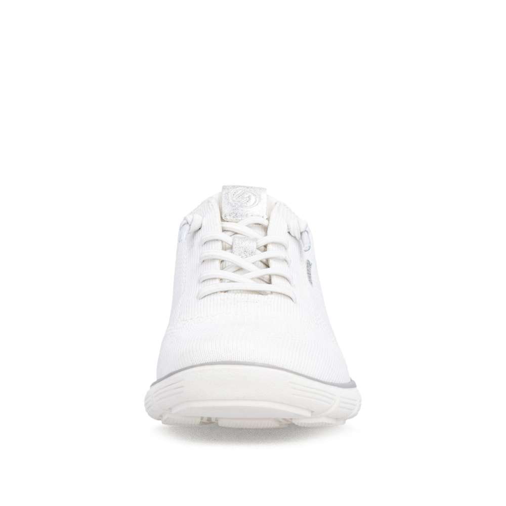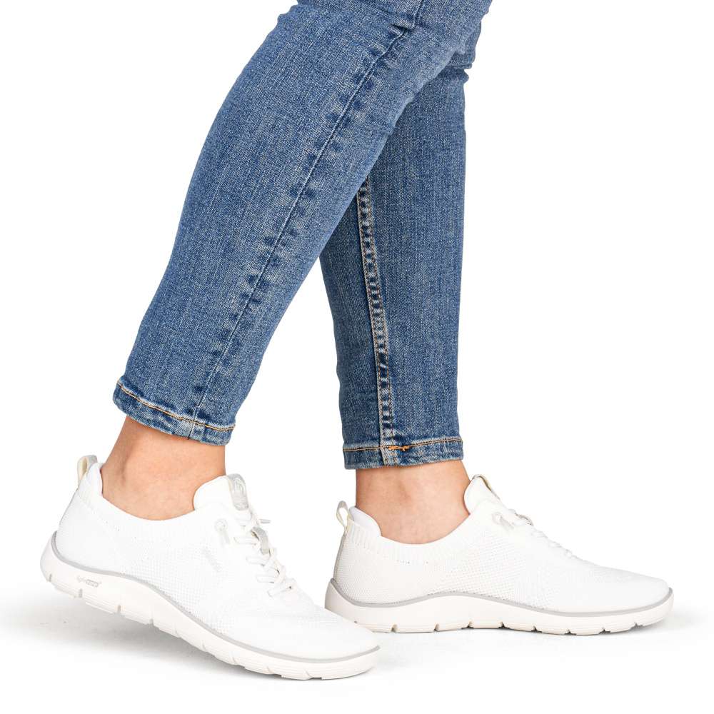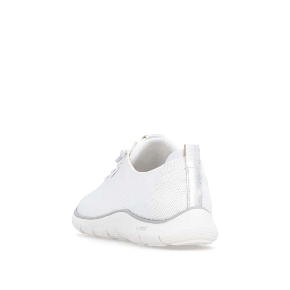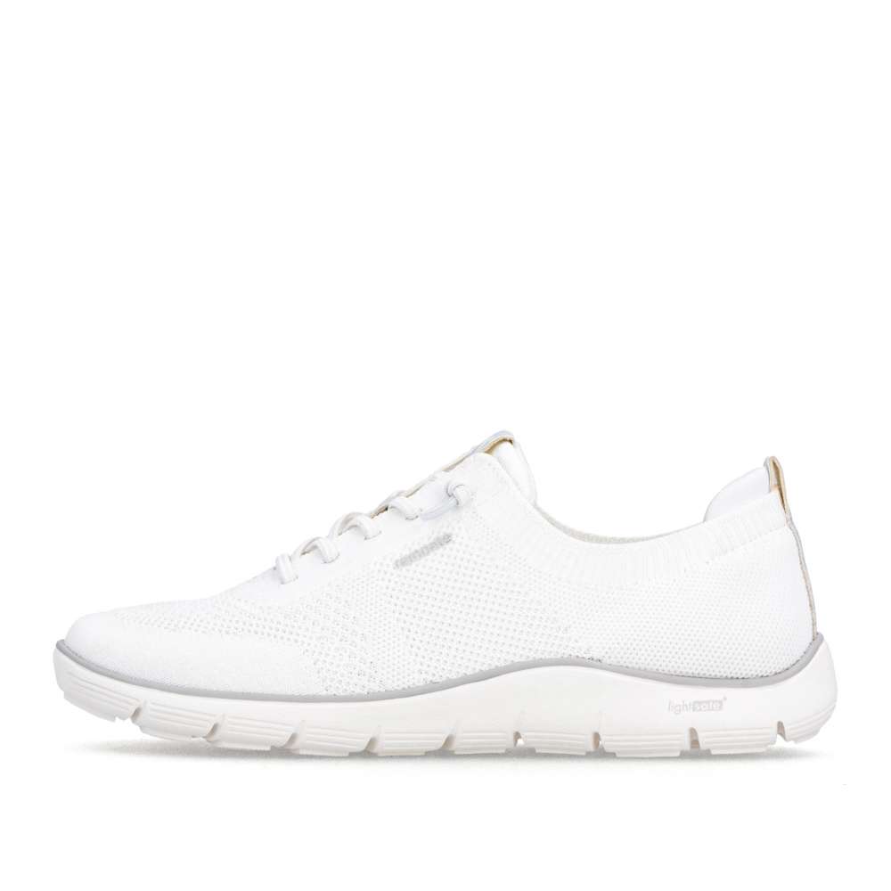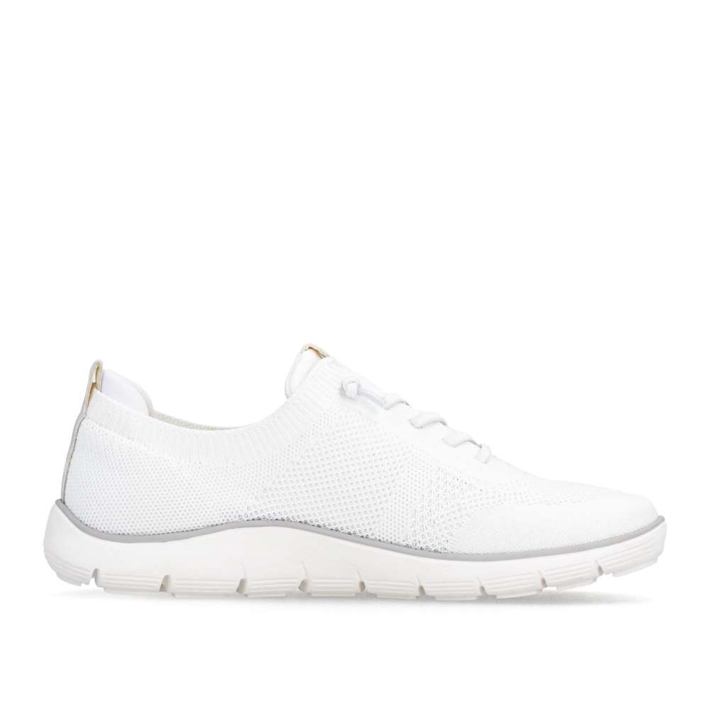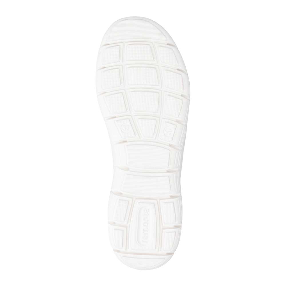 Obuv REMONTE představuje prémiovou řadu značky RIEKER, která se vyznačuje vysokou kvalitou použitých materiálů a precizním zpracováním. Tyto tenisky přinášejí nadčasový bílý design spojený s moderním textilním zpracováním, které je lehké, prodyšné a zároveň vizuálně atraktivní. Pružný horní okraj a gumička namísto šňůrek umožňují snadné nazutí a poskytují pohodlí okamžitě – boty se jemně přizpůsobí tvaru nohy a vytvářejí pocit, že jsou přirozenou součástí každého kroku. Uvnitř se nachází vyjímatelná stélka, která svojí měkkostí a ergonomickým tvarem poskytuje podporu chodidlu a zajišťuje komfort i během celodenního nošení. Flexibilní podešev zaručuje lehkost pohybu a zároveň stabilitu, ideální pro městské tempo života, procházky nebo volnočasové aktivity. Lehké, flexibilní a komfortní – tyto tenisky definují nový standard každodenního stylu a pohodlí.