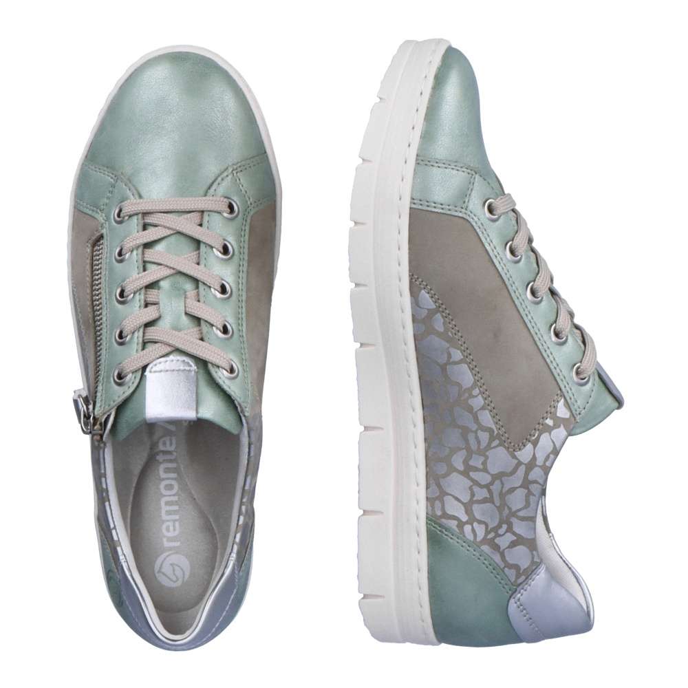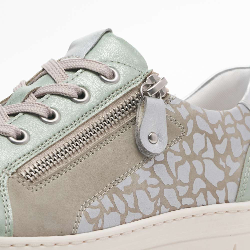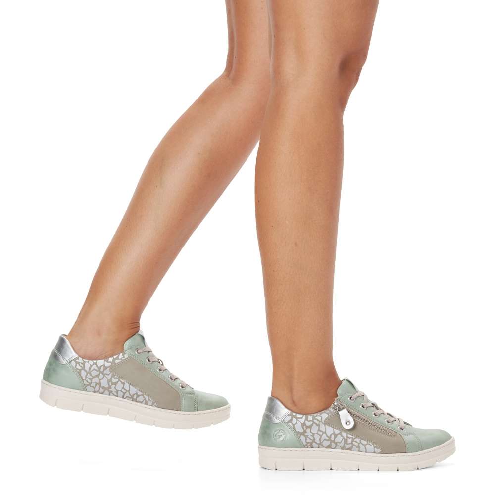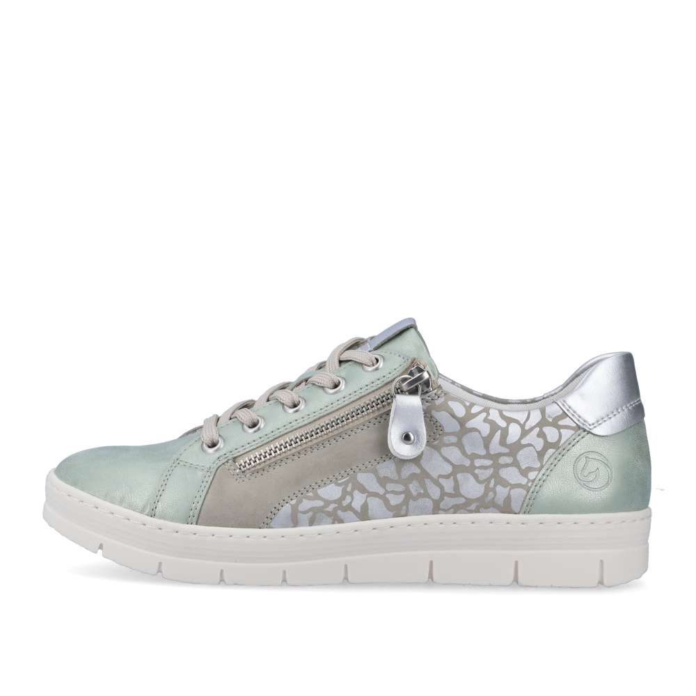 Obuv REMONTE je vyšší řadou značky RIEKER, obuv se vyznačuje kvalitou použitých materiálů. Tyto tenisky spojují eleganci a stylovou jistotu, proto by neměly chybět ve Vaší skříňce na obuv. Obuv je na patě, nártu a špičce vyrobena z lesklého materiálu a po stranách doplněna vzorem. O snadné obouvání se postará funkční zip na vnější straně a šněrováním si obuv přizpůsobíte dle Vašich potřeb. Pro Vaše pohodlí na každém kroku je měkká stélka zároveň i vyjímatelná. Tyto tenisky využijete snad pro všechny příležitosti.