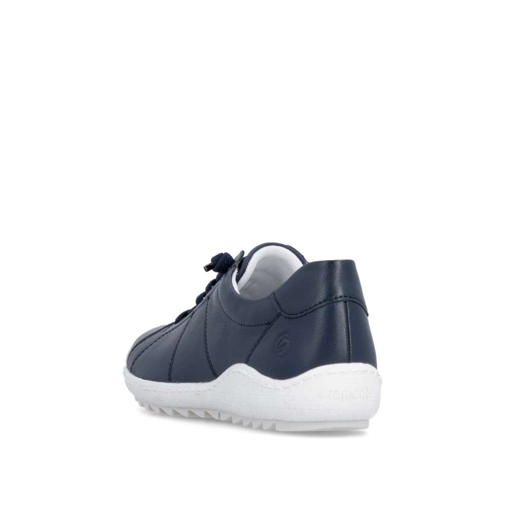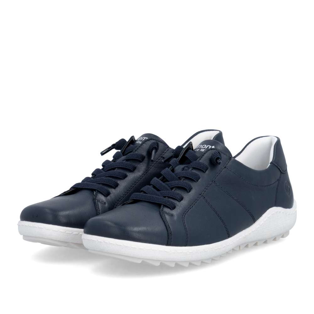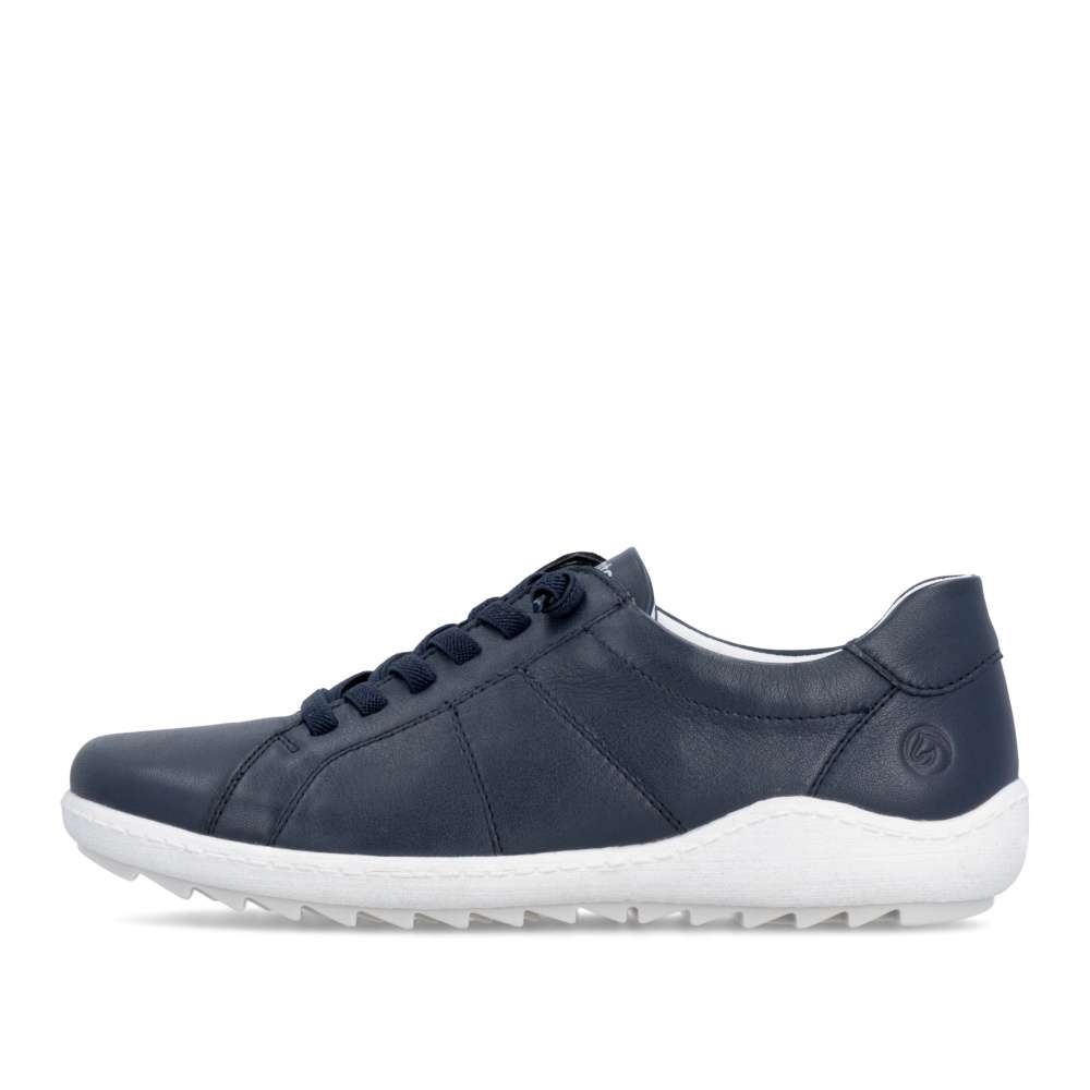 Obuv REMONTE představuje prémiovou řadu značky RIEKER, která se vyznačuje vysokou kvalitou použitých materiálů a precizním zpracováním. Dokonalý komfort v nadčasovém provedení přinášejí tyto tenisky, které zaujmou nejen svým vzhledem, ale také promyšleným zpracováním. Tmavě modrý kožený svršek je ozvláštněn působivými liniemi prošívání, které podtrhují moderní charakter obuvi. Výjimečnou praktičnost nabízí možnost šněrování ve dvou variantách – můžete zvolit pružnou gumičku pro rychlé obutí, nebo klasickou šňůrku pro tradiční vzhled a pevné přizpůsobení noze. O maximální pohodlí se postará vyjímatelná stélka, která je tvarovaná a příjemně měkká, takže poskytuje komfort i při celodenním nošení. Flexibilní podešev v kontrastní bílé barvě nejen zvýrazňuje design tenisek, ale také podporuje přirozený pohyb chodidla. Tyto tenisky jsou ideální volbou pro každodenní nošení, kdy chcete spojit styl, pohodlí a funkčnost v jednom nadčasovém modelu.