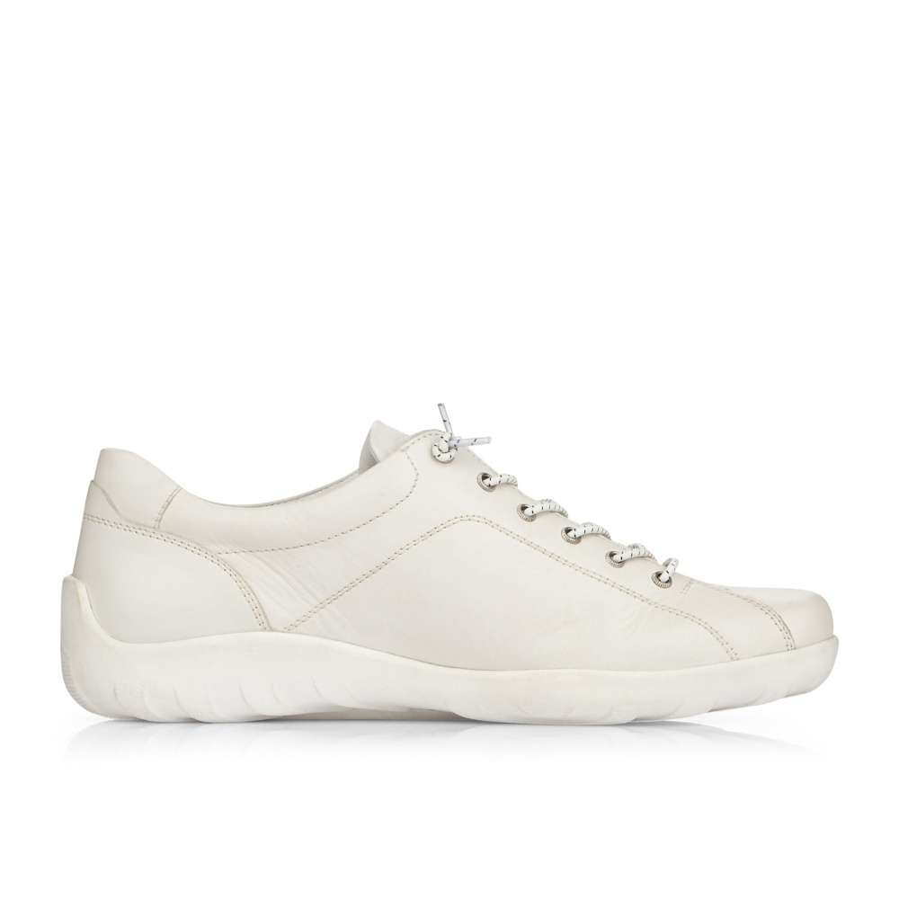 Detailní informace Obuv REMONTE je vyšší řadou značky RIEKER, obuv se vyznačuje kvalitou použitých materiálů. Sportovní kožené tenisky budou skvěle vypadat k jakémukoli Vašemu oblečení a poslouží, jako dobrý společník při procházkách. Hladký svršek s decentním prošíváním, šněrování v podobě gumičky, kterým si obuv přizpůsobíte k noze je to pravé pro Vaše maximální pohodlí. Obuv má vyjímatelnou stélku tvarovanou a příjemně měkkou, co jistě oceníte při delších cestách. Tenisky můžete nosit jak do práce, tak na toulky městem.