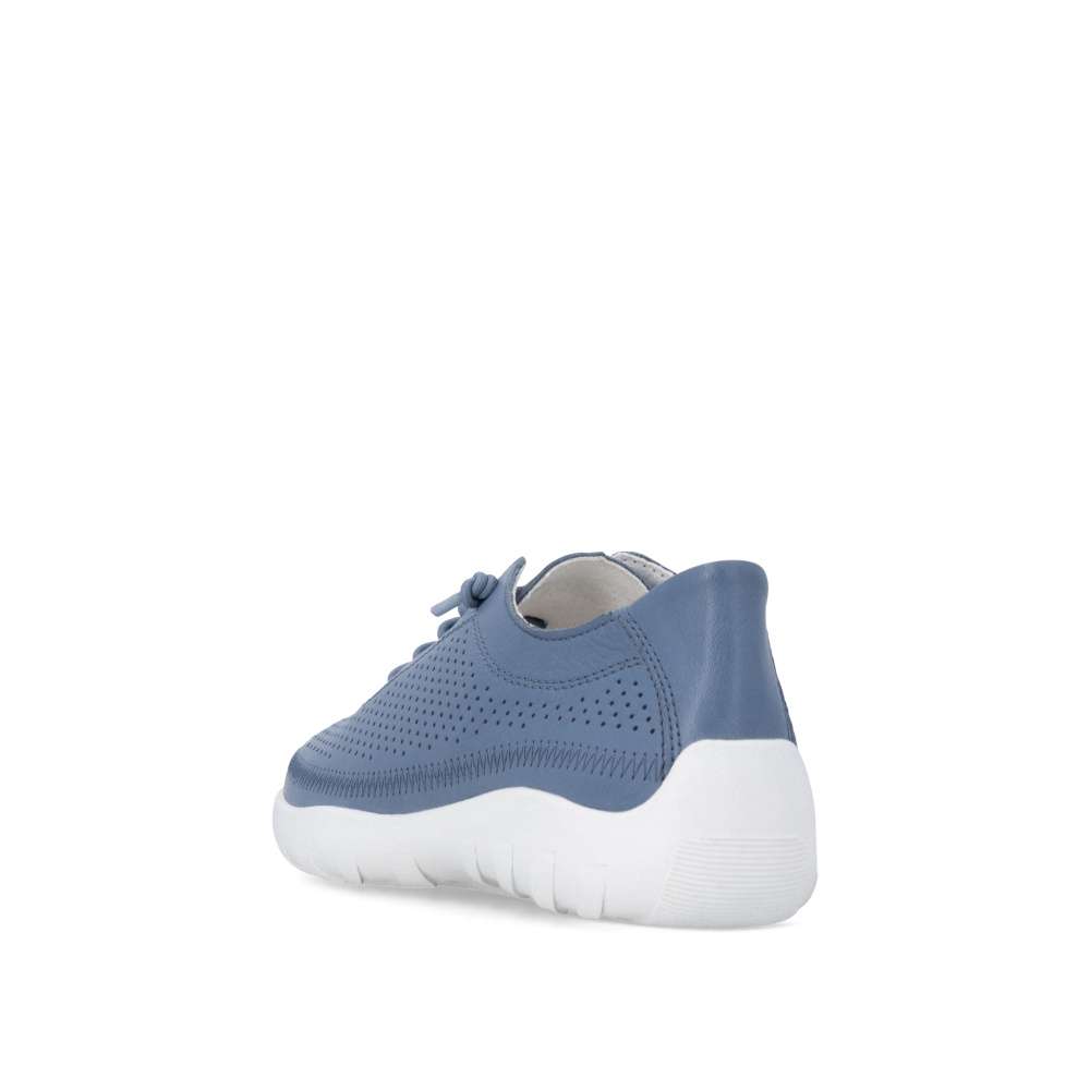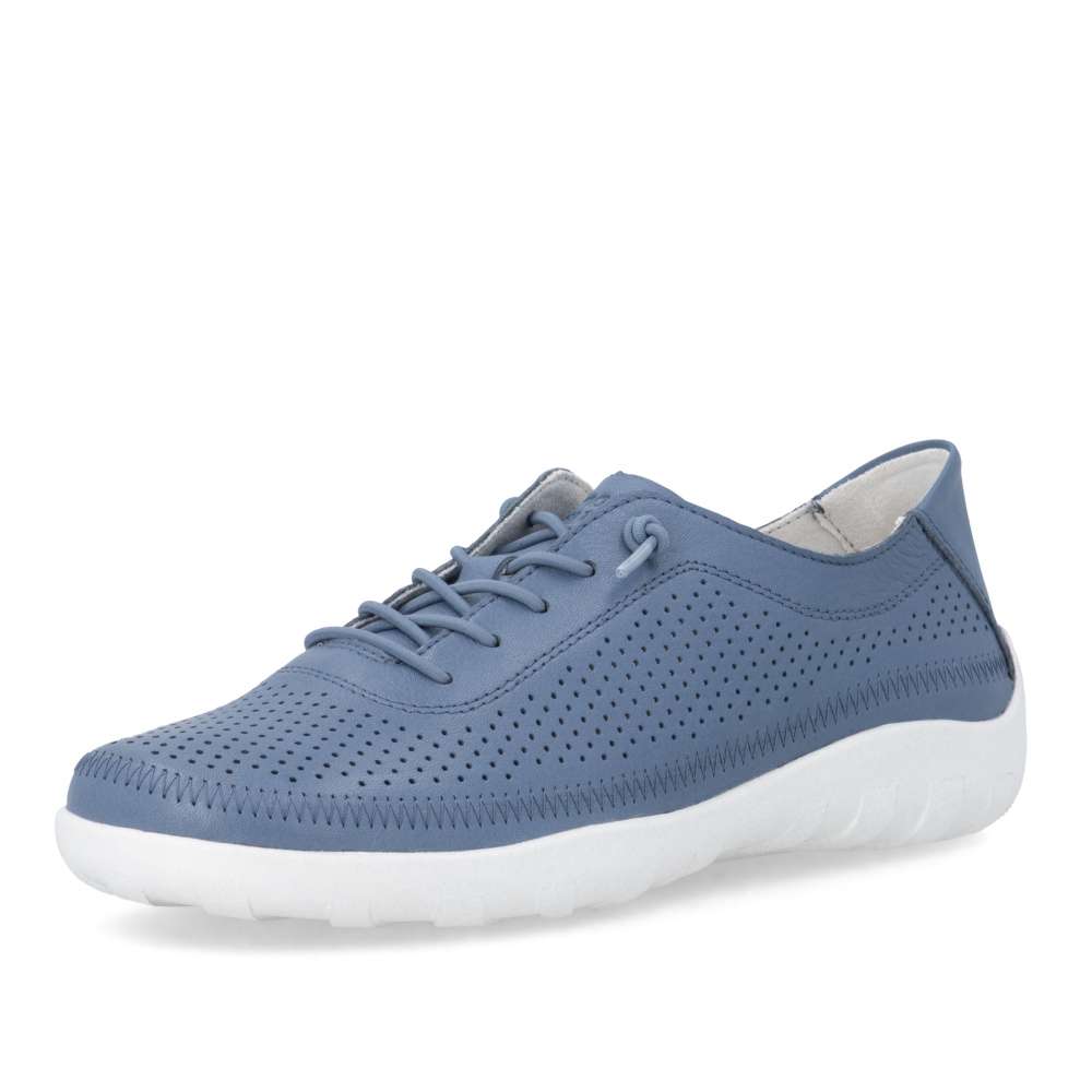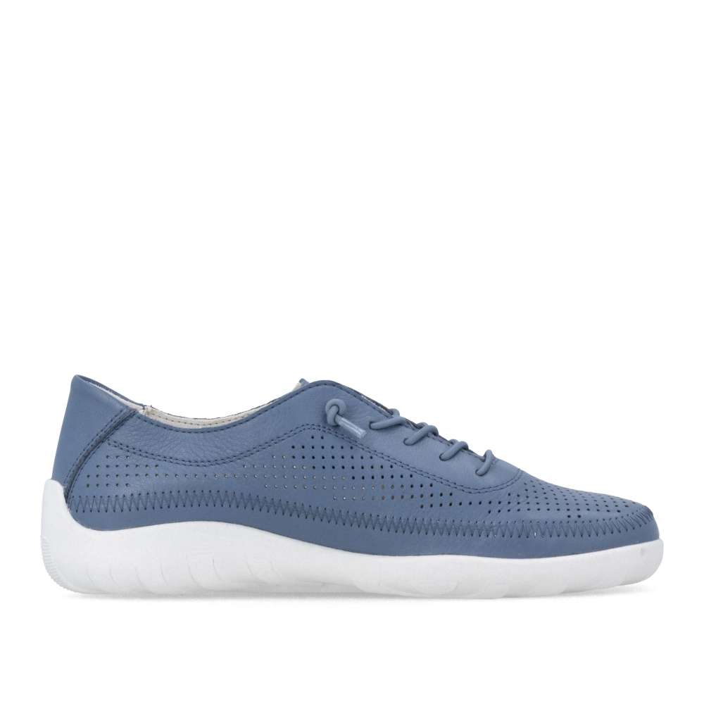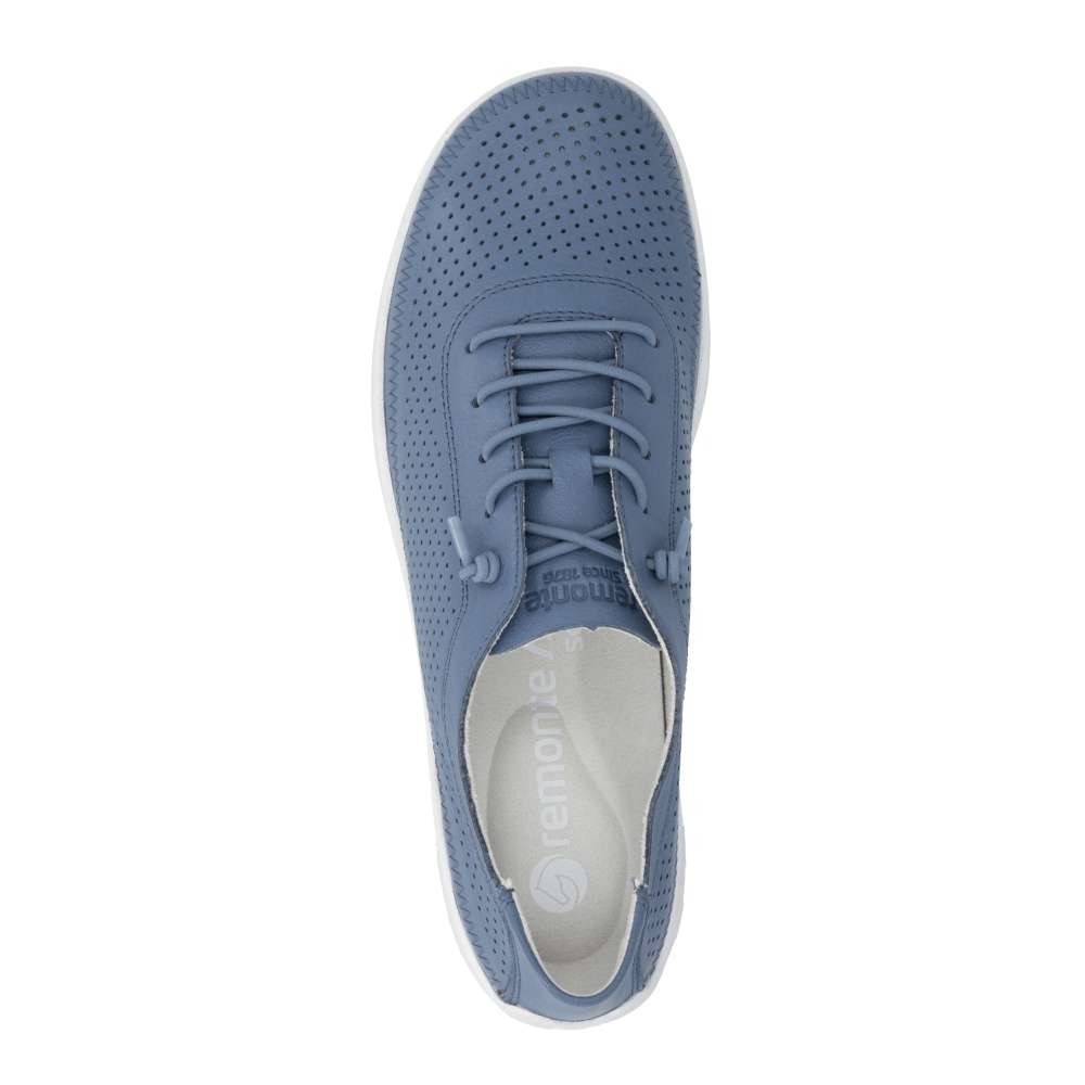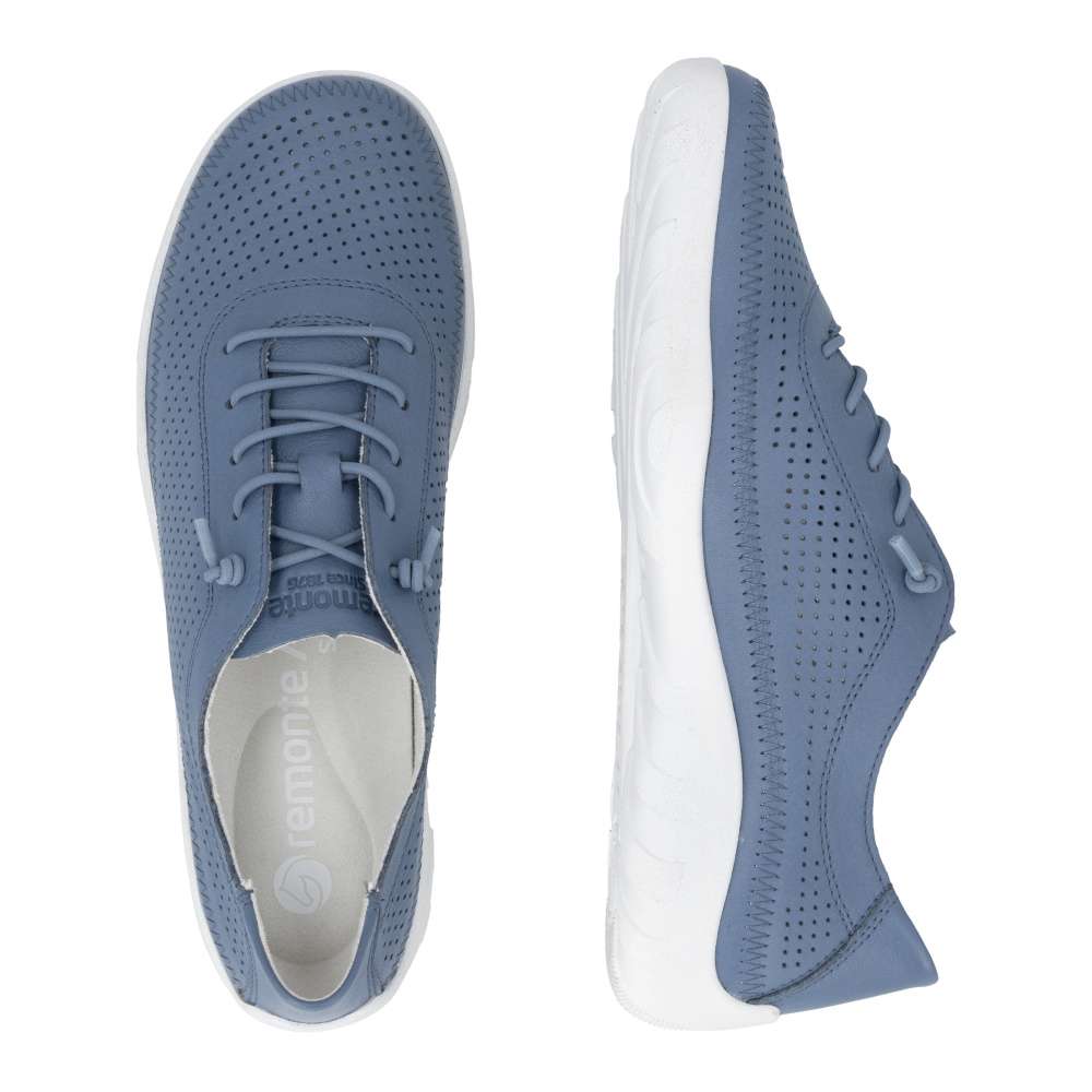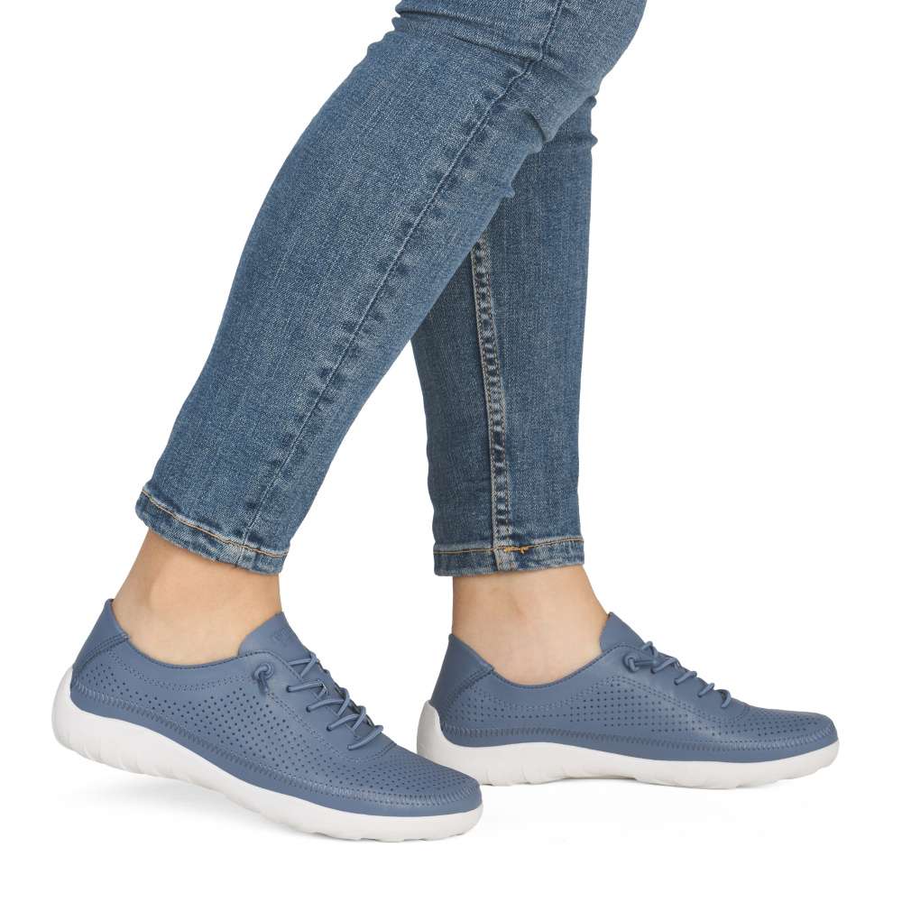 Obuv REMONTE představuje prémiovou řadu značky RIEKER, která se vyznačuje vysokou kvalitou použitých materiálů a precizním zpracováním. Objevte boty RIEKER, které v sobě nesou lehkost pohybu, nadčasový styl a promyšlený komfort do posledního detailu. Tento model zaujme koženým svrškem modré barvy s jemnou perforací, která nejen podtrhuje moderní vzhled, ale zároveň zajišťuje příjemnou prodyšnost po celý den. Elastická gumička nahrazuje klasické šněrování a umožňují rychlé obutí bez zdržení, přičemž se bota přirozeně přizpůsobí tvaru chodidla. Vnitřek obuvi je vybaven měkkou, tvarovanou a vyjímatelnou stélkou, která poskytuje pocit komfortu při došlapu a podporu i při delším nošení. Lehká, flexibilní podešev dodává pocit jistoty na každém kroku. Díky harmonickému designu a funkčním detailům se tyto boty stanou univerzálním kouskem vašeho šatníku – skvěle doplní městský outfit, pracovní oblečení i volnočasový look.