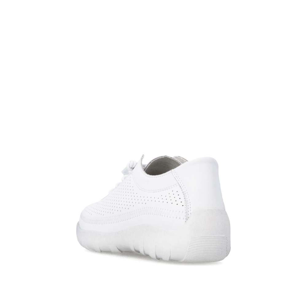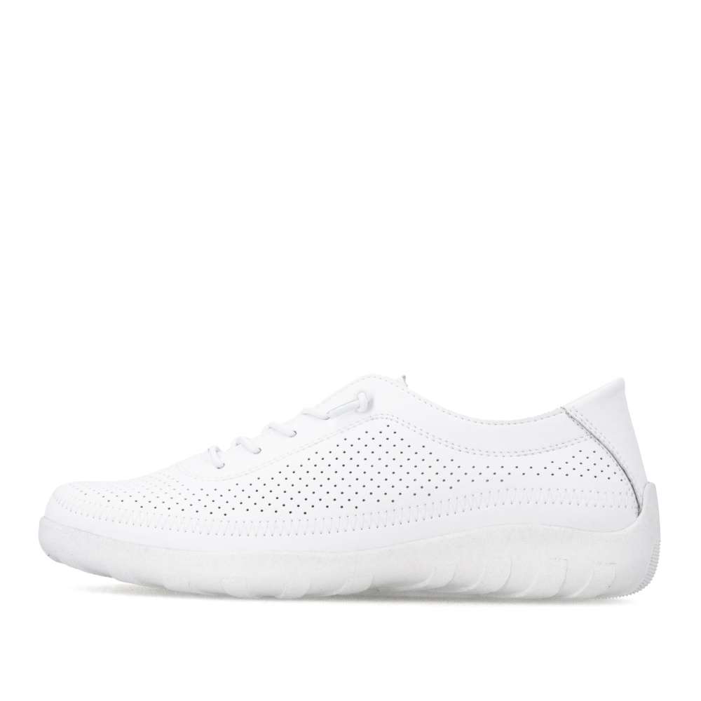 Obuv REMONTE představuje prémiovou řadu značky RIEKER, která se vyznačuje vysokou kvalitou použitých materiálů a precizním zpracováním. Objevte boty RIEKER, které v sobě nesou lehkost pohybu, nadčasový styl a promyšlený komfort do posledního detailu. Tento model zaujme koženým svrškem bílé barvy s jemnou perforací, která nejen podtrhuje moderní vzhled, ale zároveň zajišťuje příjemnou prodyšnost po celý den. Elastická gumička nahrazuje klasické šněrování a umožňují rychlé obutí bez zdržení, přičemž se bota přirozeně přizpůsobí tvaru chodidla. Vnitřek obuvi je vybaven měkkou, tvarovanou a vyjímatelnou stélkou, která poskytuje pocit komfortu při došlapu a podporu i při delším nošení. Lehká, flexibilní podešev dodává pocit jistoty na každém kroku. Díky harmonickému designu a funkčním detailům se tyto boty stanou univerzálním kouskem vašeho šatníku – skvěle doplní městský outfit, pracovní oblečení i volnočasový look.