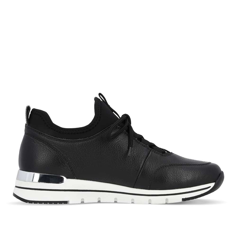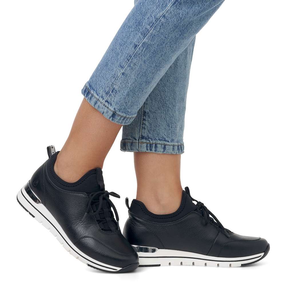 Obuv REMONTE je vyšší řadou značky RIEKER, obuv se vyznačuje kvalitou použitých materiálů. Tyto černé tenisky značky RIEKER představují elegantní spojení koženého svršku s textilním lemem kolem kotníku a na nártu. Šněrování a kontrastní podešev s lesklým prvkem v části paty dodávají obuvi moderní vzhled. Měkká stélka, která je vyjímatelná, poskytuje vysokou úroveň pohodlí během celého dne. Tyto tenisky nejenže zdůrazňují stylový vzhled, ale také nabízí prvotřídní komfort. Technologie: Remonte Soft – unikátní stélka vyrobená z prodyšného materiálu, která svým tvarem a materiálem zajistí pocit pohodlí při celodenním nošení. Tato bota je vybavena vyjímatelnou stélkou.