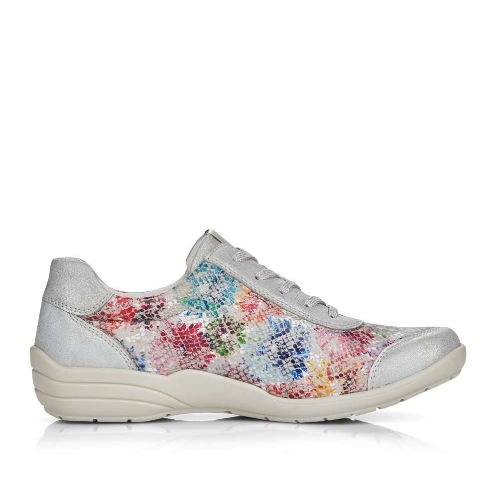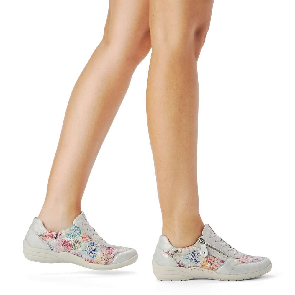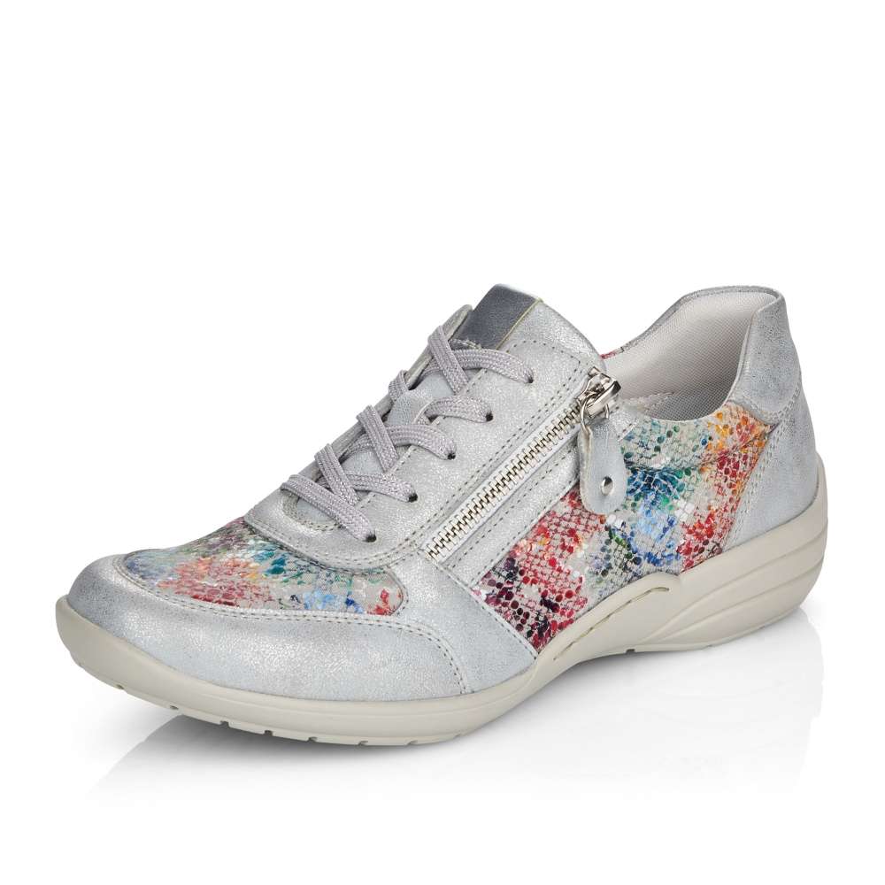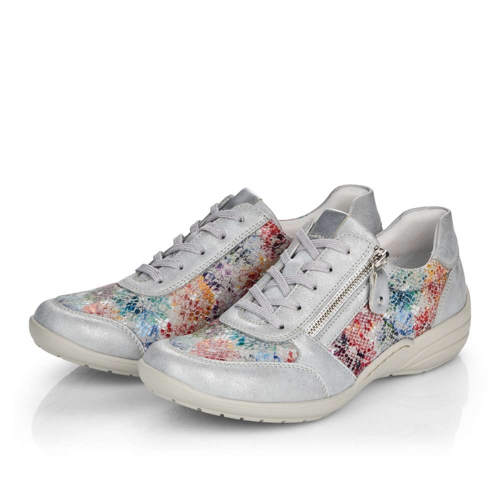 Obuv REMONTE – jedná se o vyšší řadu značky RIEKER, tato obuv se vyznačuje vynikající kombinací povrchových materiálů. Krásné dámské tenisky, kterými zaručeně upoutáte pozornost. Svršek je kombinací barevnosti a odlesků, jemného prošití v barvě boty a kulaté špičky. Šněrováním a funkčním zipem si je upravíte tak, aby Vám na noze pohodlně seděly a vyjímatelná stélka je kožená pro vytvoření příjemného komfortu. Tato obuv je vhodná jak na procházky v parku, tak do práce nebo do kina. Boty z řady Remonte Vám zajistí maximální komfort a pohodlí při celodenním nošení. Technologie: ŠÍŘE H – širší střih bot, který vytvoří dostatečný prostor Vašemu chodidlu a zajistí dokonalý komfort při nošení. Tato bota je vybavena vyjímatelnou stélkou.