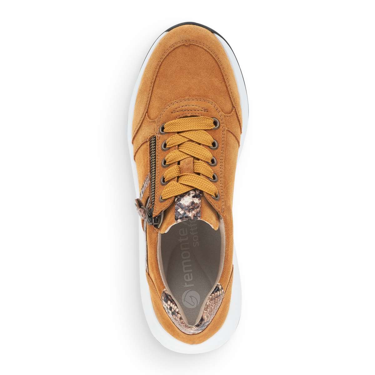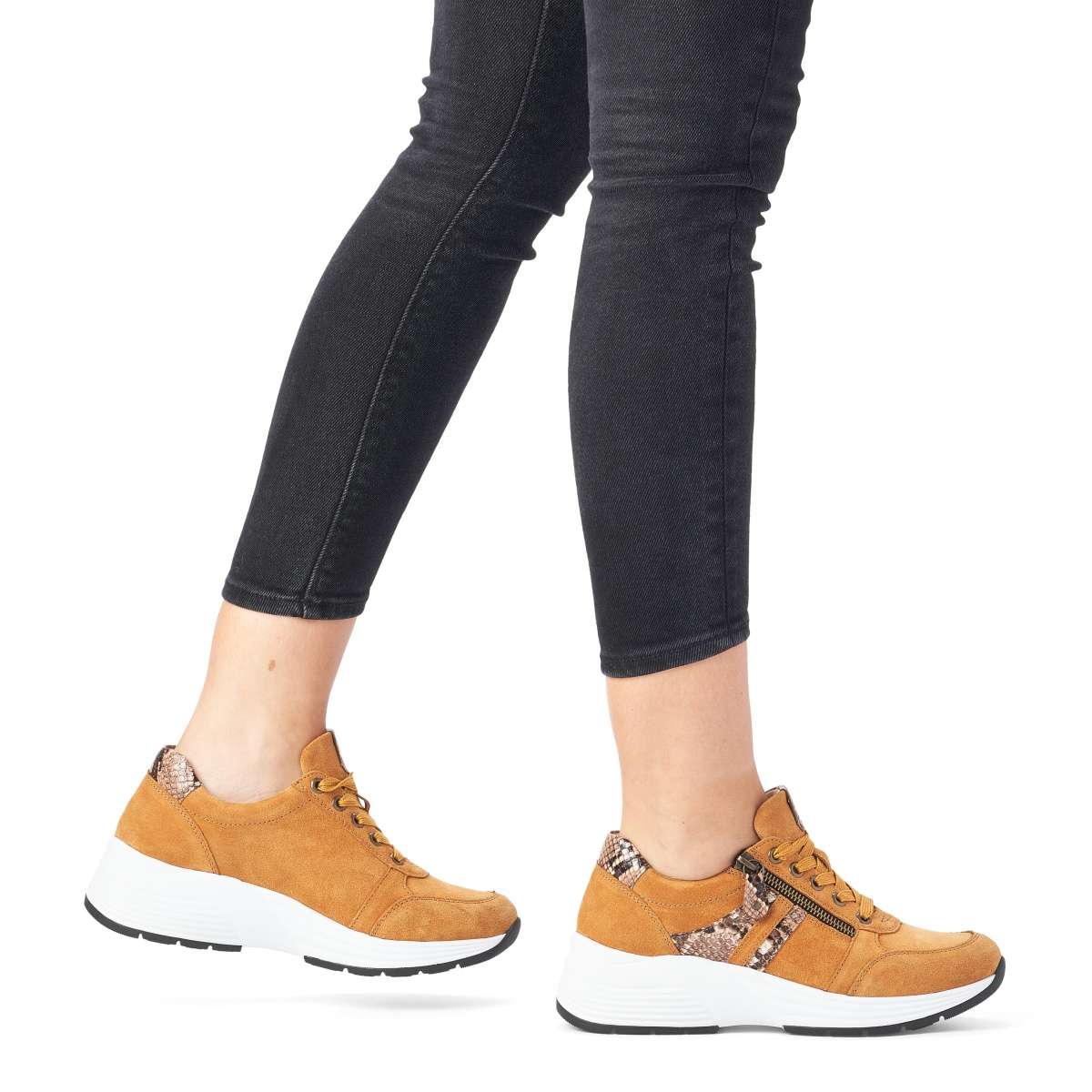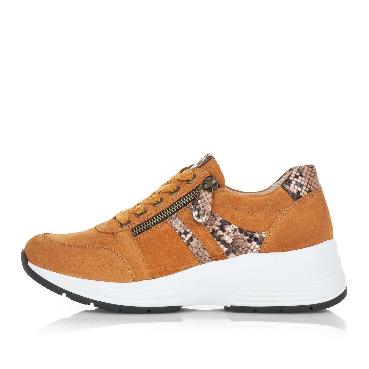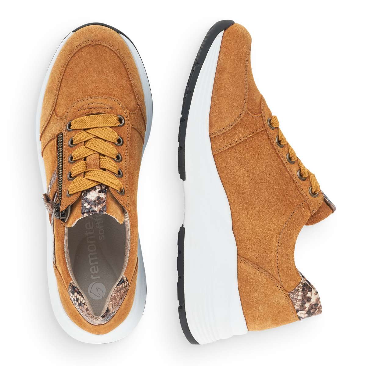 Dámské tenisky značky REMONTE (vyšší řada značky Rieker) s ozdobným zipem by měla mít každá žena v botníku. Ke snadnému obouvání slouží šněrování, kterým si obuv upravíte přímo na nohu. Tato obuv je vybavena vyjímatelnou stélkou, která je vyrobena z unikátní paměťové pěny, a proto se maximálně přizpůsobí tvaru Vašeho chodidla. Pevná podešev je vysoká cca 5,6 cm a dodá Vám příjemný pocit při každém kroku. Tento model má mnoho využití, můžete si je vzít na procházku s přáteli nebo do práce.