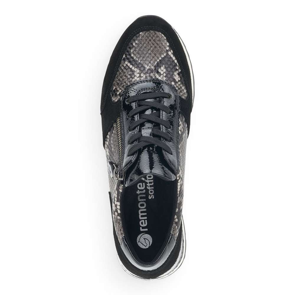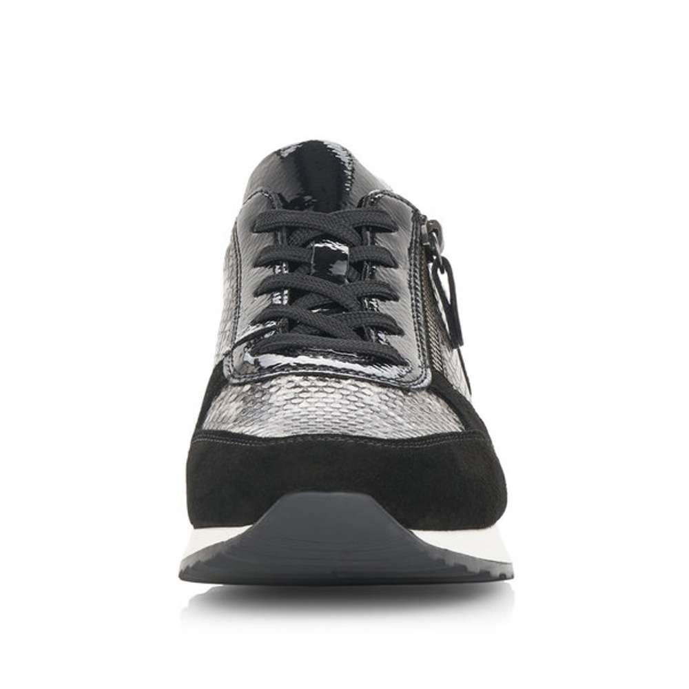 Tato dámská teniska Vás zaujme na první pohled svým jedinečným zpracováním. Propojení odlišných designových materiálů, jednoduché šněrování, zip na vnější straně či kontrastní podešev se stříbrnou ozdobou to jsou zdobné znaky této obuvi. Boty z řady Remonte Vám zajistí maximální komfort, pohodlí při celodenním nošení a tento model je vhodný snad ke všem pracovním i běžným outfitům.