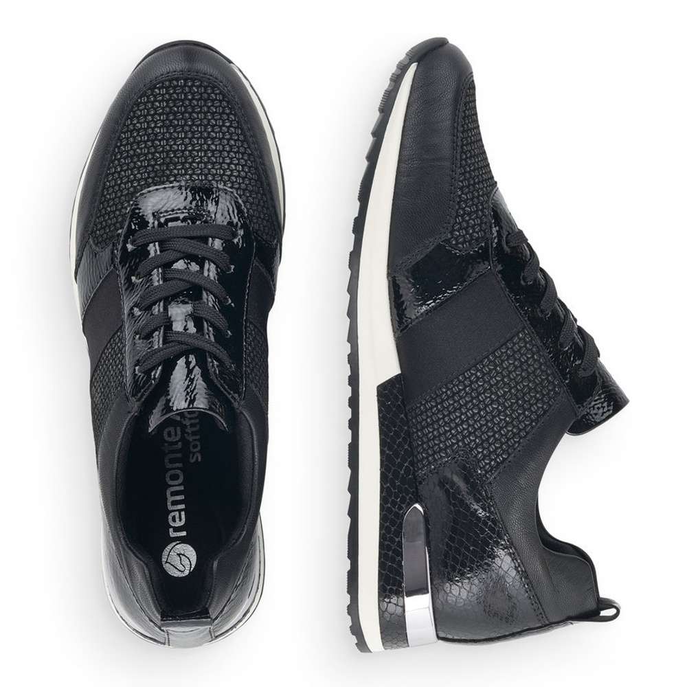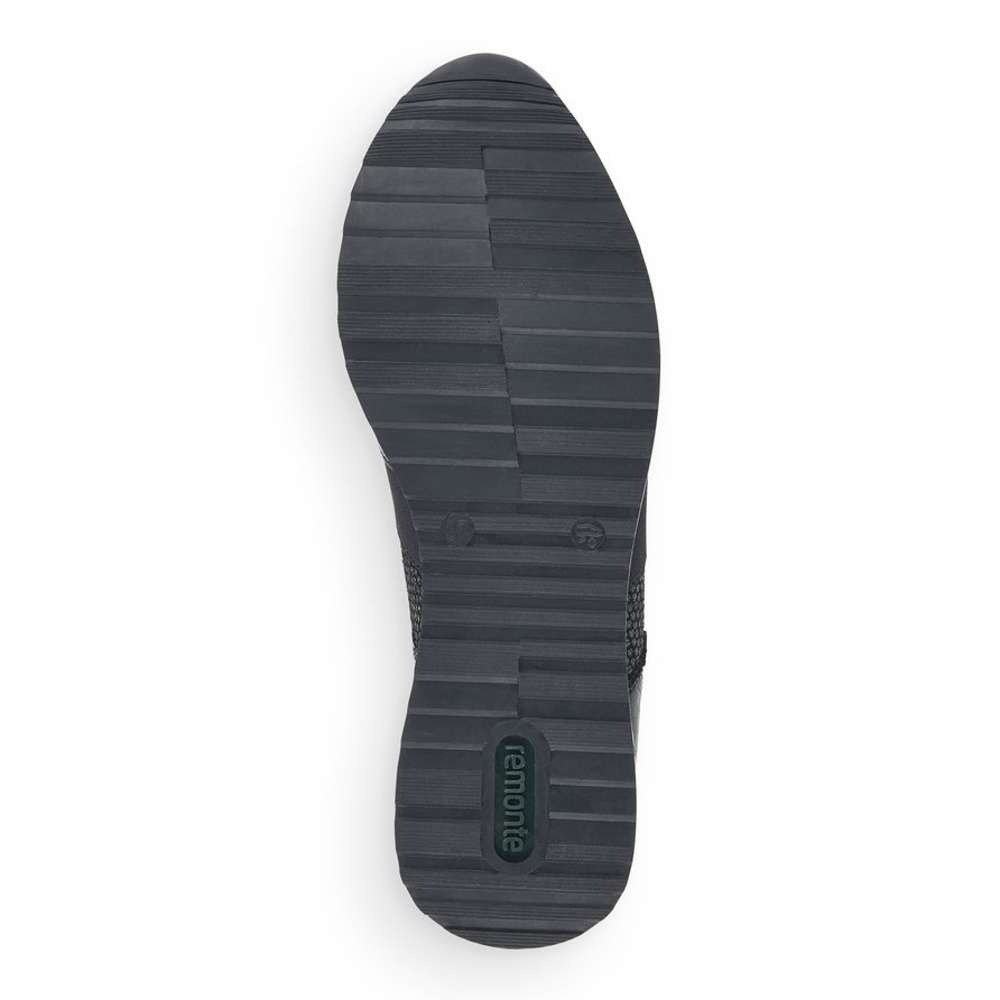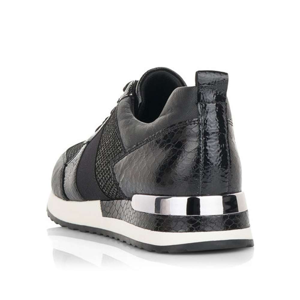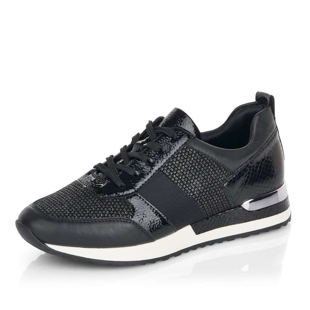 Tato dámská teniska Vás zaujme na první pohled svým jednoduchým zpracováním. Černý svršek, prvky s designovými motivy či kontrastní podešev se stříbrnou aplikací, to jsou zdobné znaky této obuvi. Boty z řady Remonte Vám zajistí maximální komfort, pohodlí při celodenním nošení a tento model je vhodný snad ke všem pracovním i běžným outfitům.