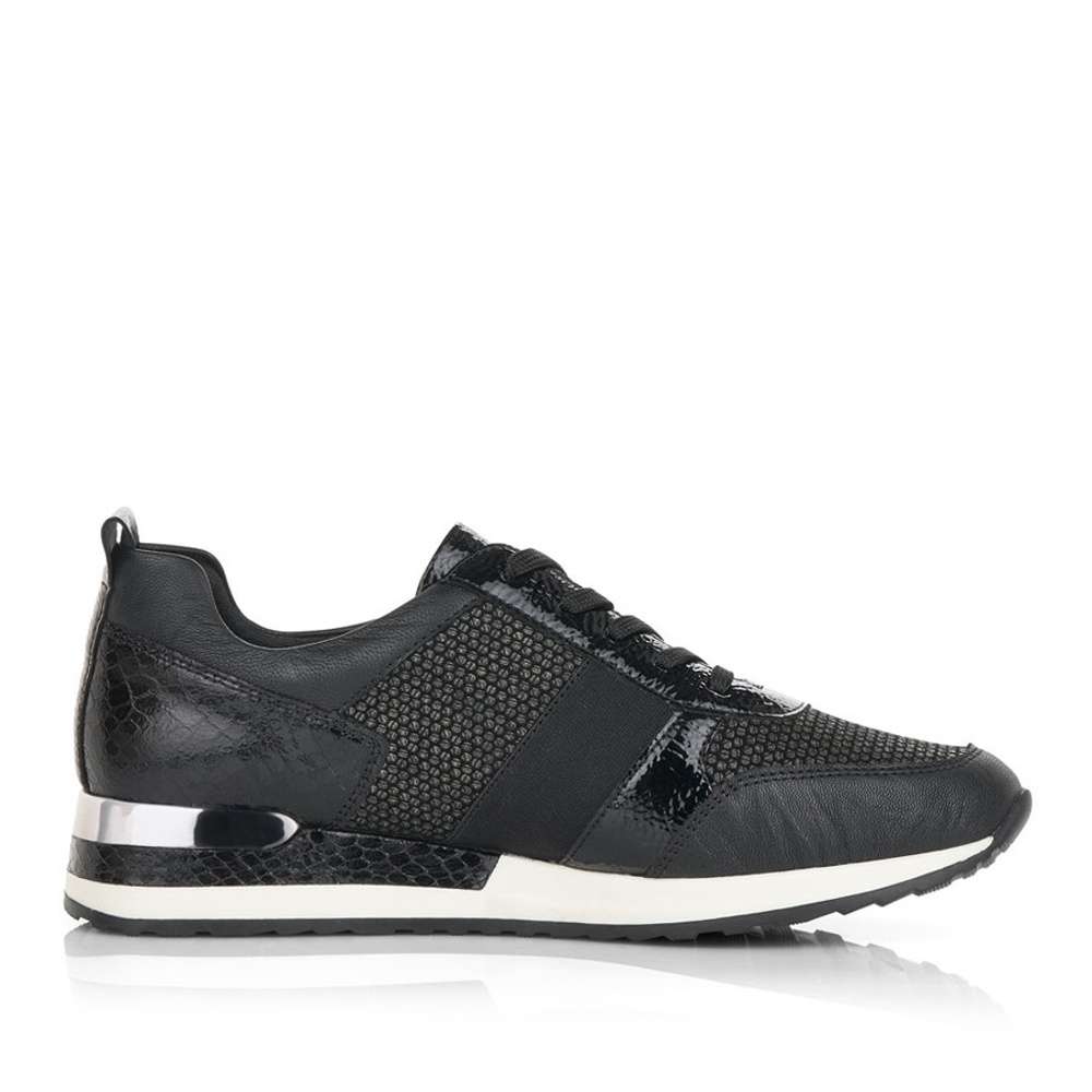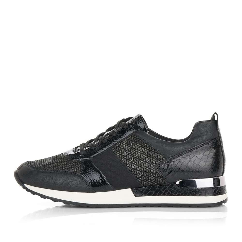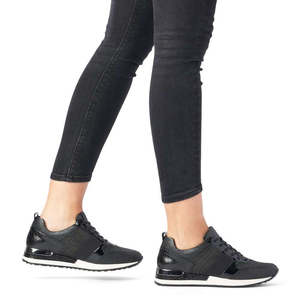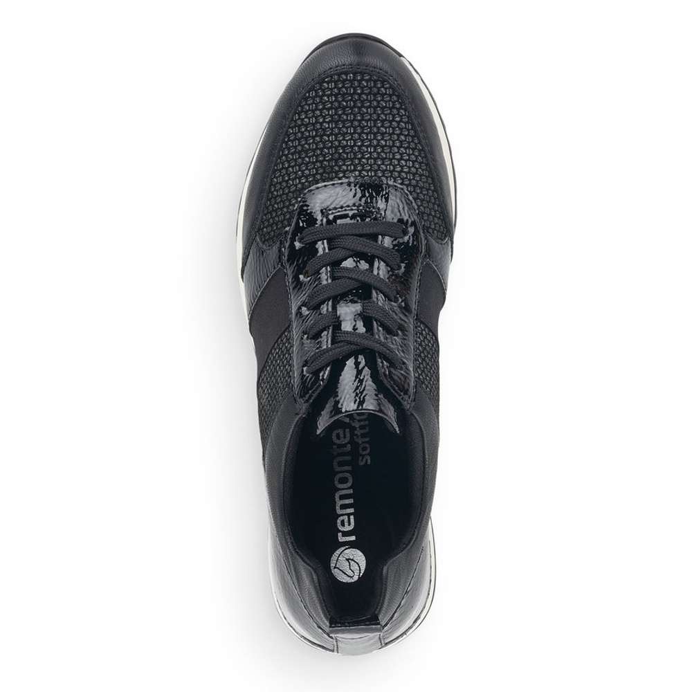 Tato dámská teniska Vás zaujme na první pohled svým jednoduchým zpracováním. Černý svršek, prvky s designovými motivy či kontrastní podešev se stříbrnou aplikací, to jsou zdobné znaky této obuvi. Boty z řady Remonte Vám zajistí maximální komfort, pohodlí při celodenním nošení a tento model je vhodný snad ke všem pracovním i běžným outfitům.